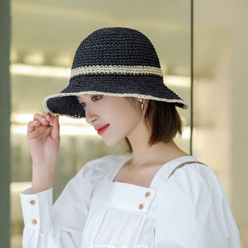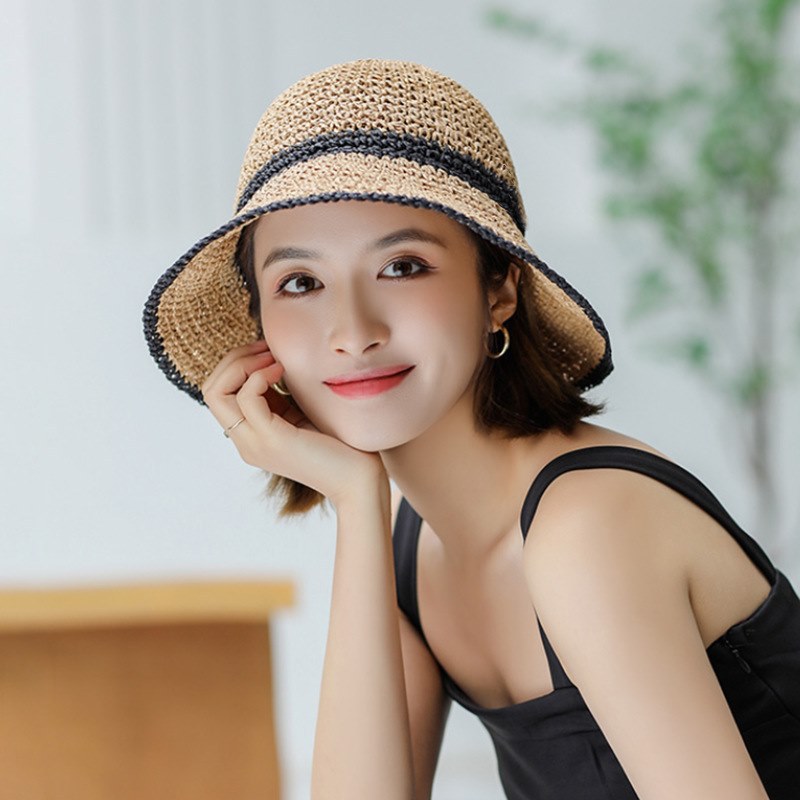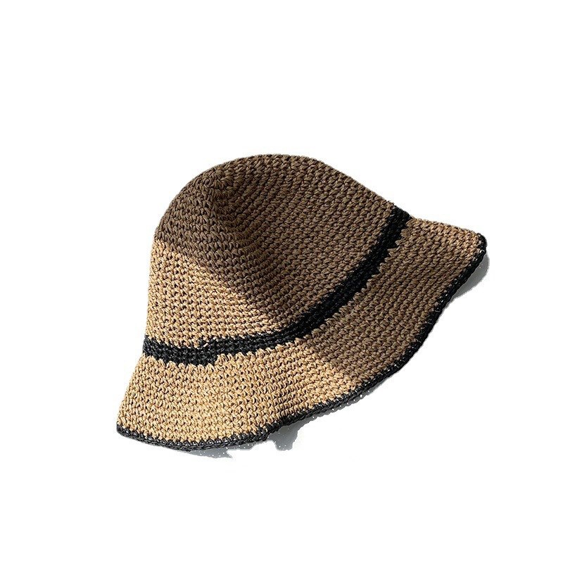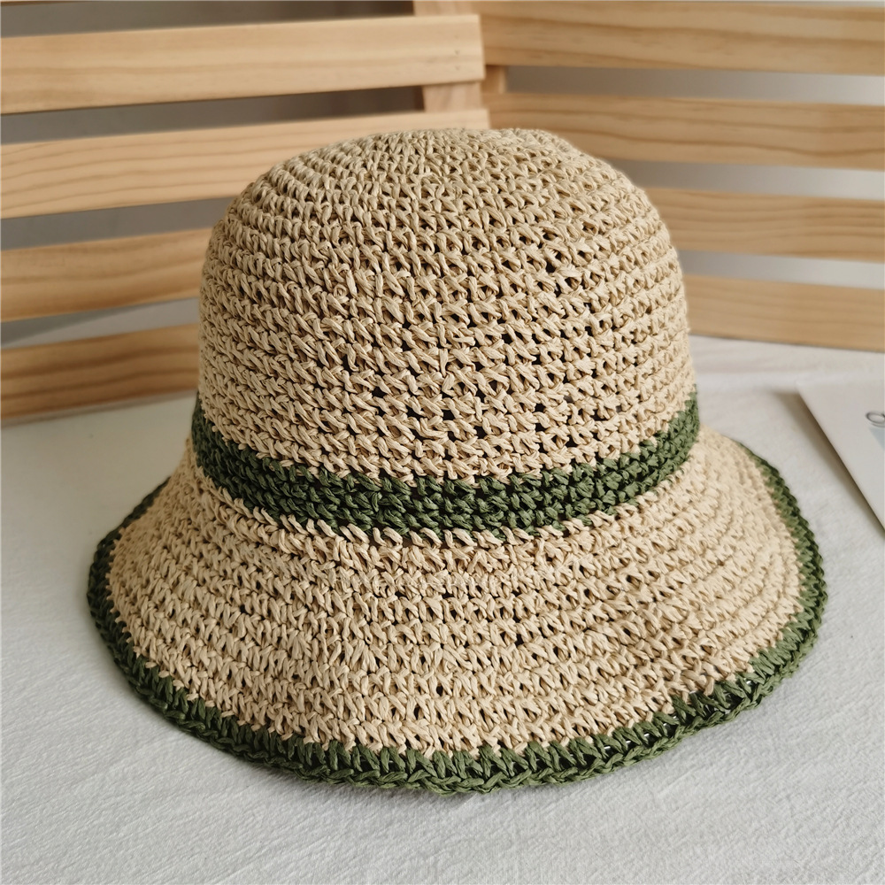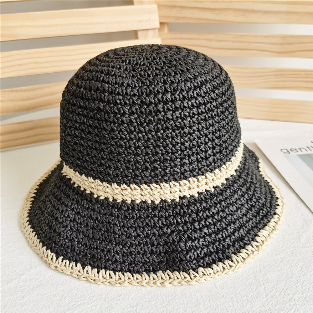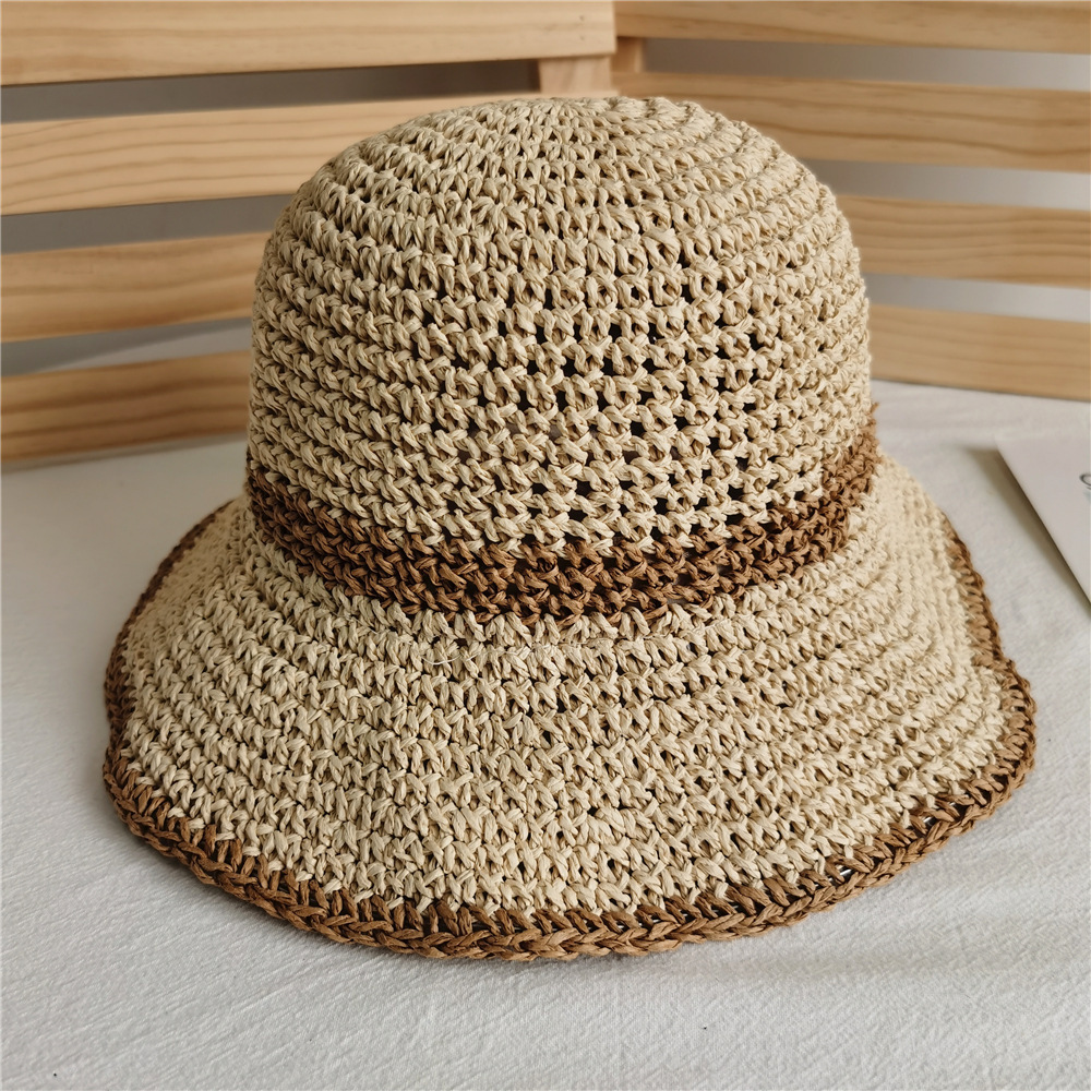 新品设计师款拼色缕空钩针草帽女夏季度假沙滩帽女韩版遮阳帽批发