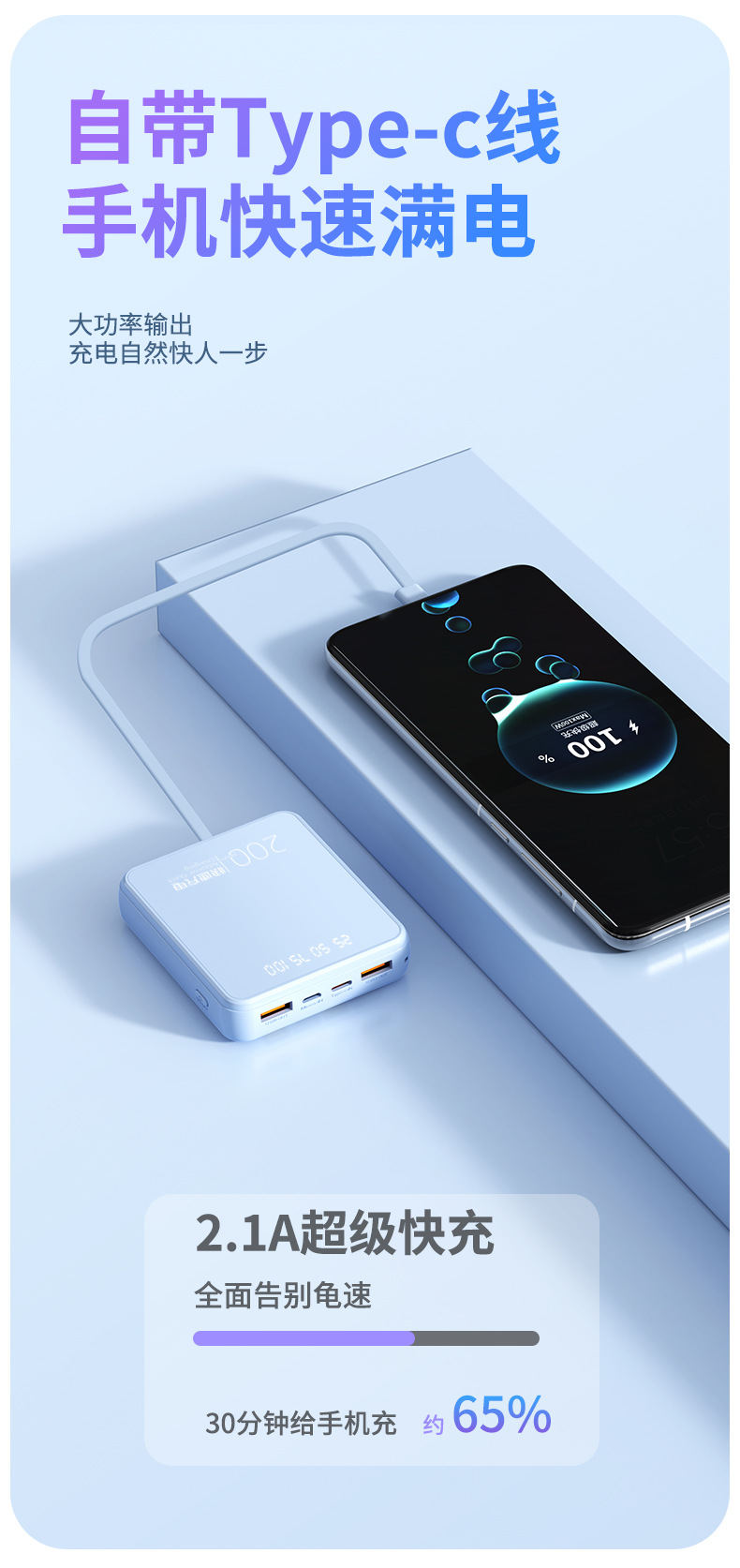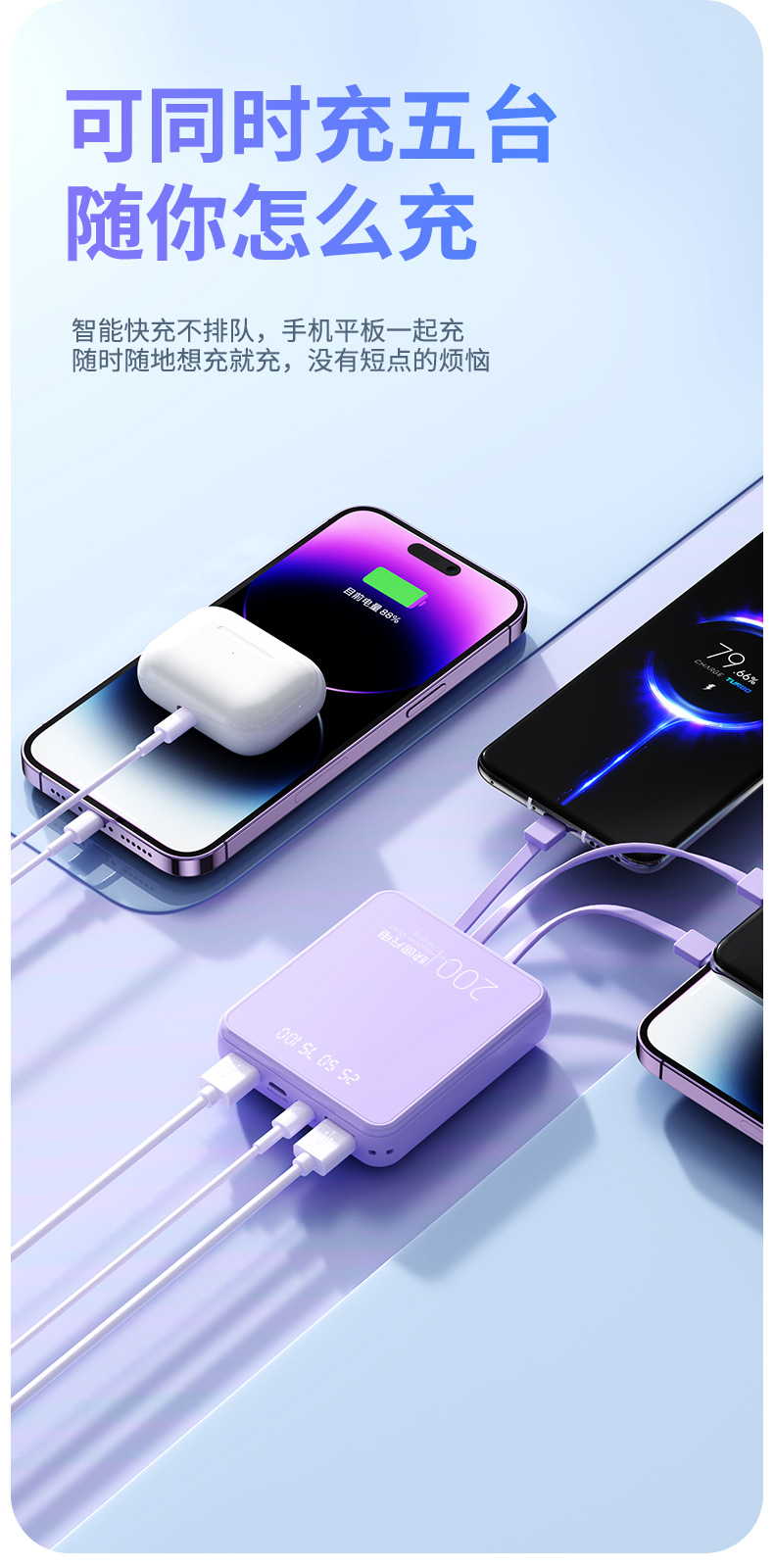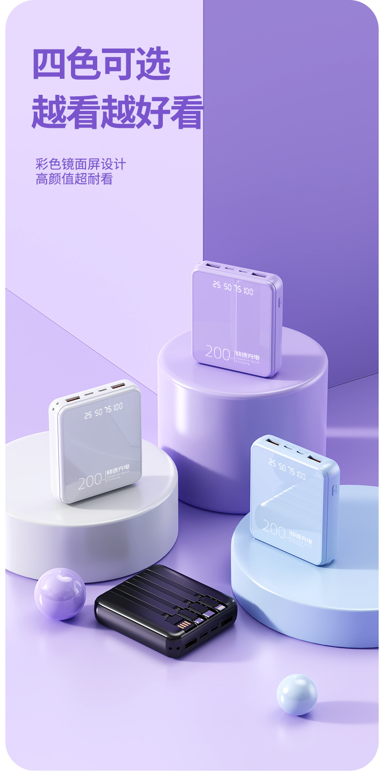 共享迷你20000毫安充电宝大容量自带线便携移动电源礼品LOGO印制