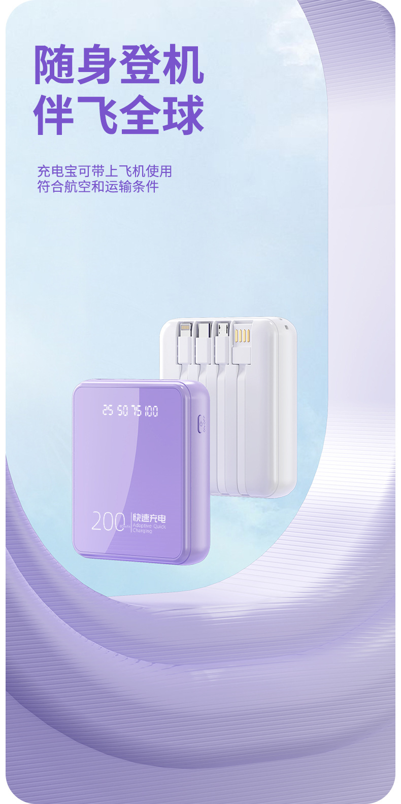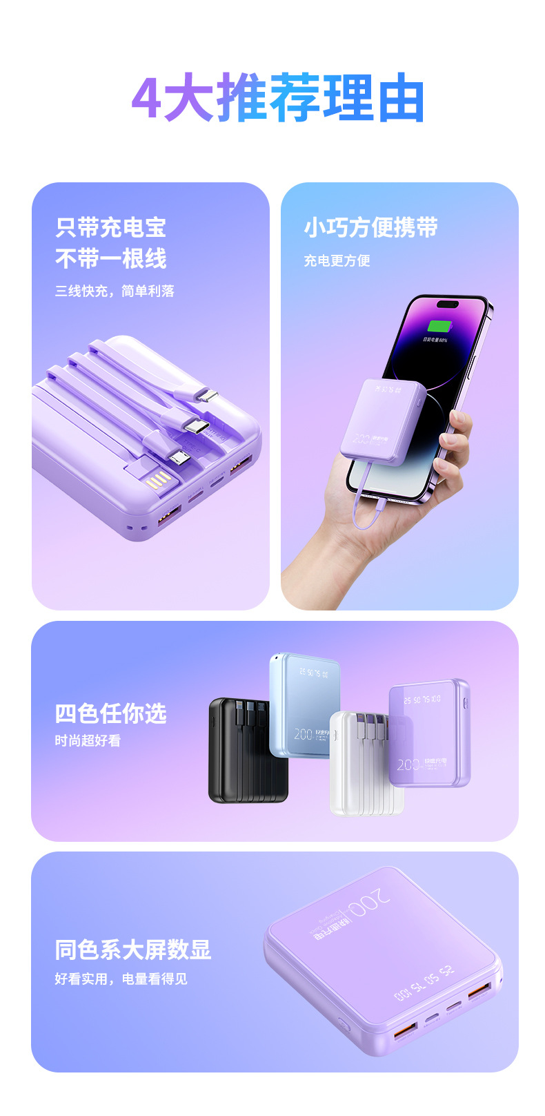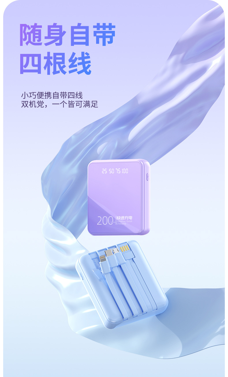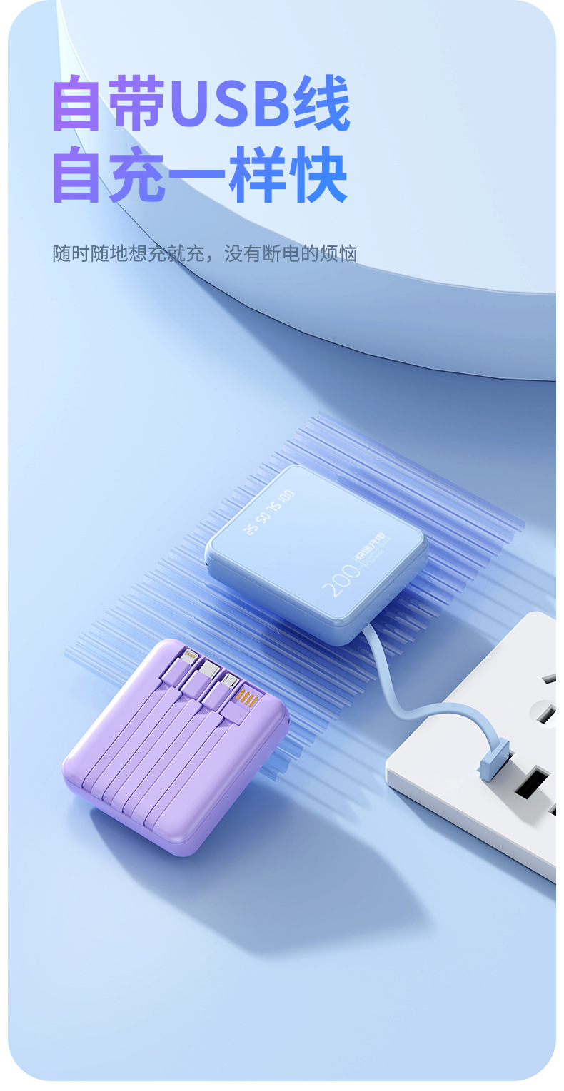 共享迷你20000毫安充电宝大容量自带线便携移动电源礼品LOGO印制