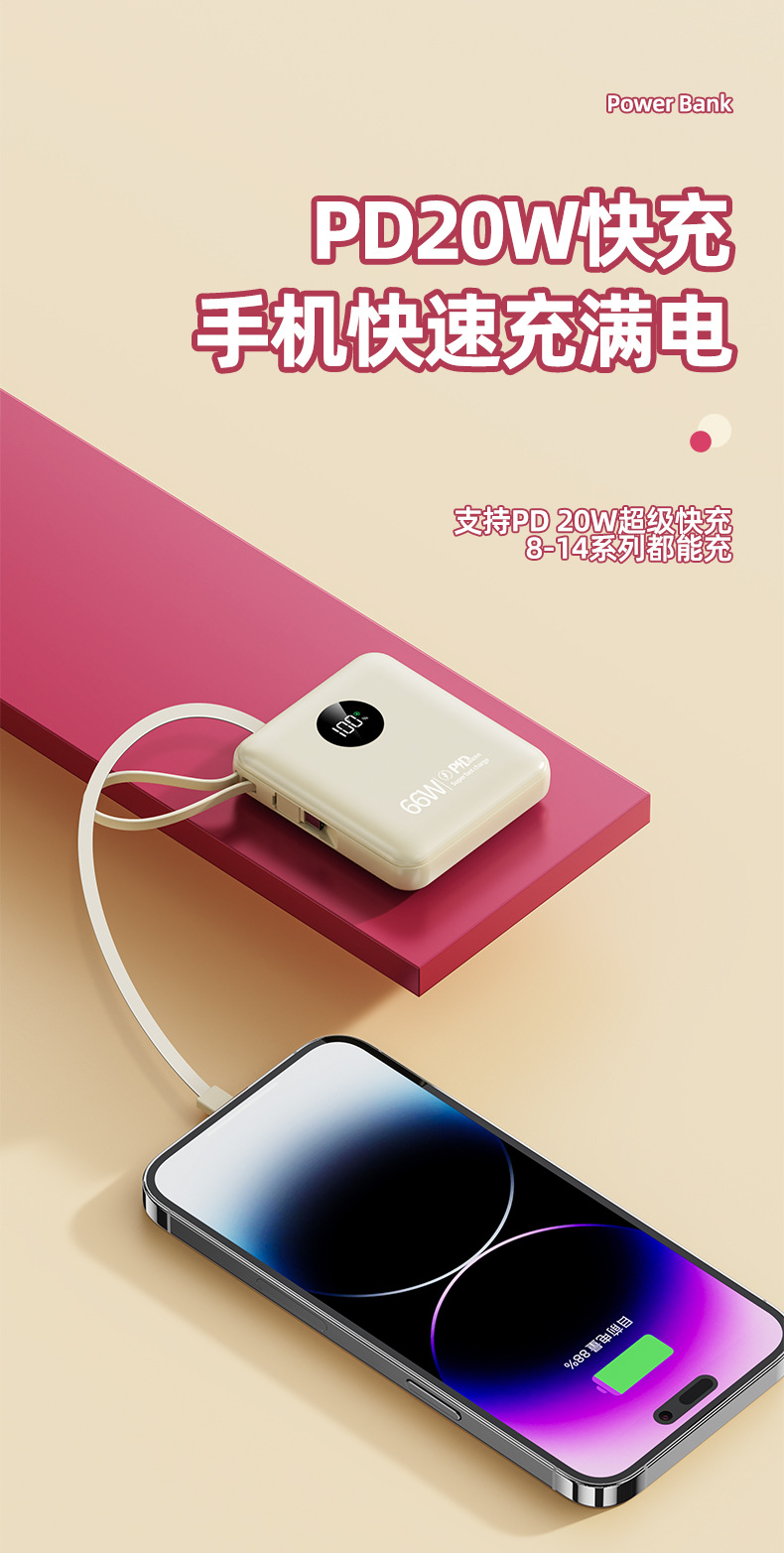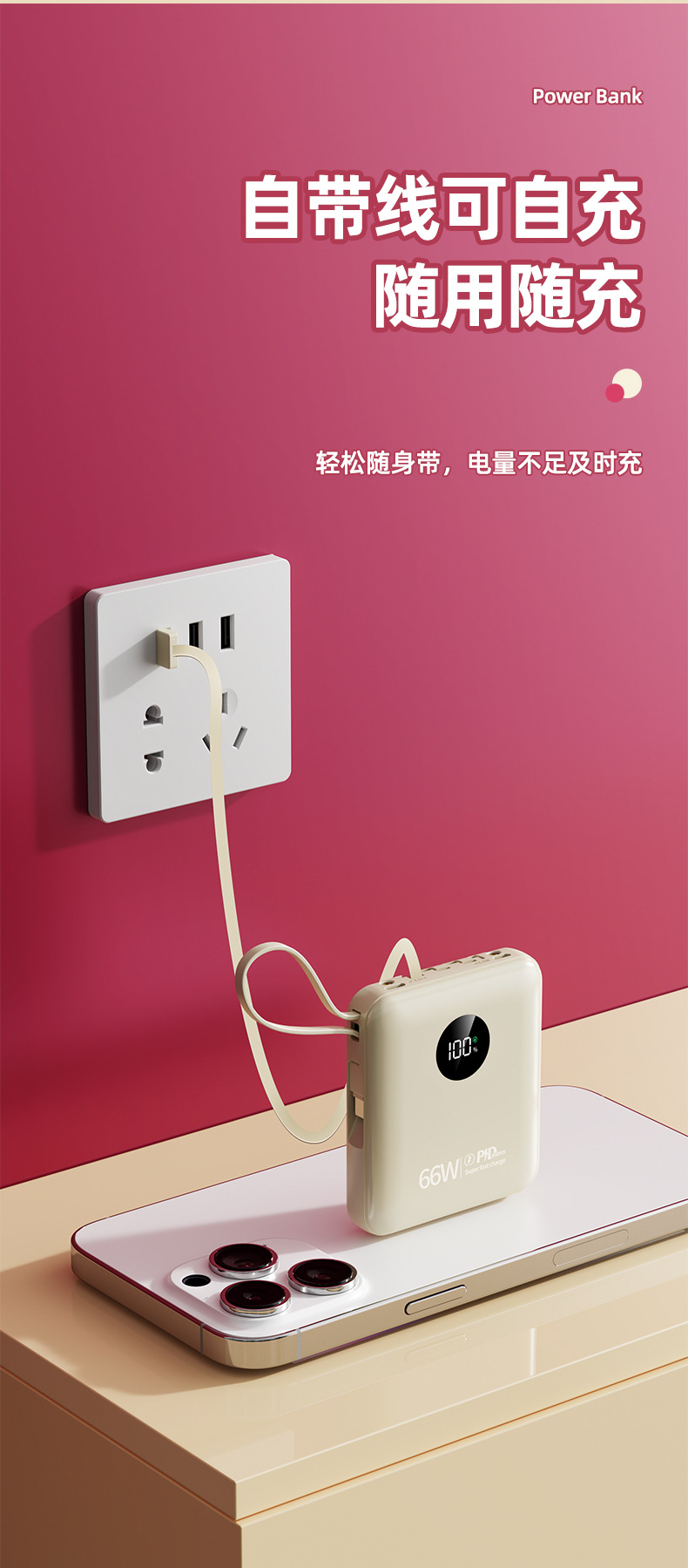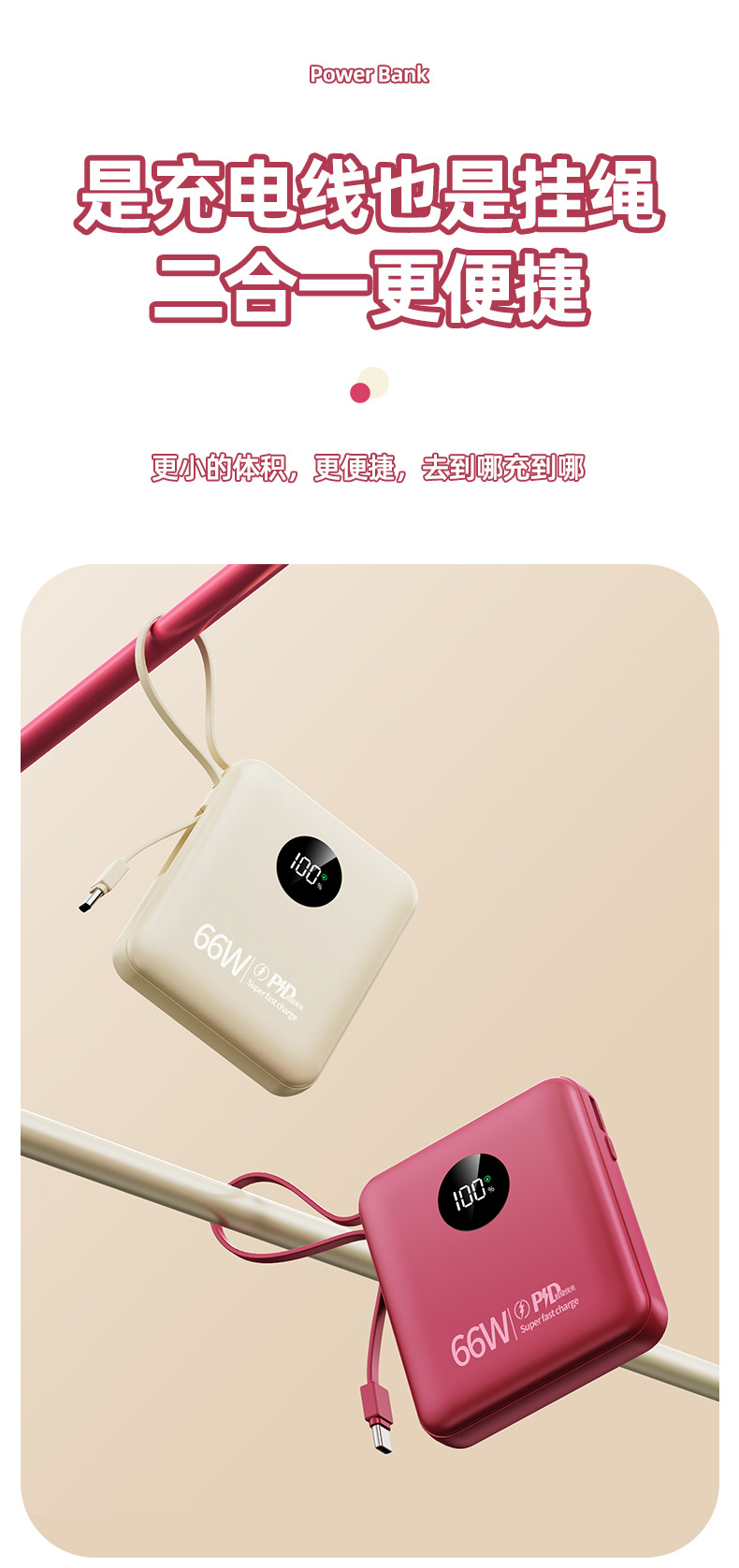 跨境充电宝20000毫安大容量便携自带线22.5W超级快充手机移动电源