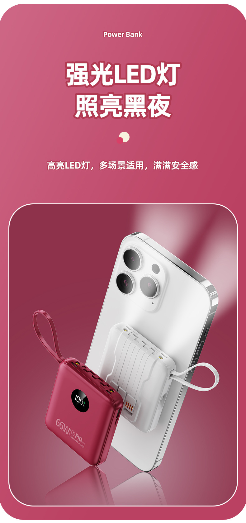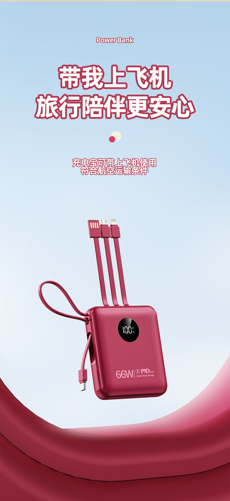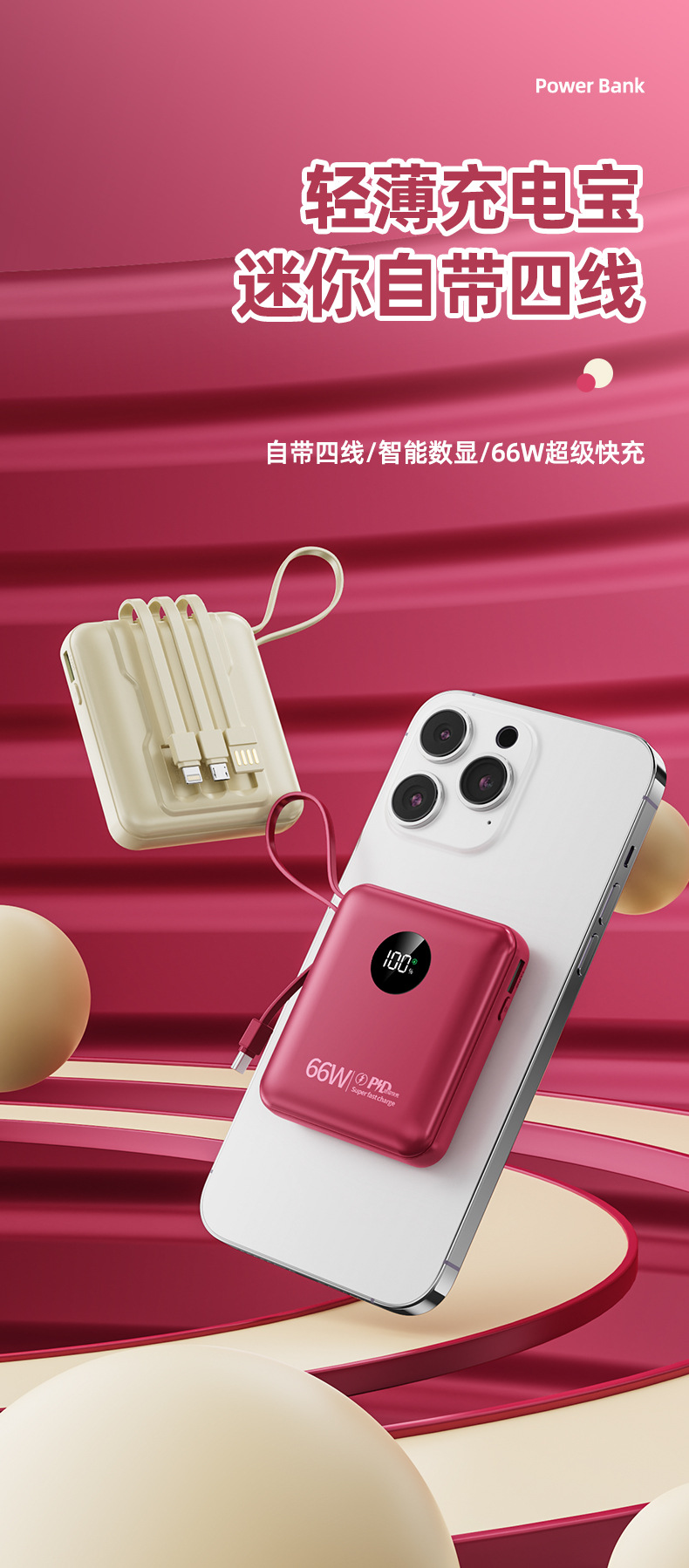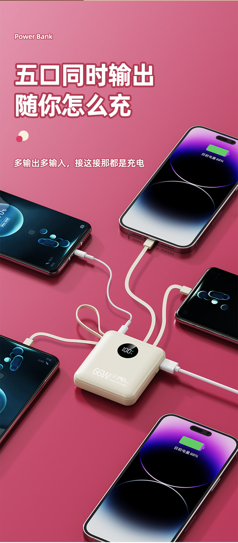 跨境充电宝20000毫安大容量便携自带线22.5W超级快充手机移动电源
