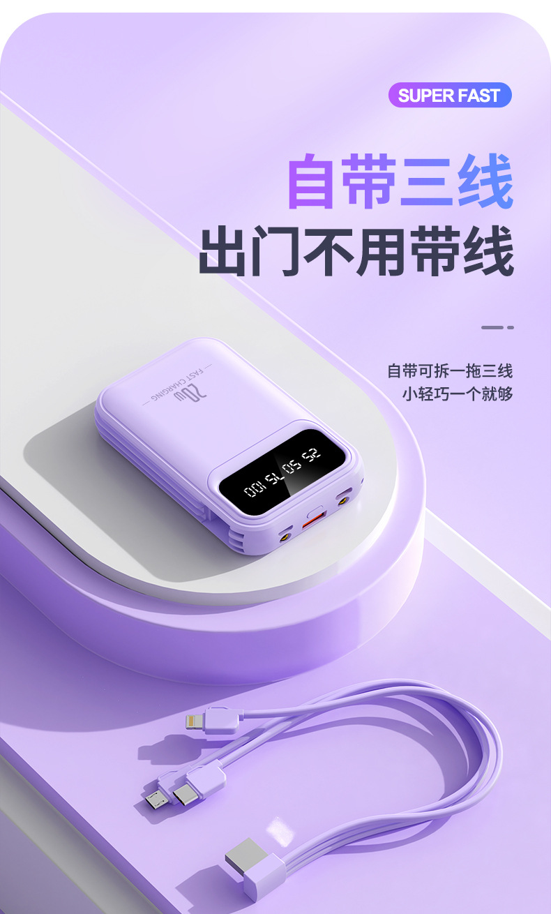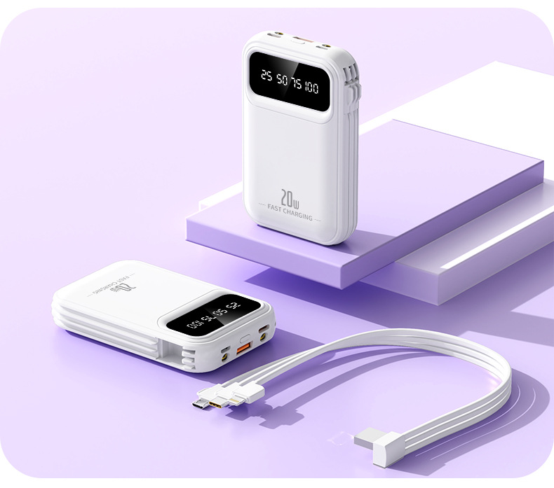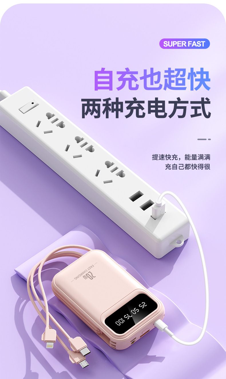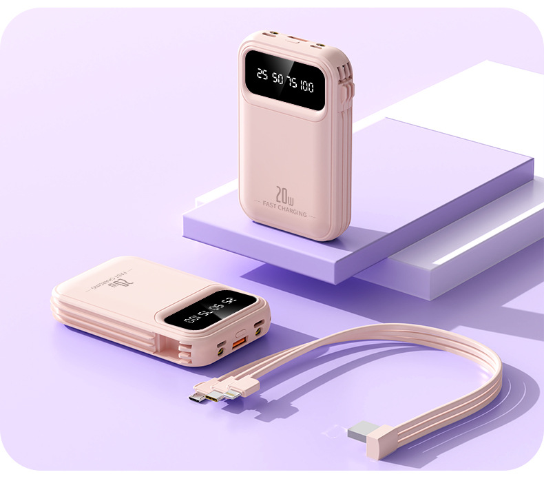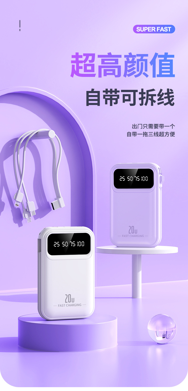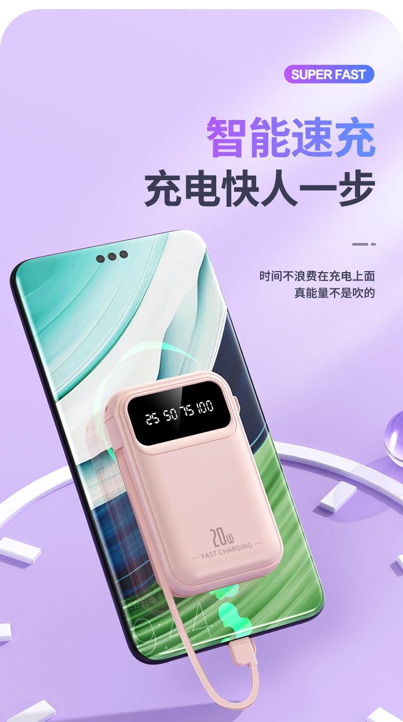 跨境批发共享自带线小巧充电宝便携迷你20000毫安移动电源印制