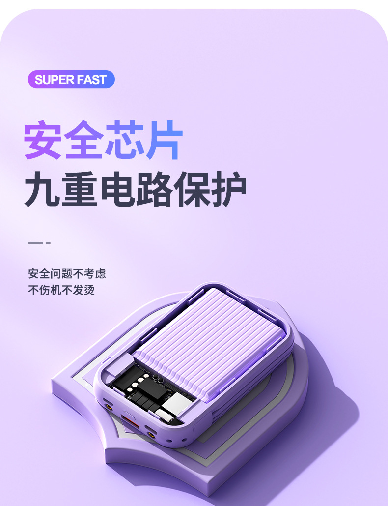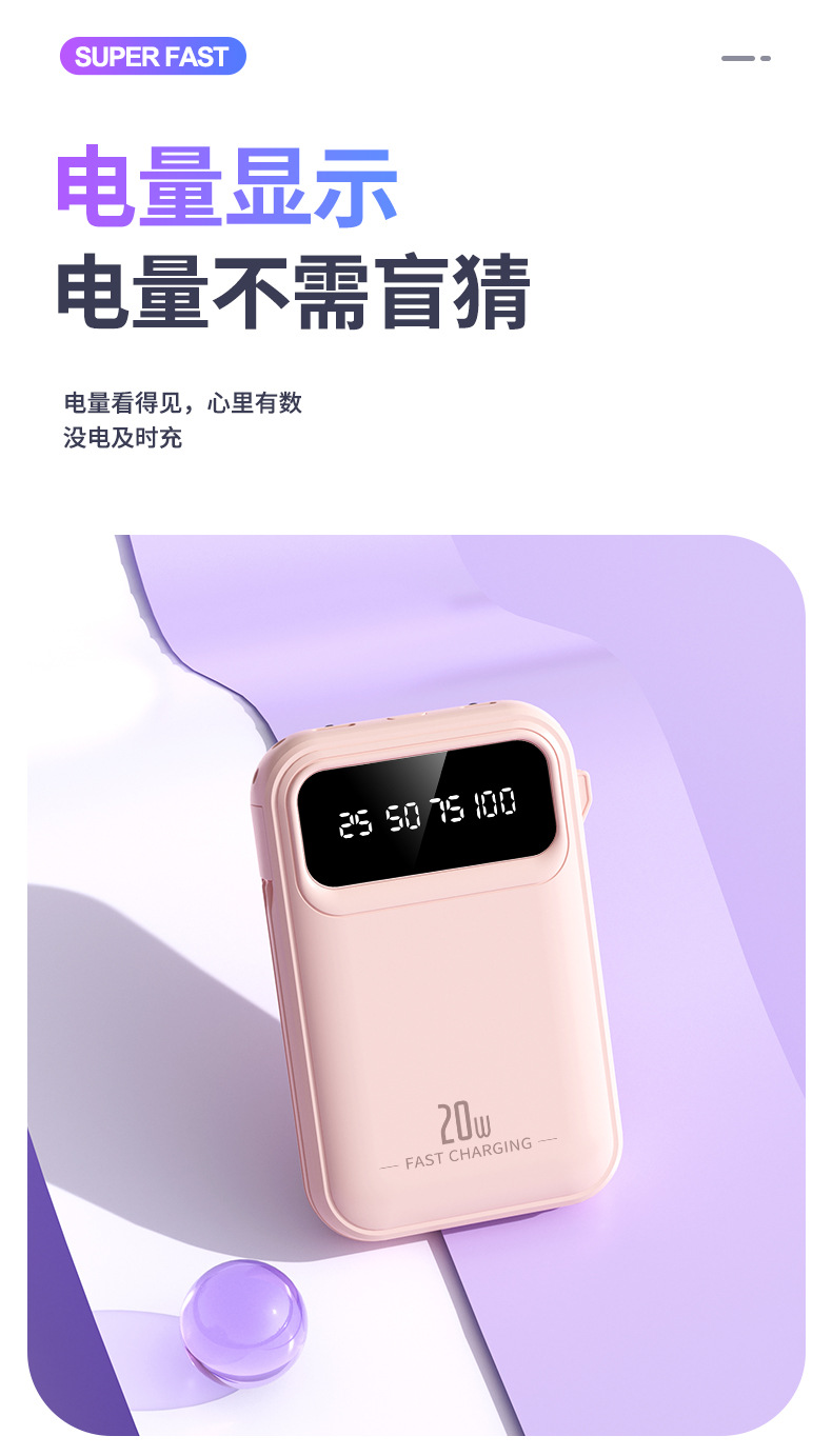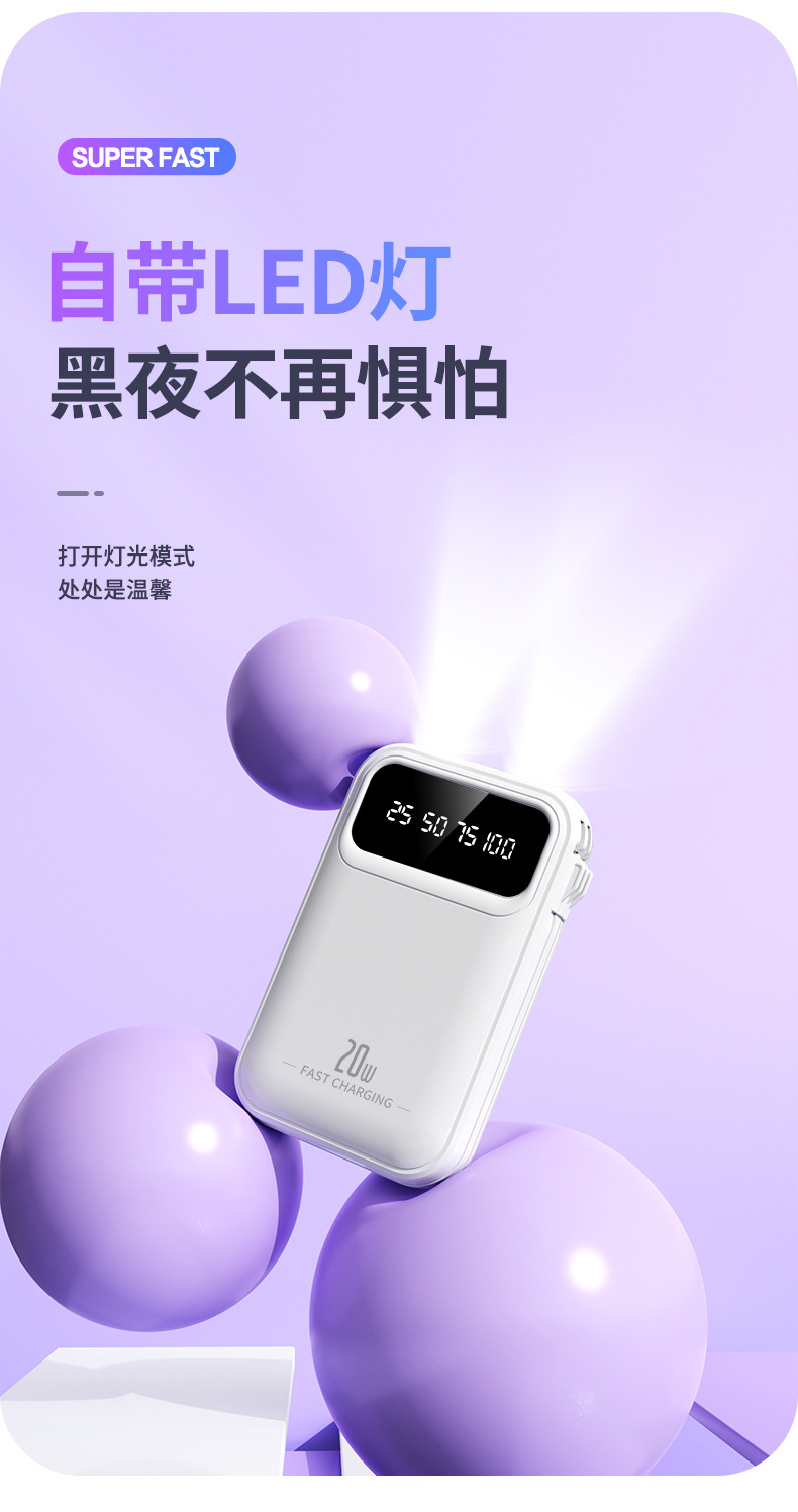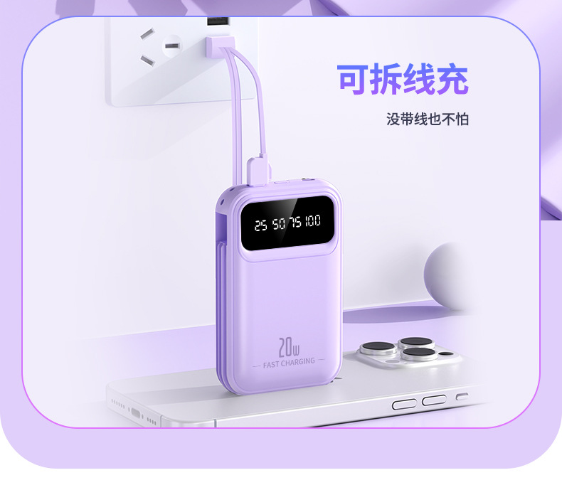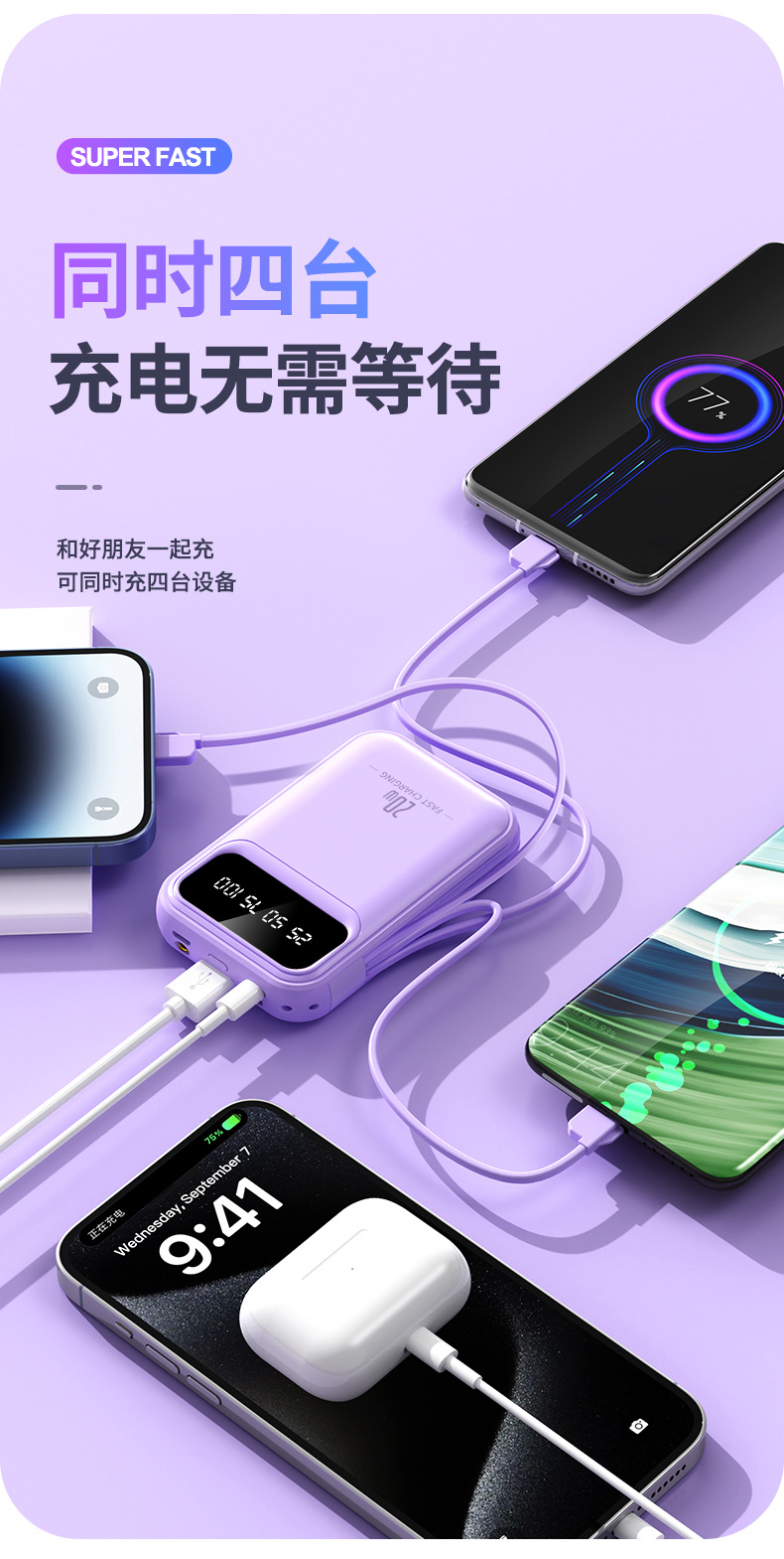 跨境批发共享自带线小巧充电宝便携迷你20000毫安移动电源印制