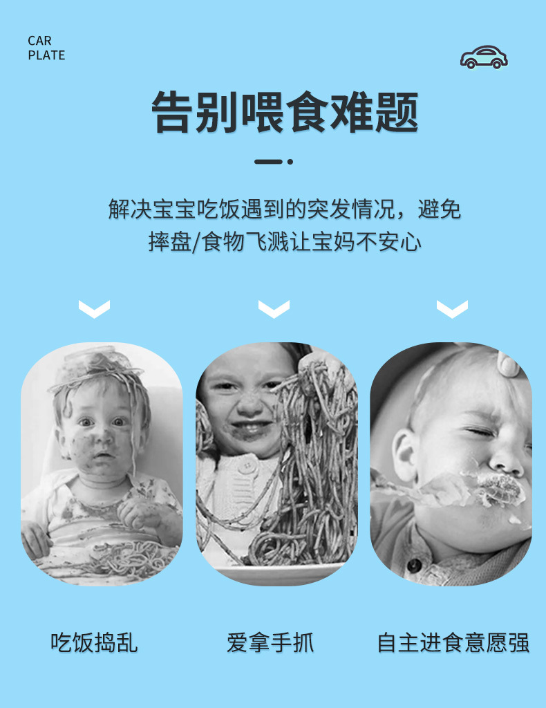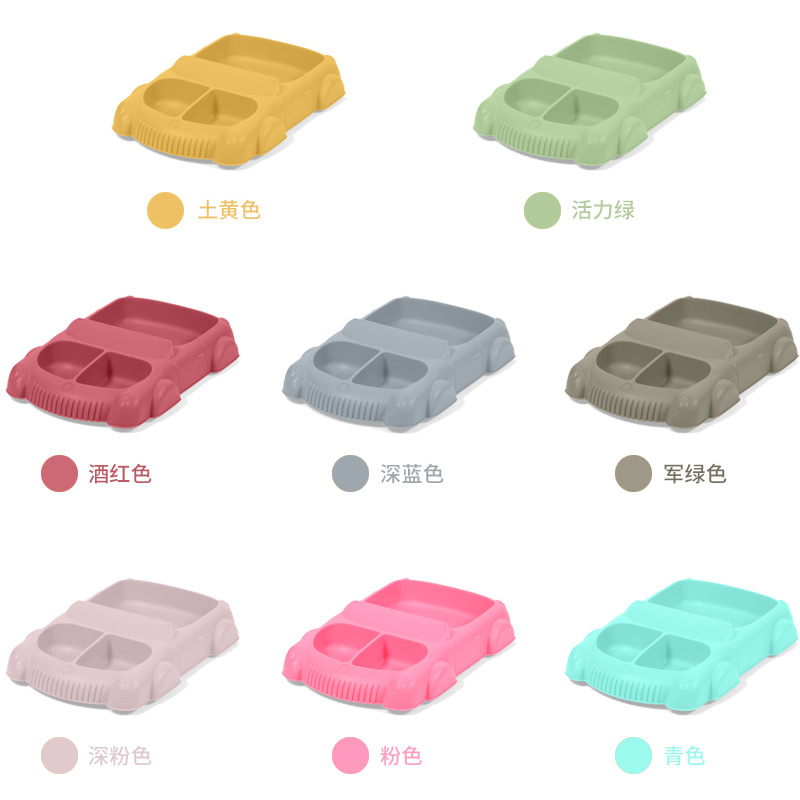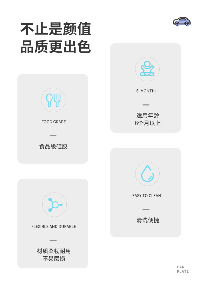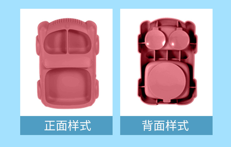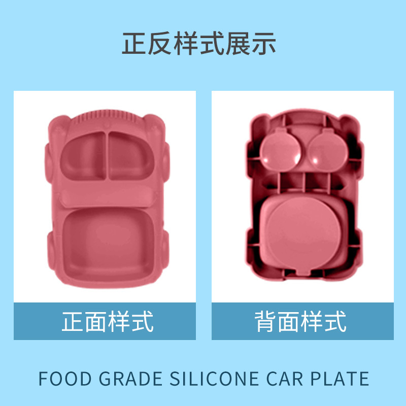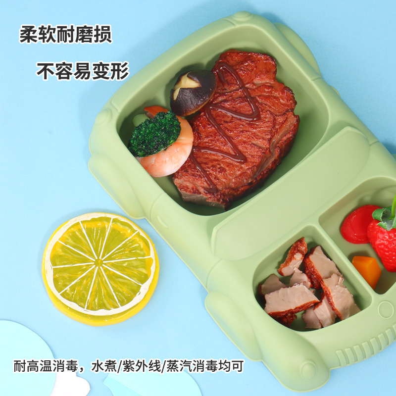 工厂新品婴儿硅胶餐盘大吸盘餐具套装8件套卡通儿童汽车硅胶餐盘
