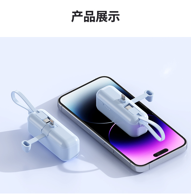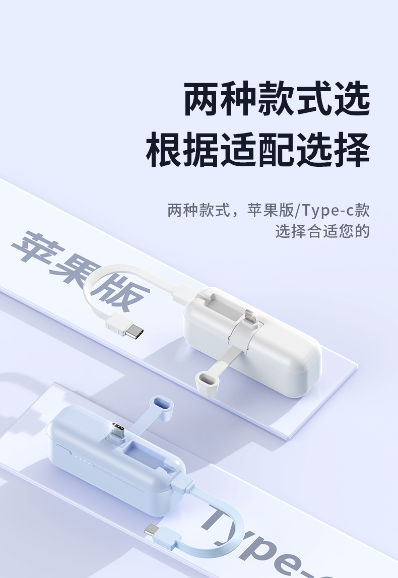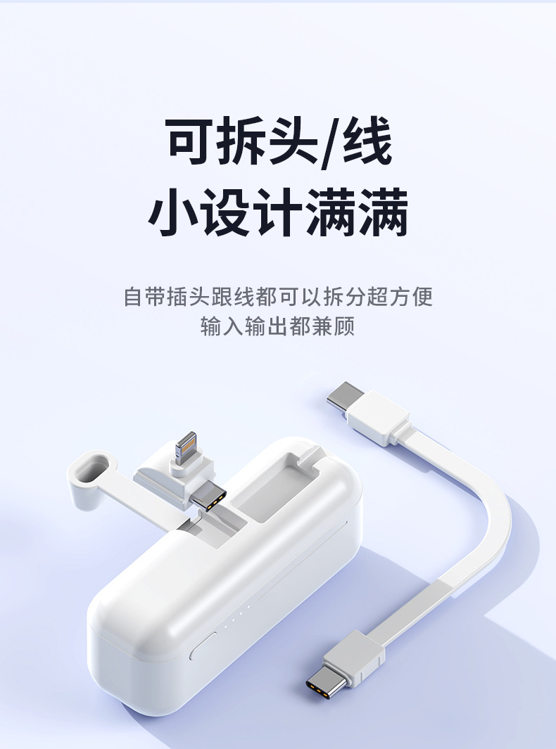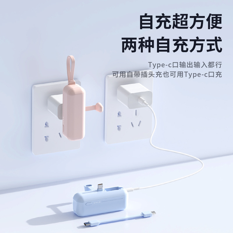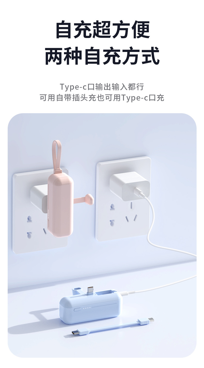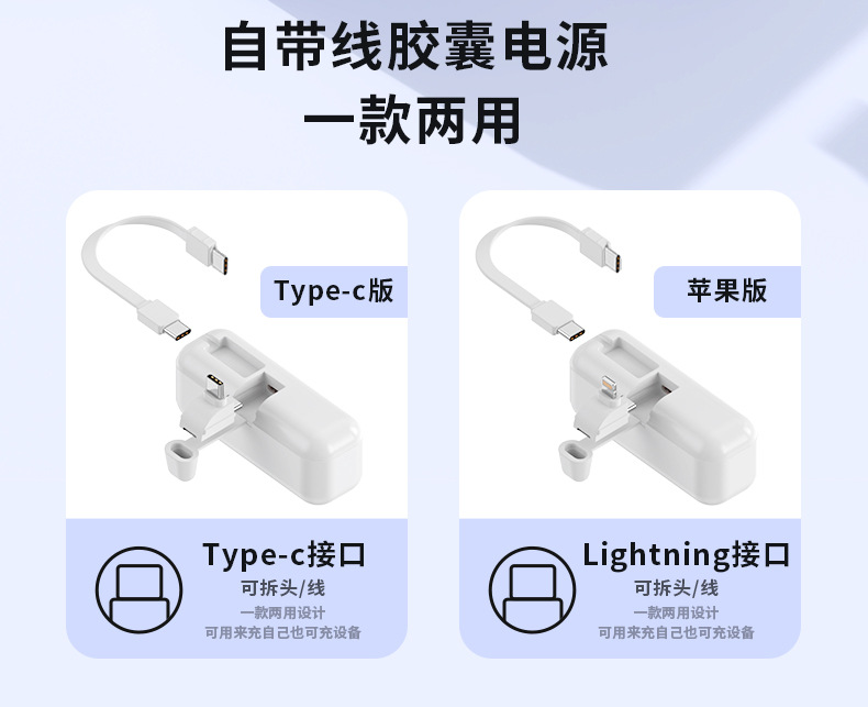 迷你胶囊充电宝自带线双向充电便携大容量移动电源礼品印制
