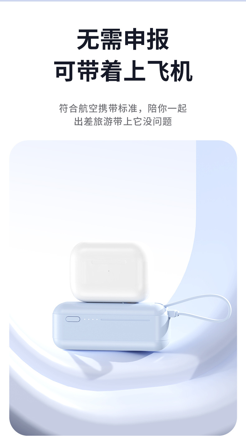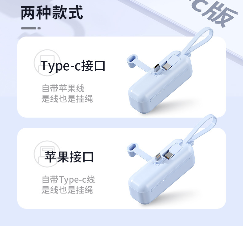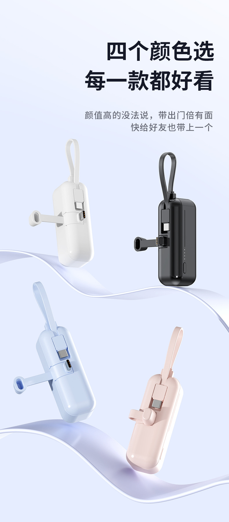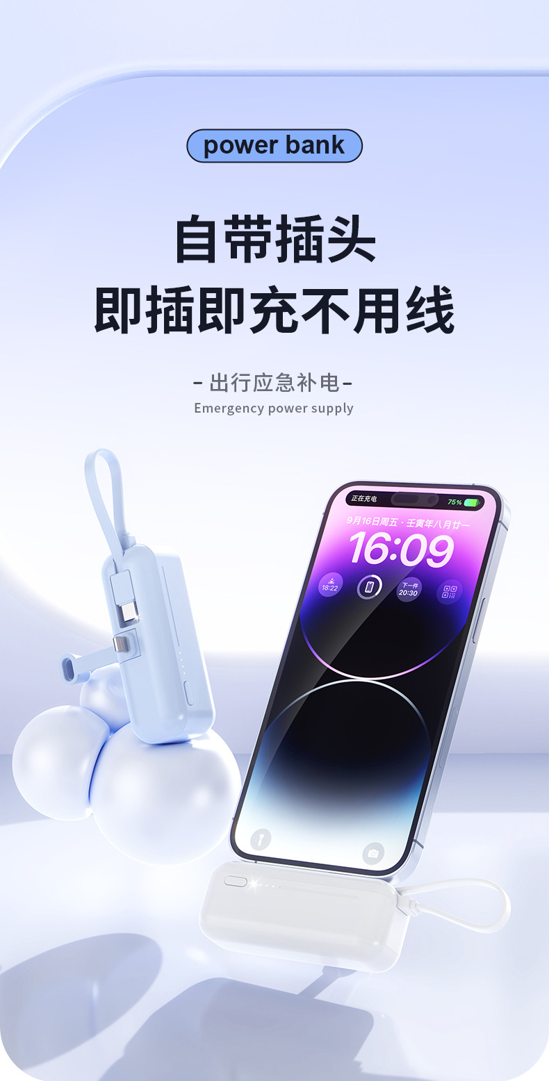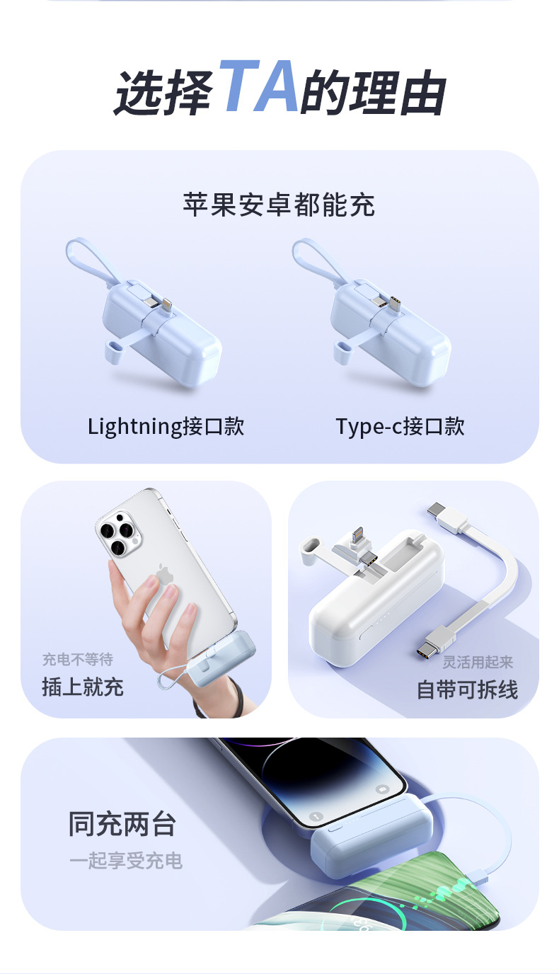 迷你胶囊充电宝自带线双向充电便携大容量移动电源礼品印制