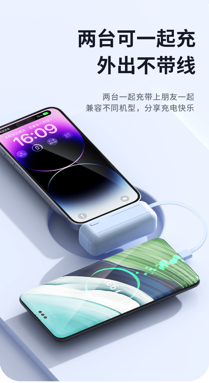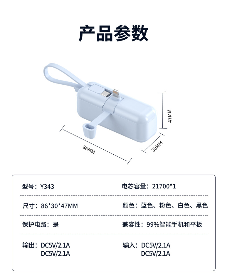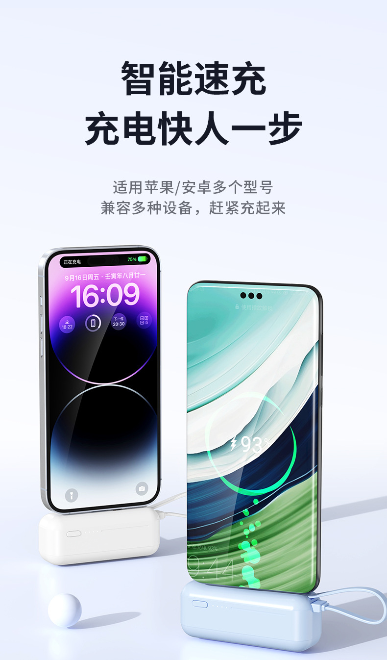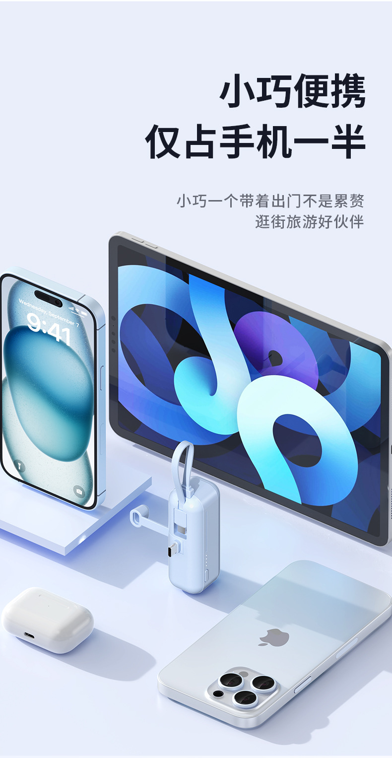 迷你胶囊充电宝自带线双向充电便携大容量移动电源礼品印制