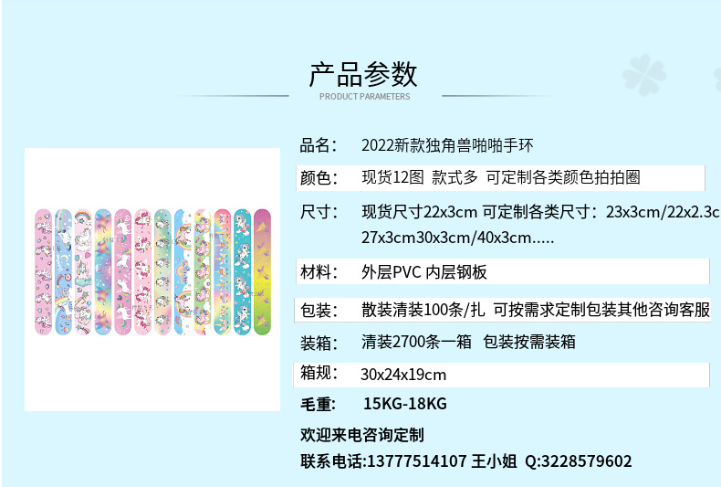 新独角兽 墨西哥FIESTA 啪啪圈手环儿童派对装饰手环带拍拍圈生日