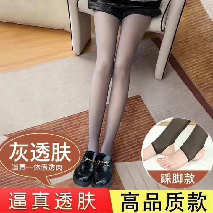 大码秋冬外穿假透肉打底裤女加厚春秋薄款光腿神器紧身一体空姐灰