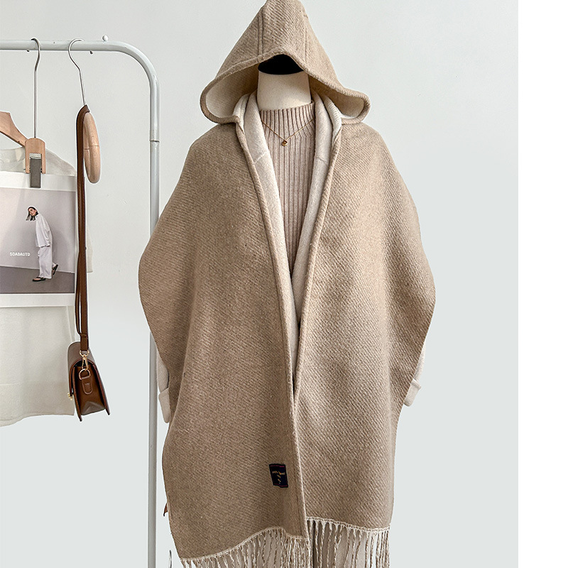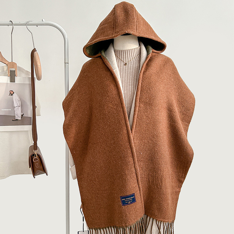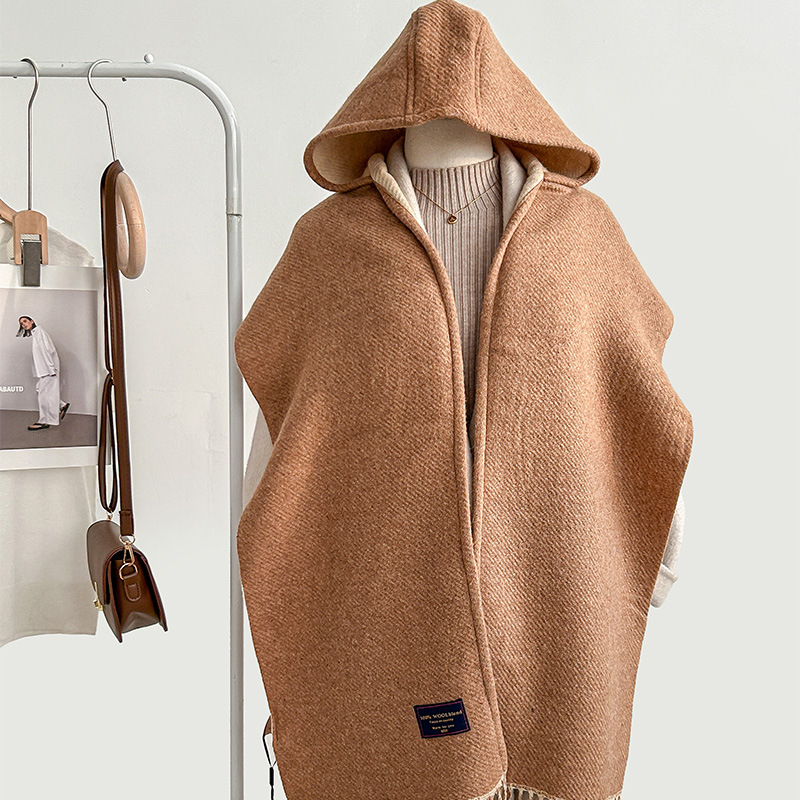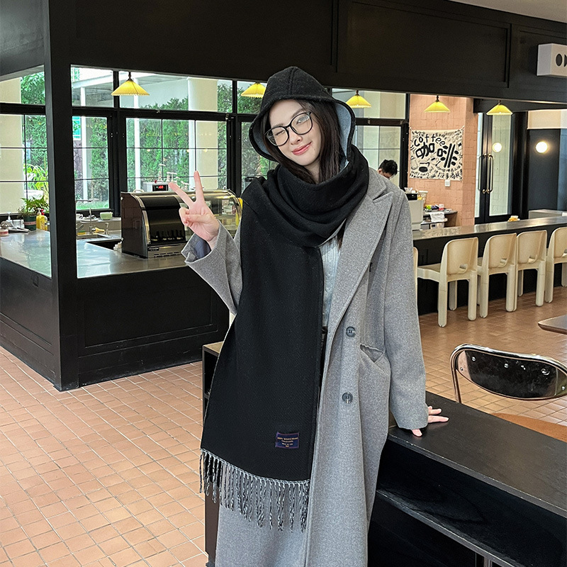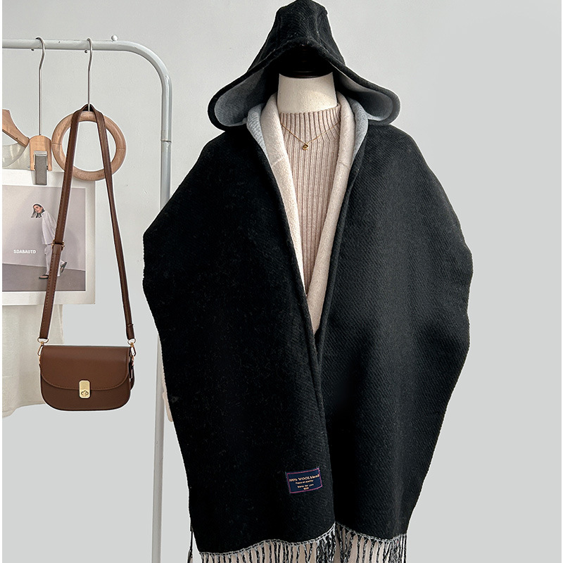 羊毛围巾女2024新款冬季围脖女友带帽生日礼物韩版潮流休闲百搭