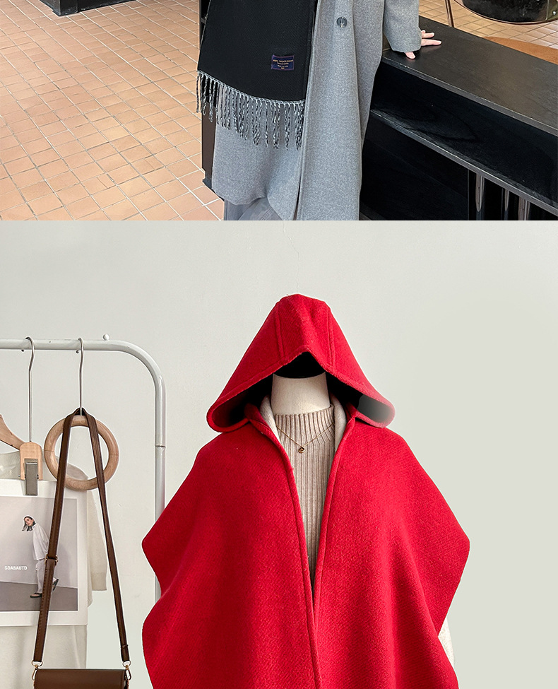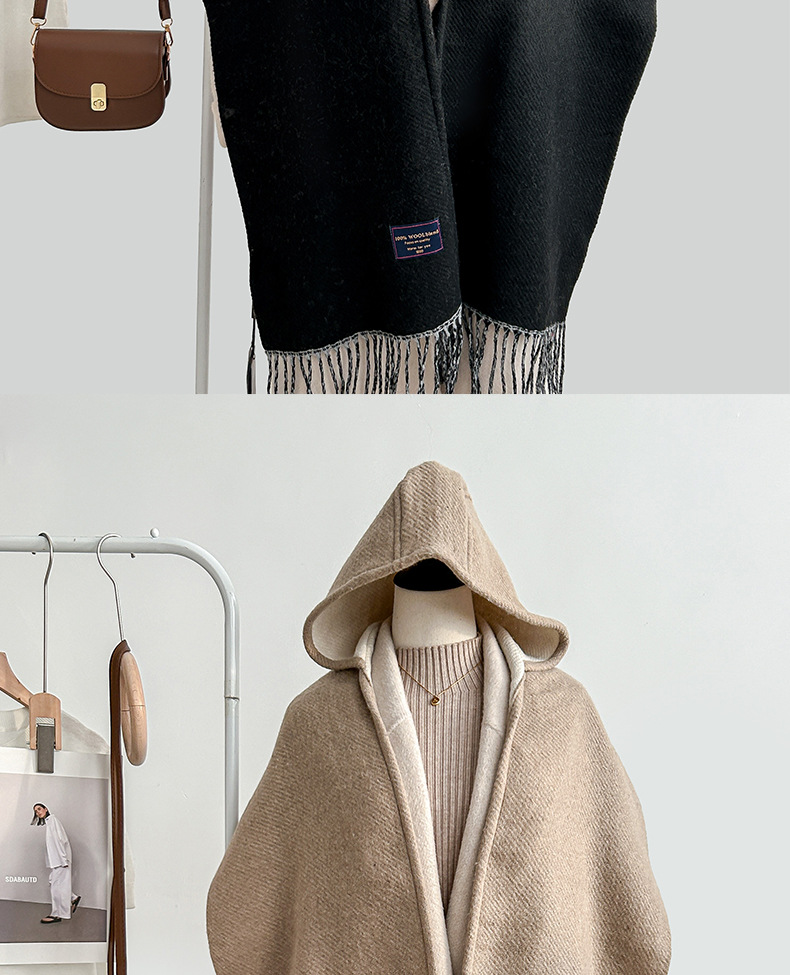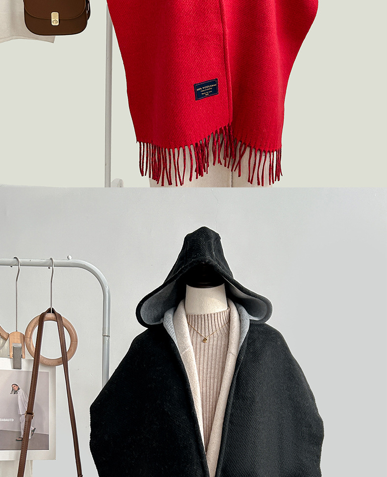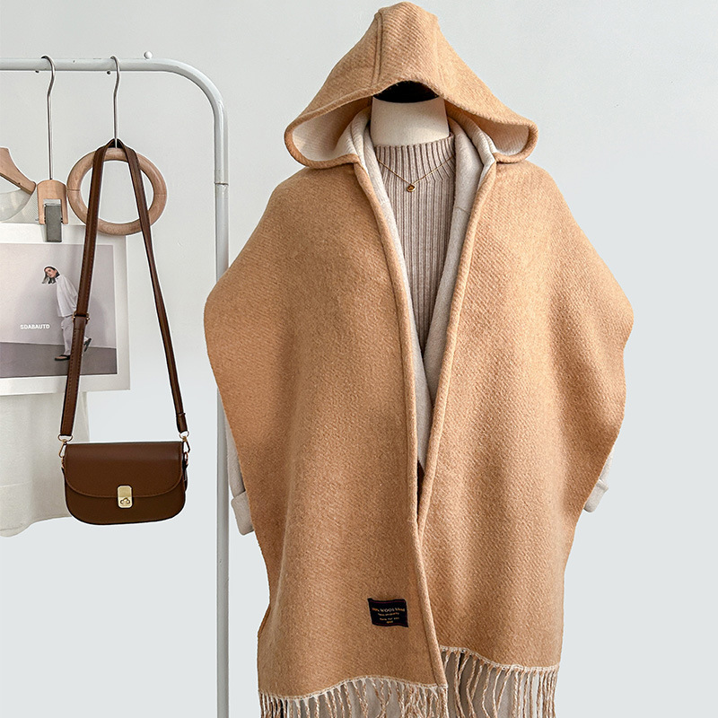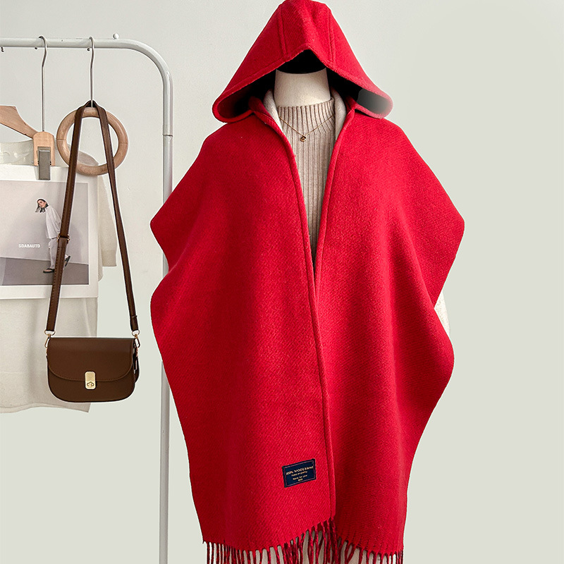 羊毛围巾女2024新款冬季围脖女友带帽生日礼物韩版潮流休闲百搭