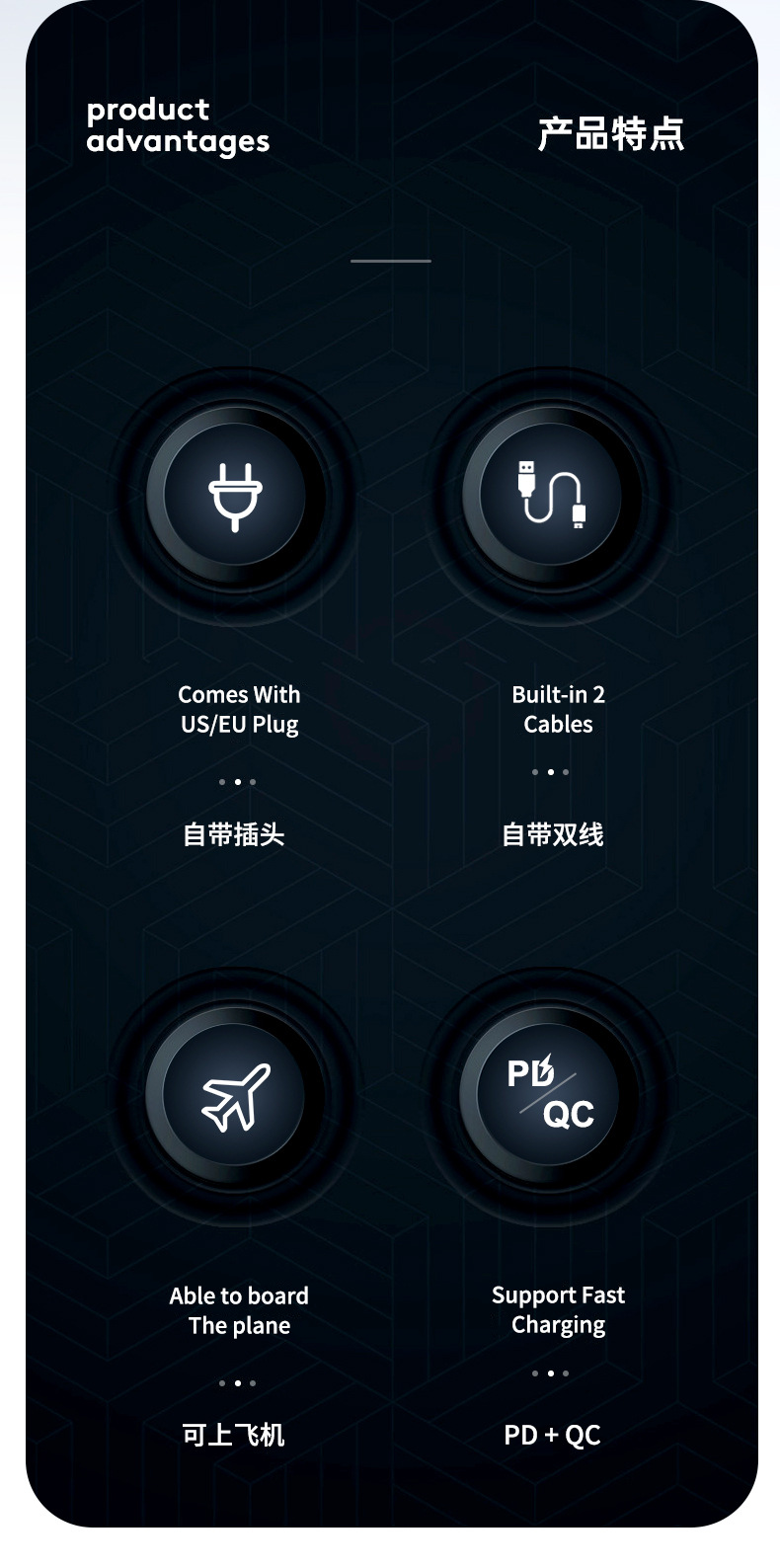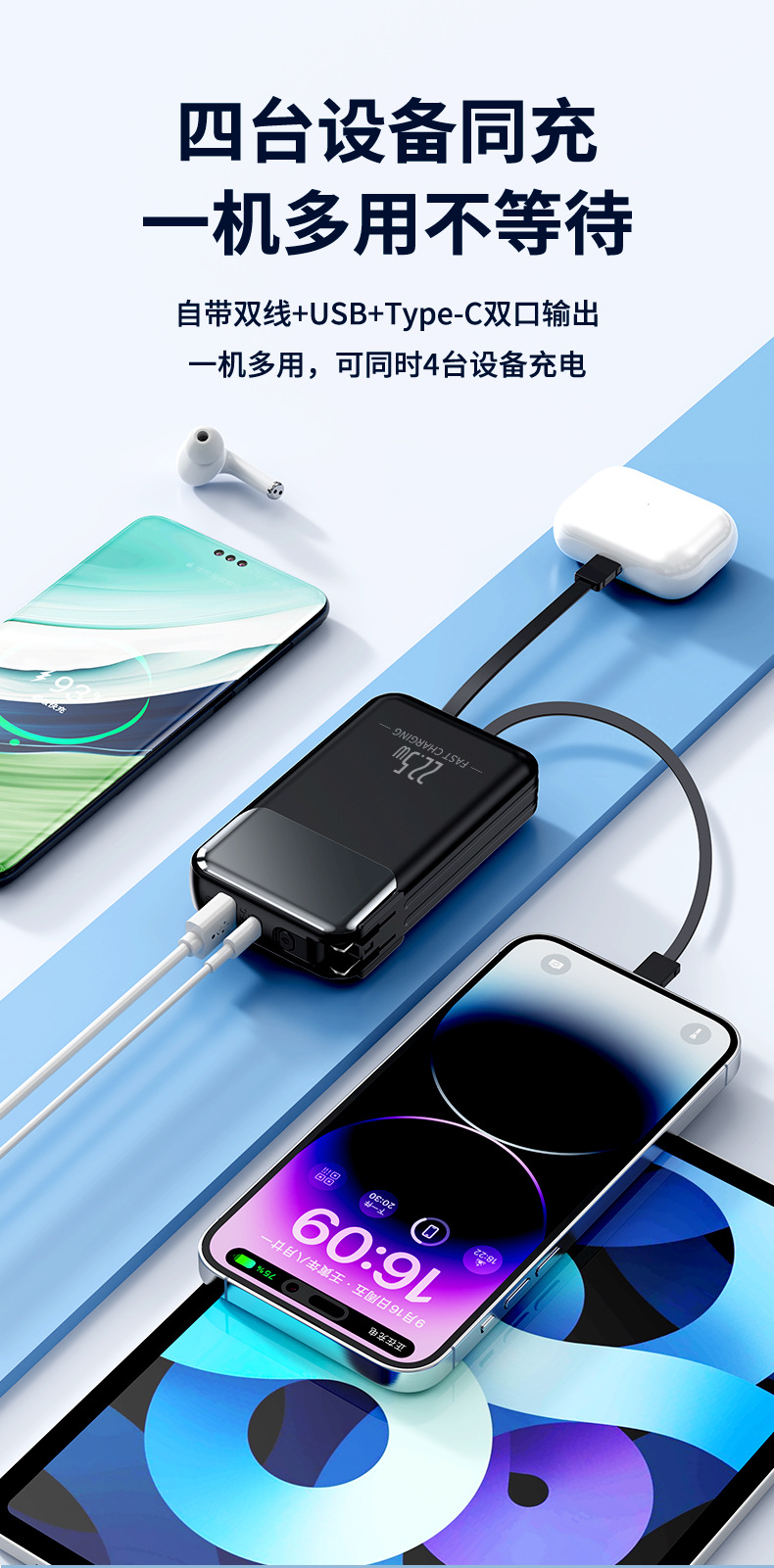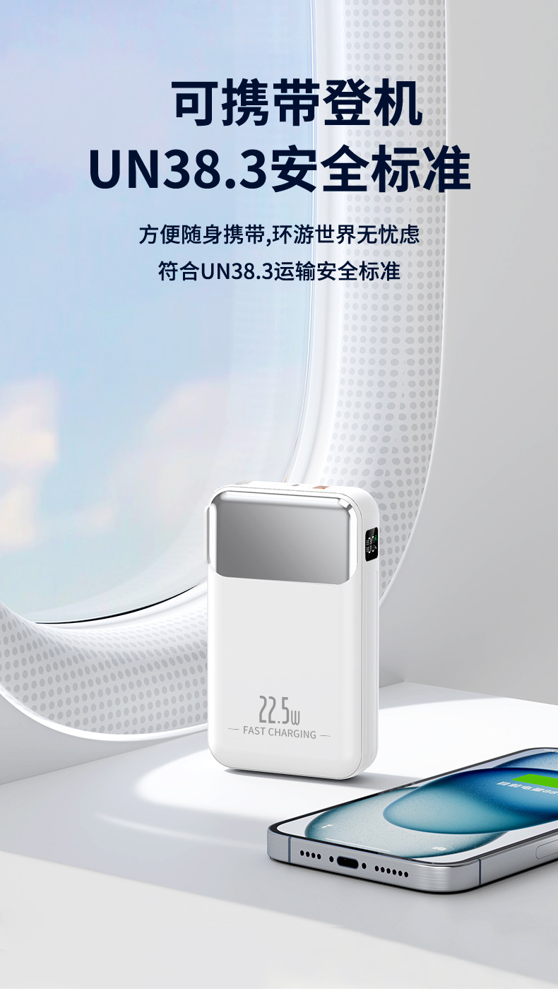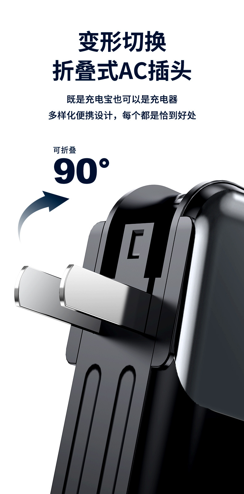 跨境AC插头充电宝便携墙插三合一自带线大容量22.5W快充移动电源