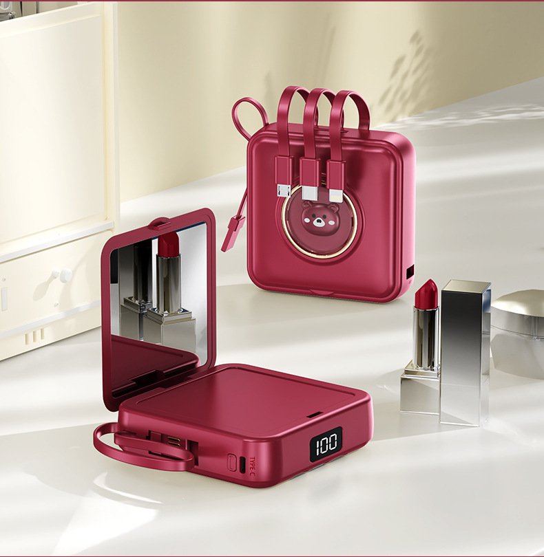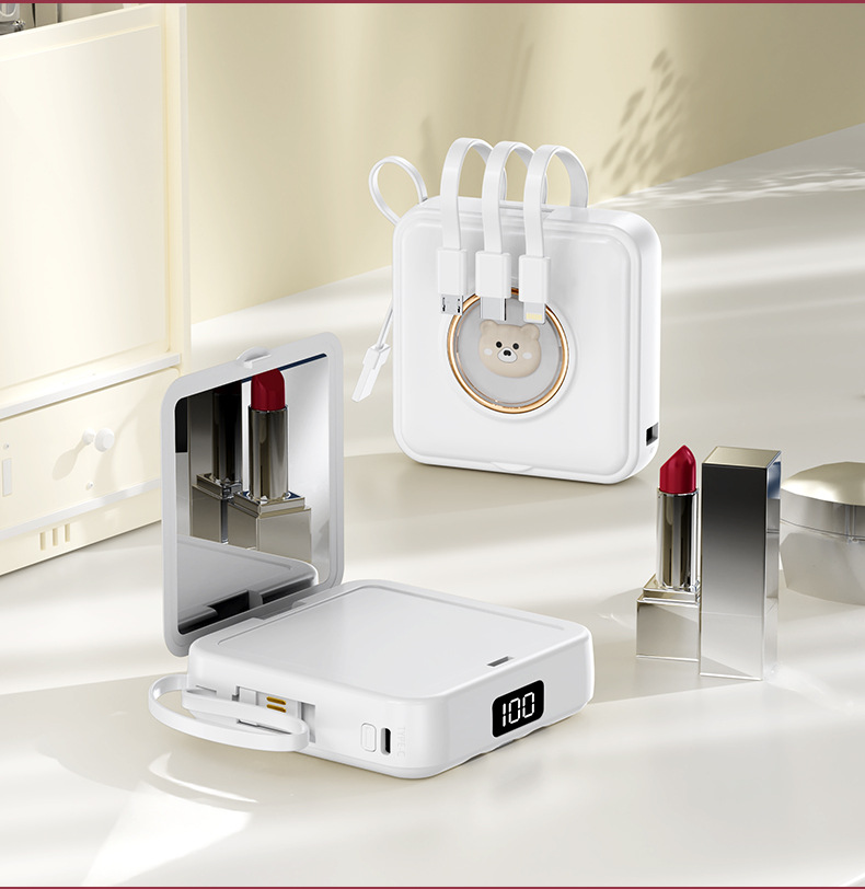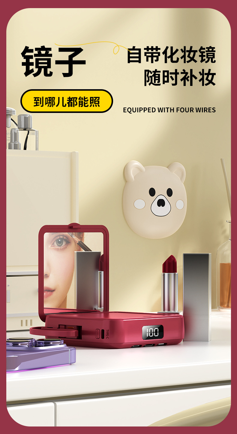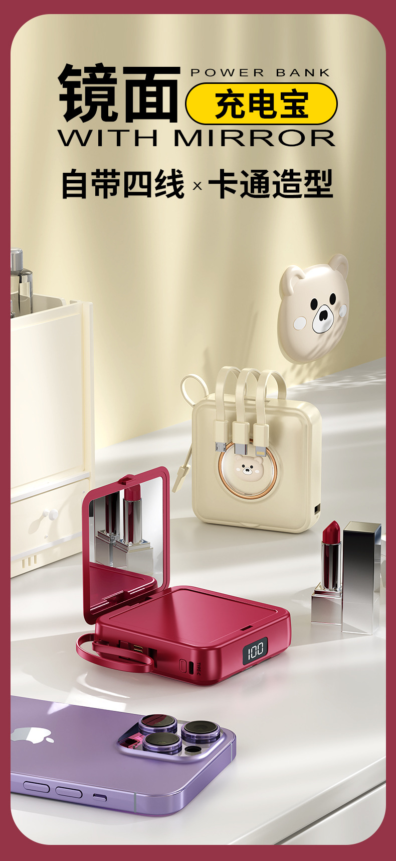 跨境迷你化妆镜卡通充电宝20000毫安大容量便携带线移动电源logo