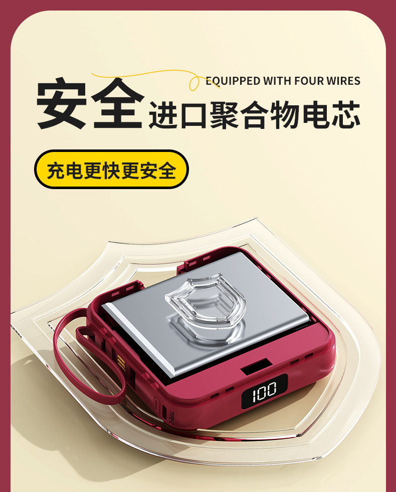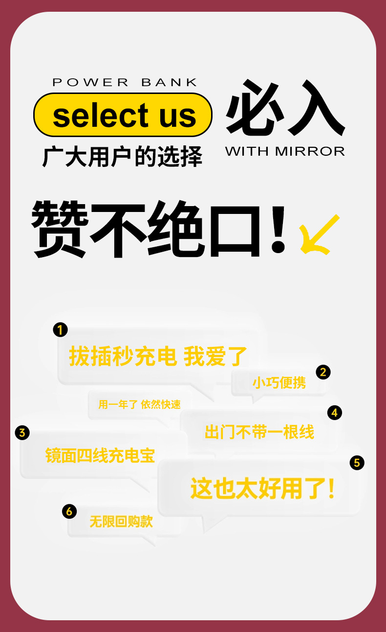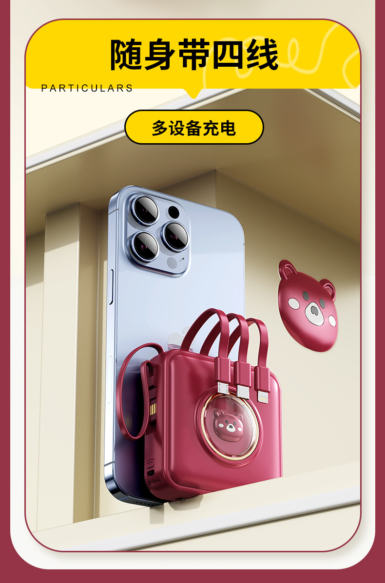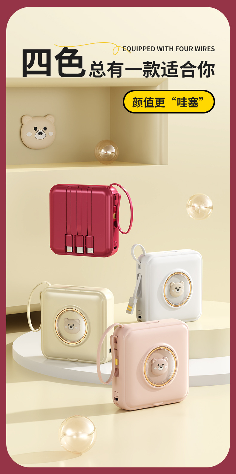 跨境迷你化妆镜卡通充电宝20000毫安大容量便携带线移动电源logo