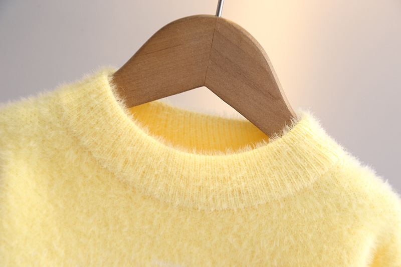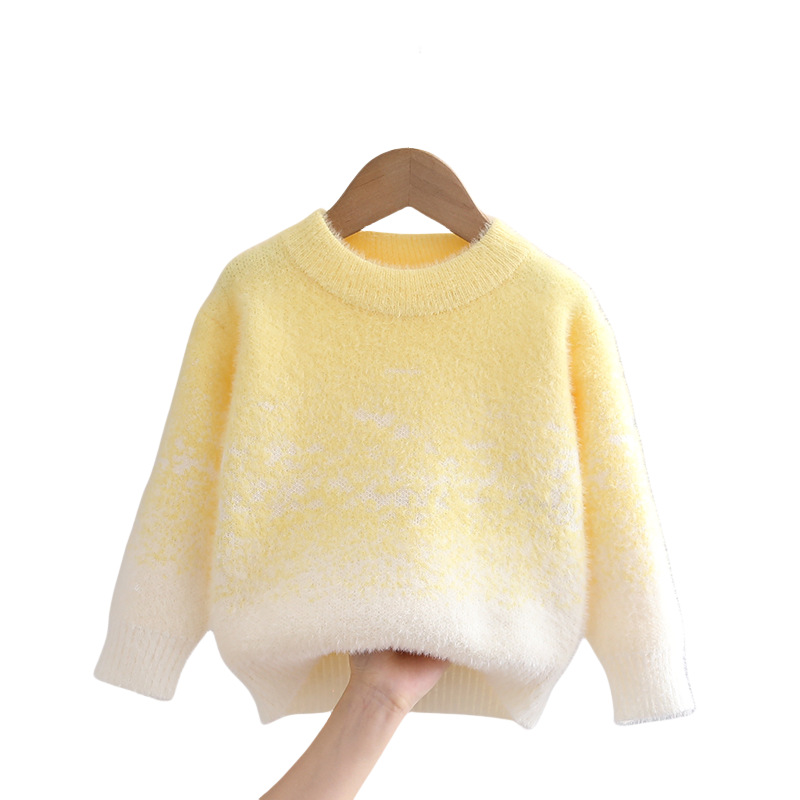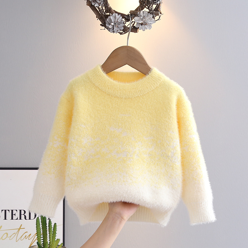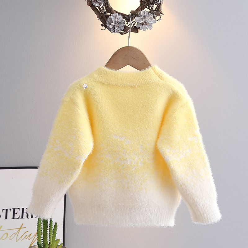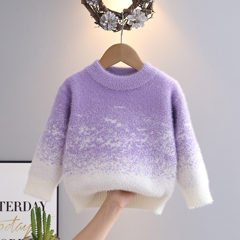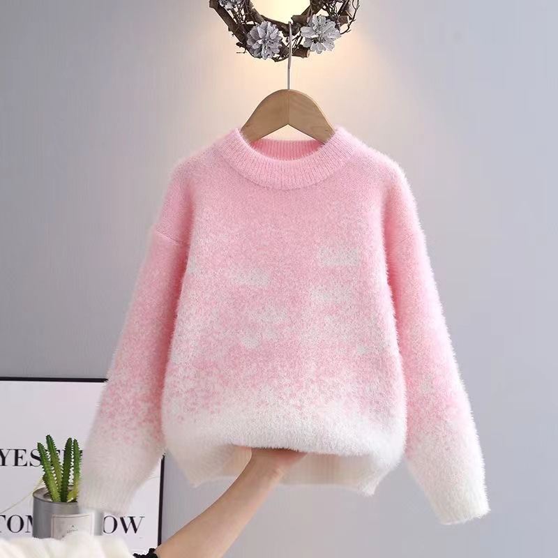 女童水貂绒毛衣春秋款2024新款中小儿童外穿打底衫圆领渐变针织衫