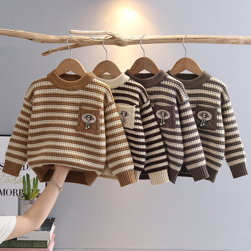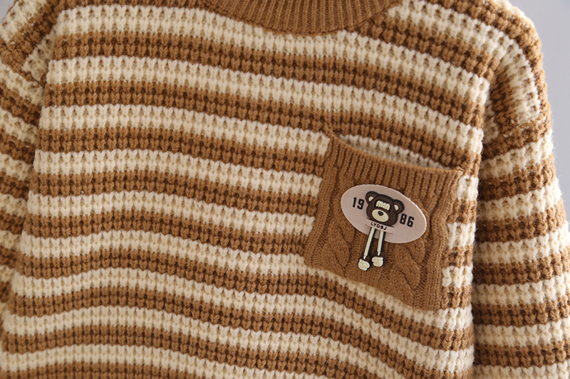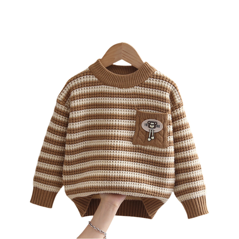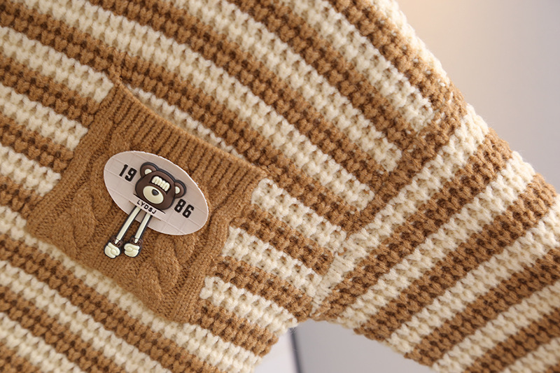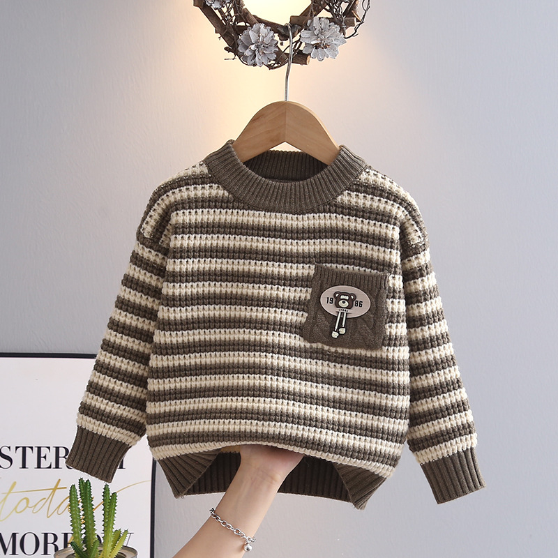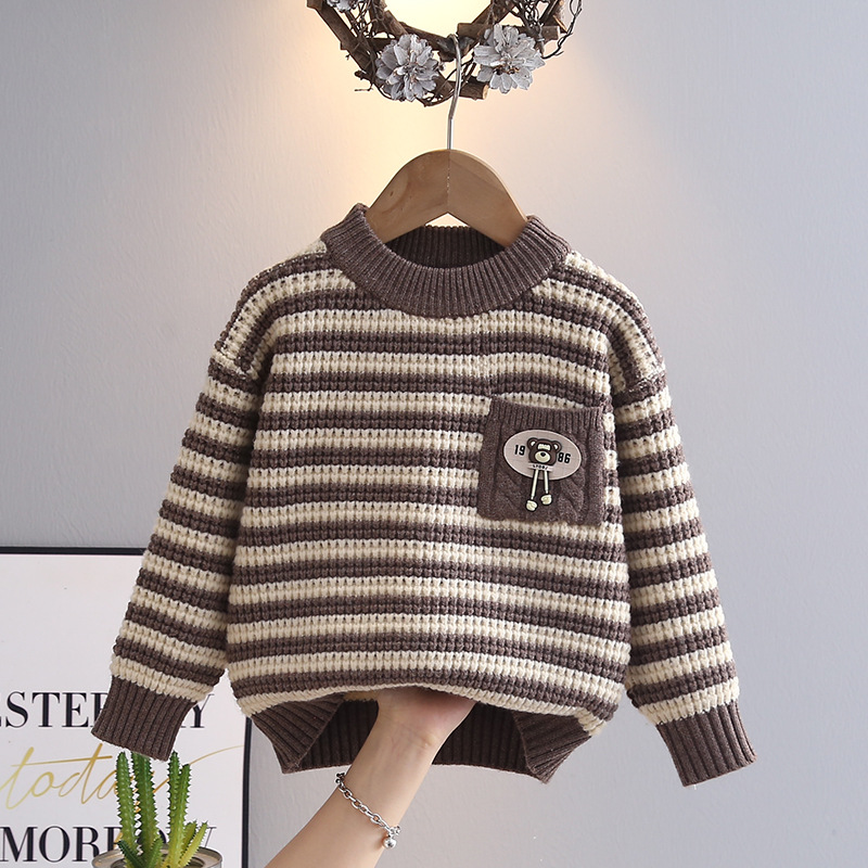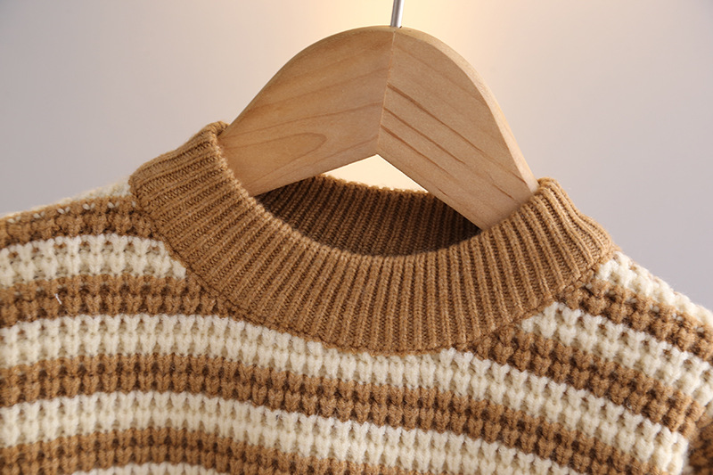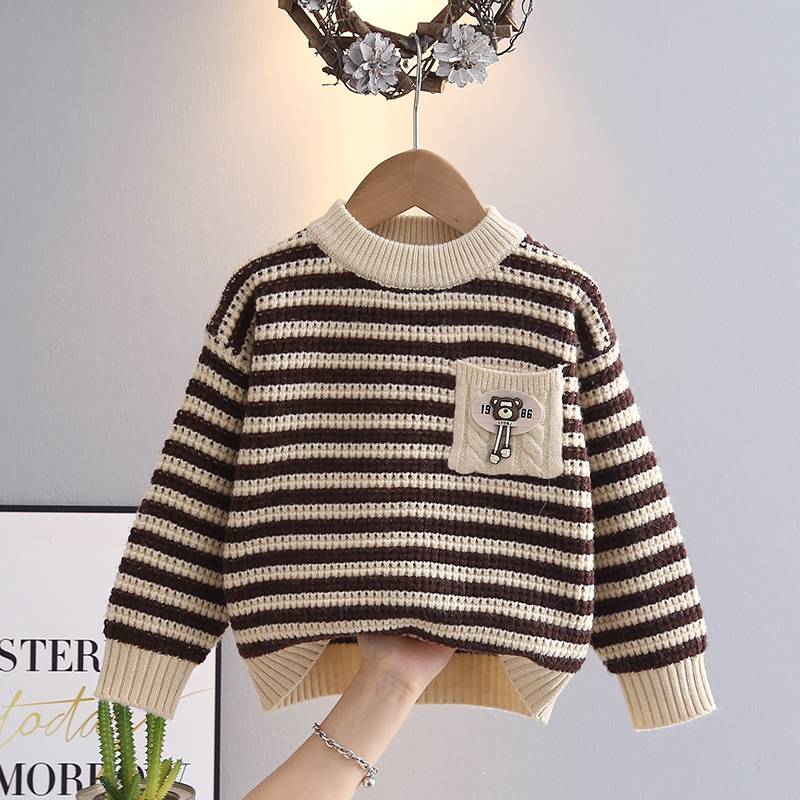 男童毛衣2024新款加厚条纹洋气宝宝秋冬装小童上衣儿童针织内搭潮