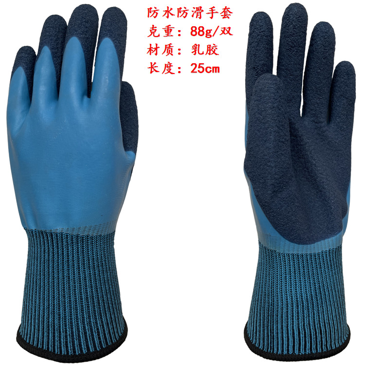 劳保手套耐磨浸胶皮丁腈睛晴工地干活乳橡胶洗碗厨房保暖加绒手套