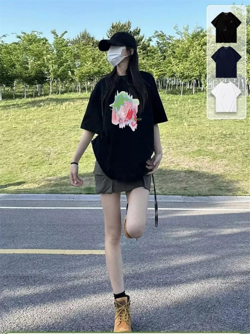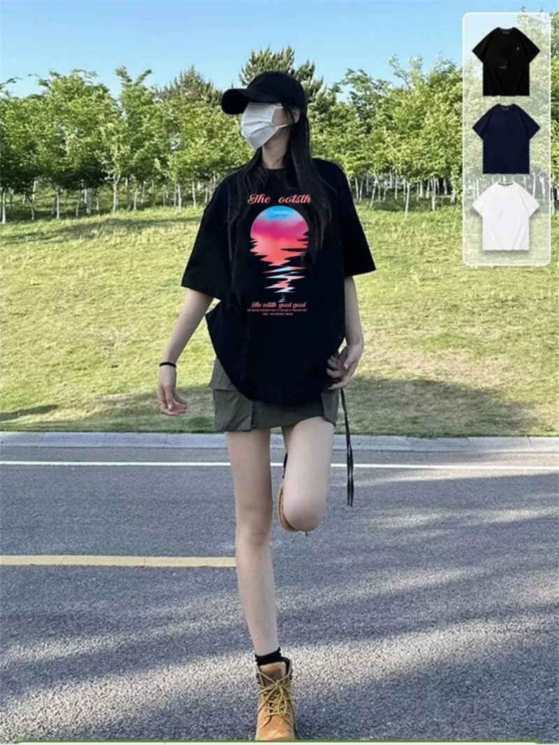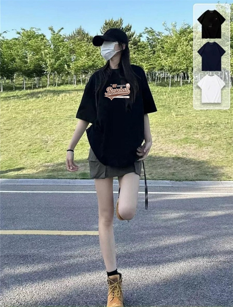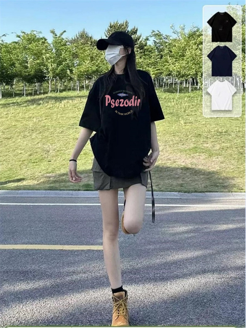女装精梳纯棉短袖t恤女美式短袖女t恤潮牌正肩上衣短袖女220克棉