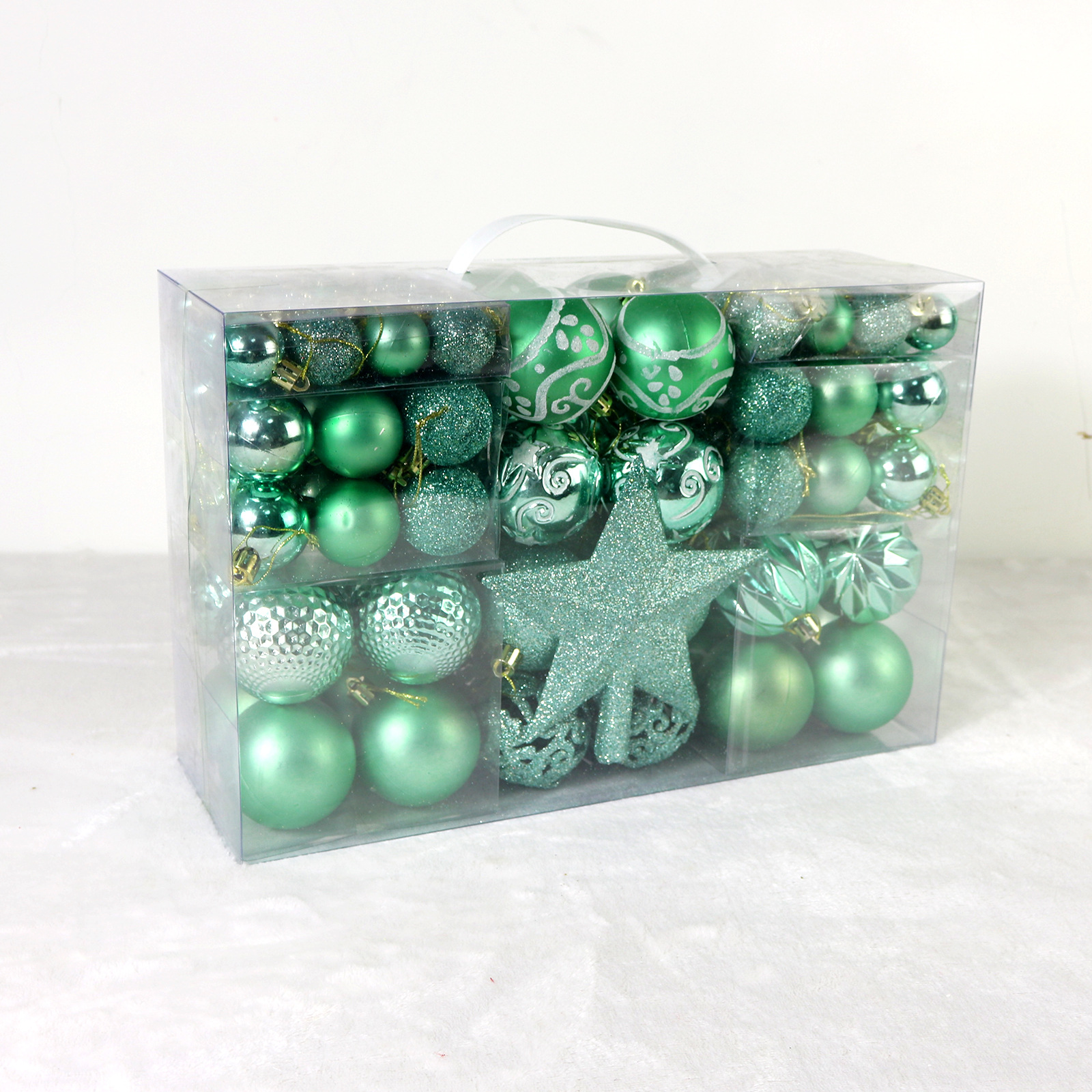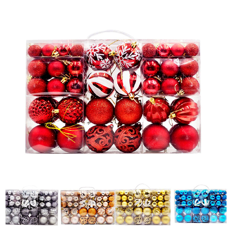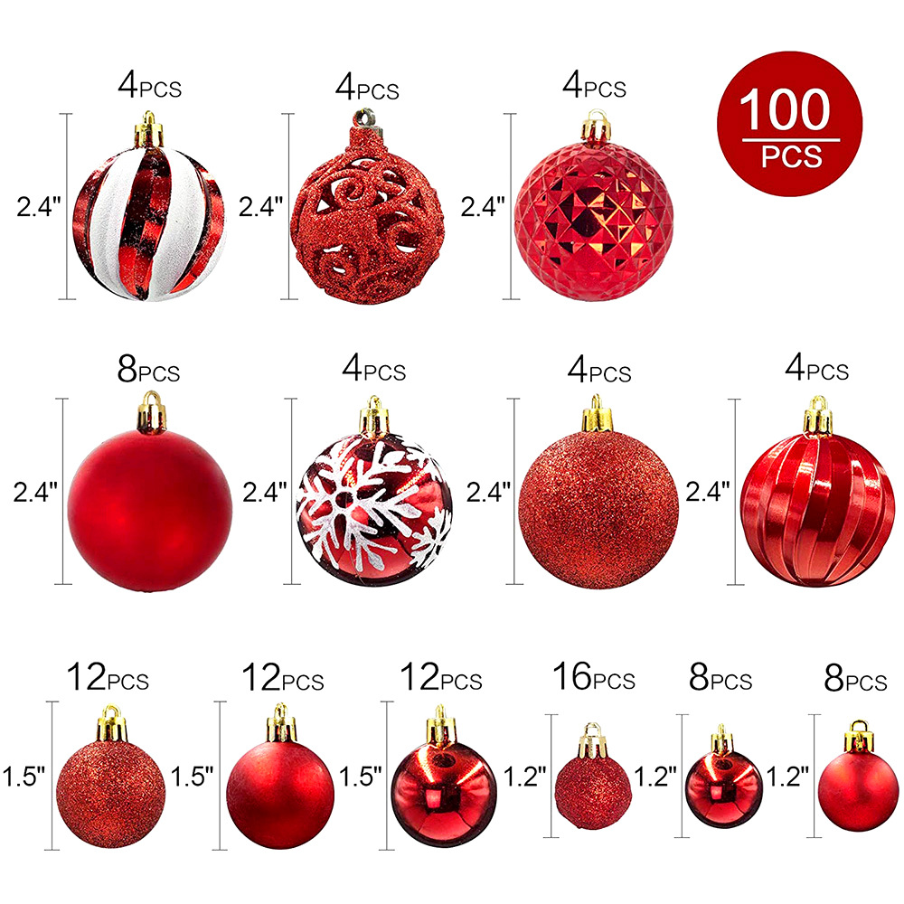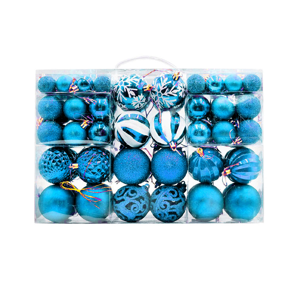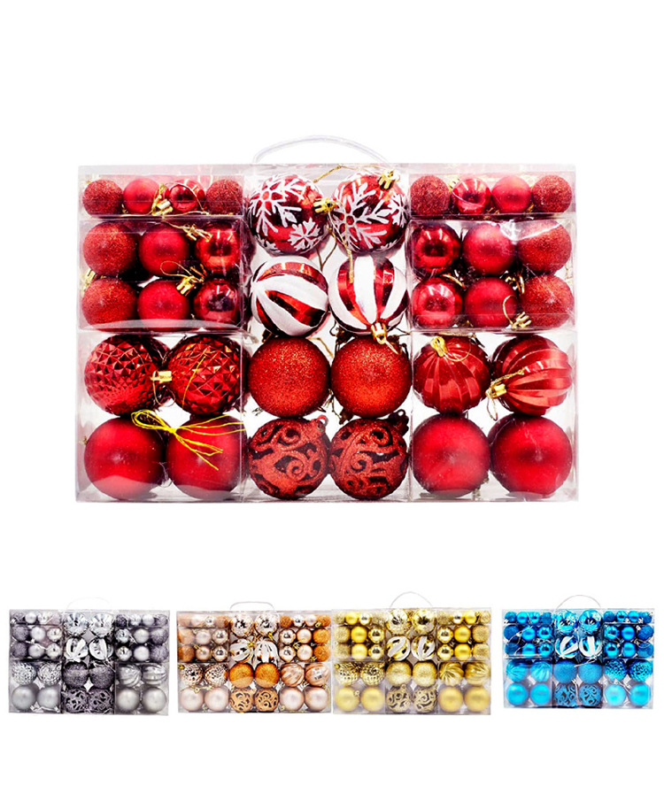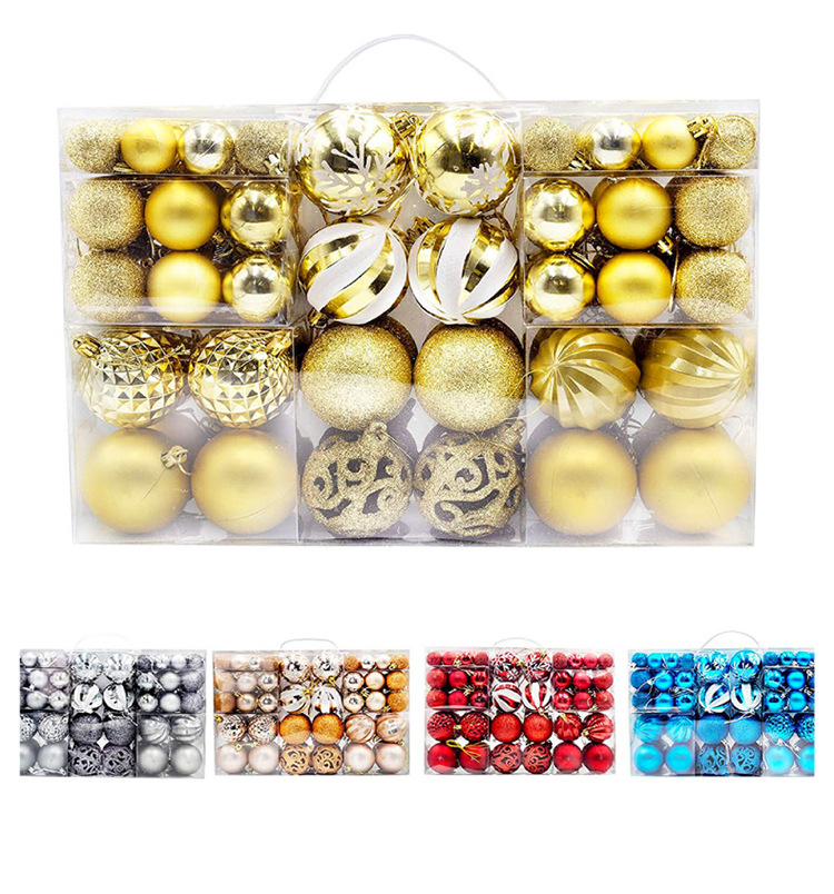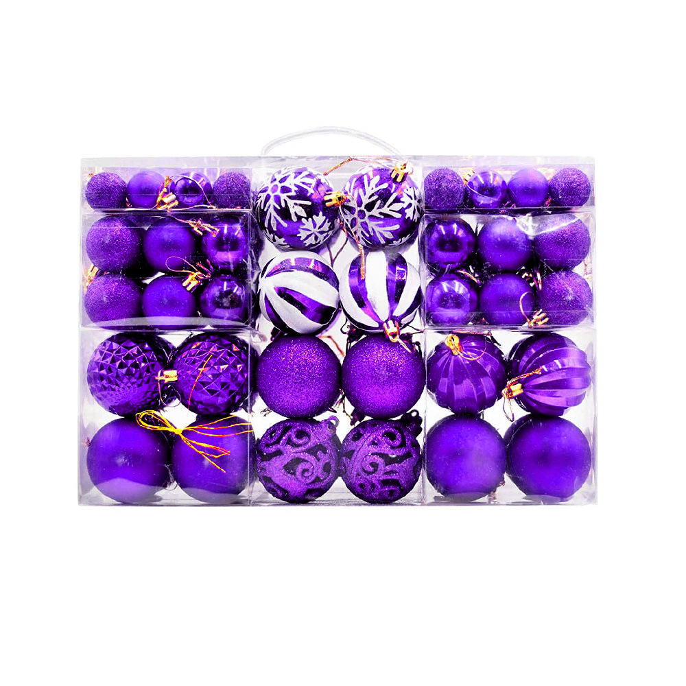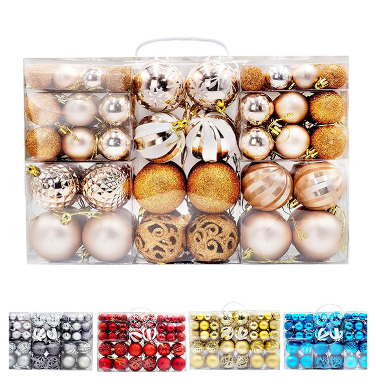 亚马逊爆款 100个多多包异形彩绘塑料圣诞球套装吊顶装饰挂件吊球