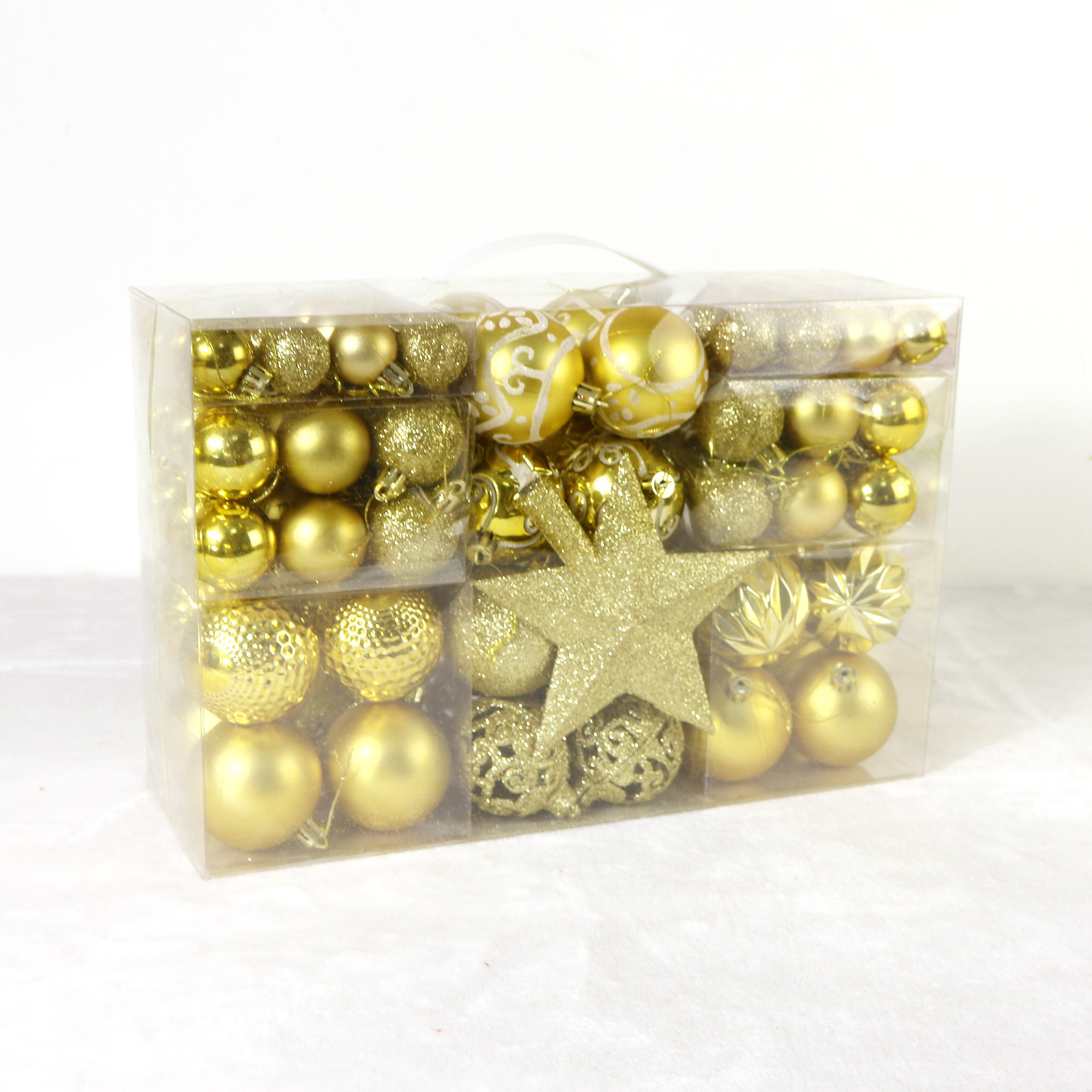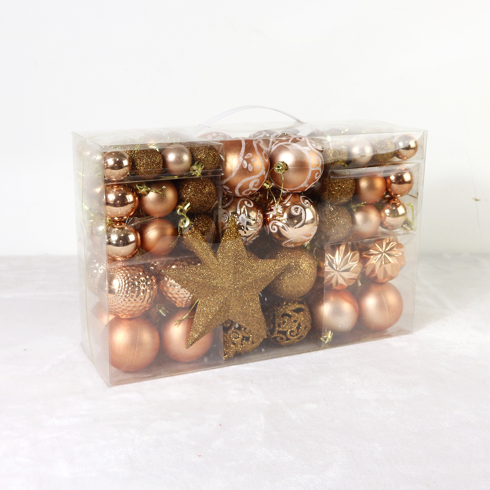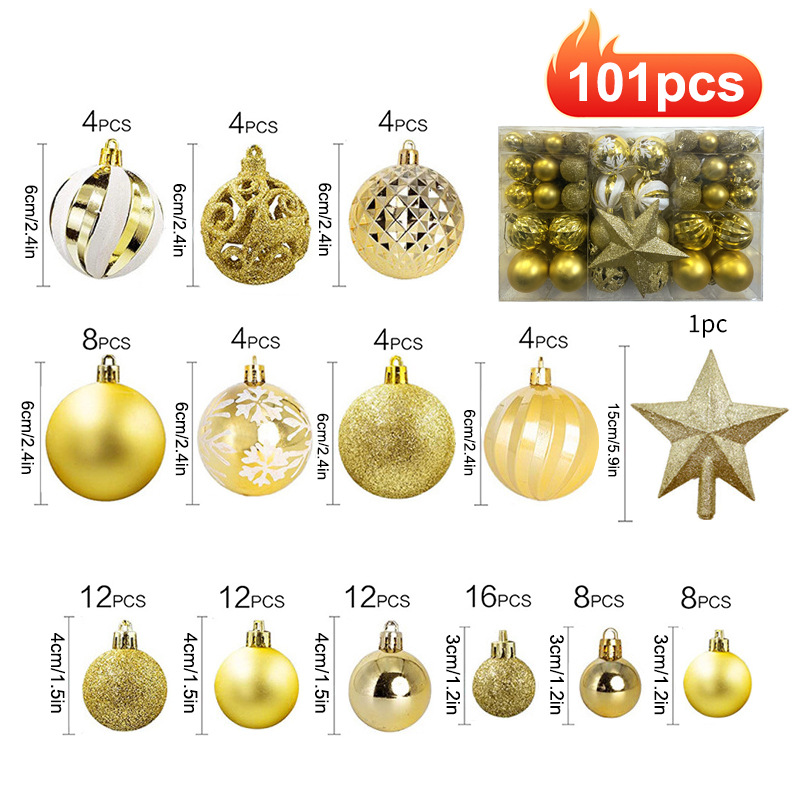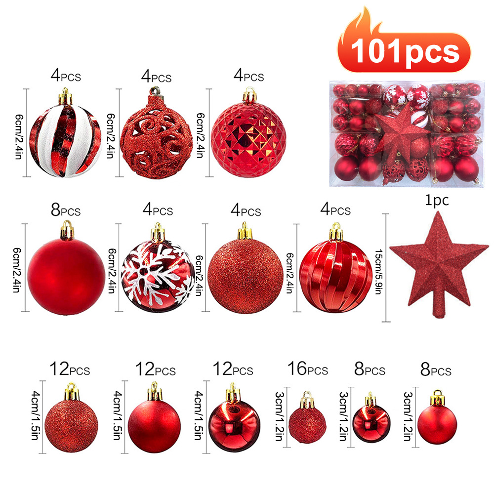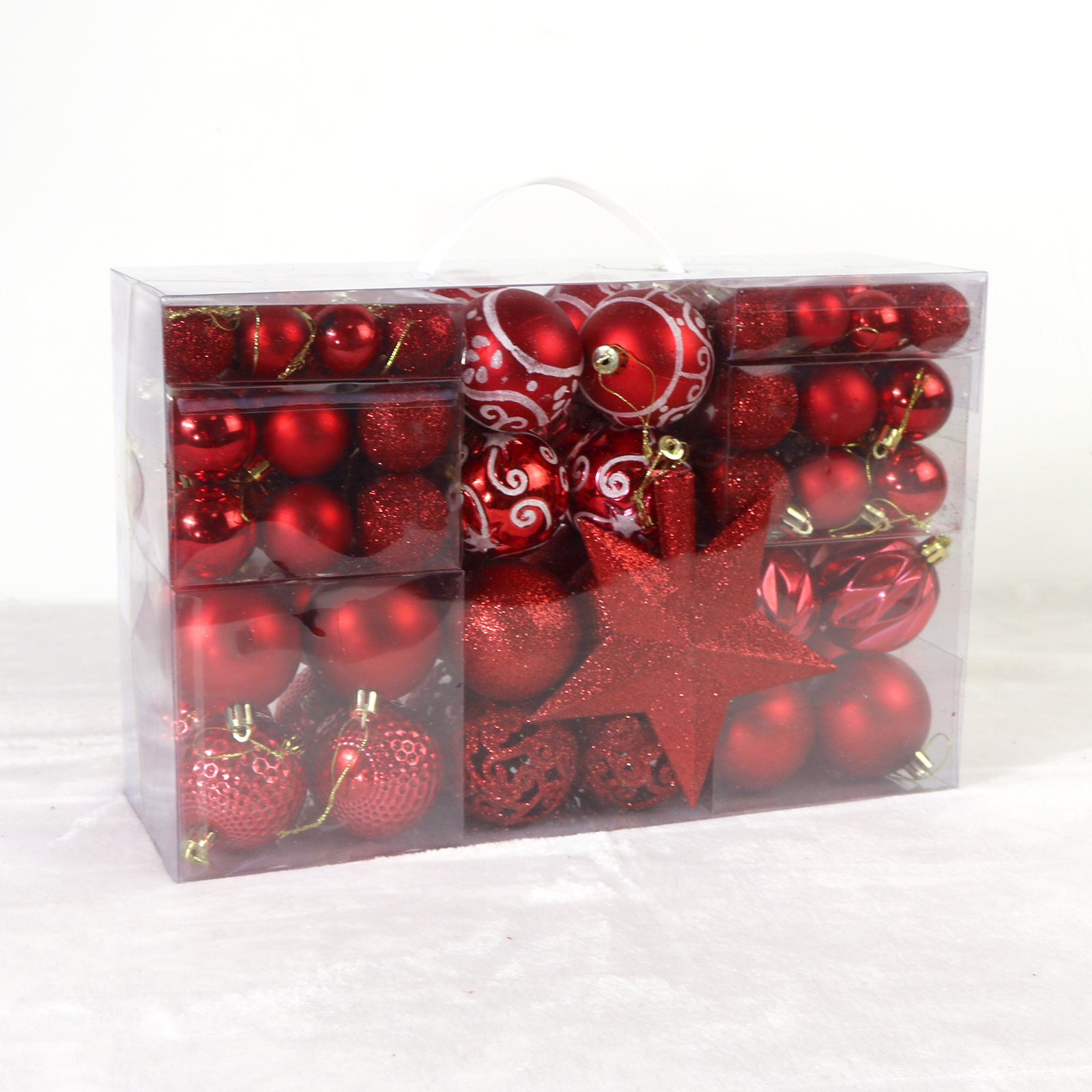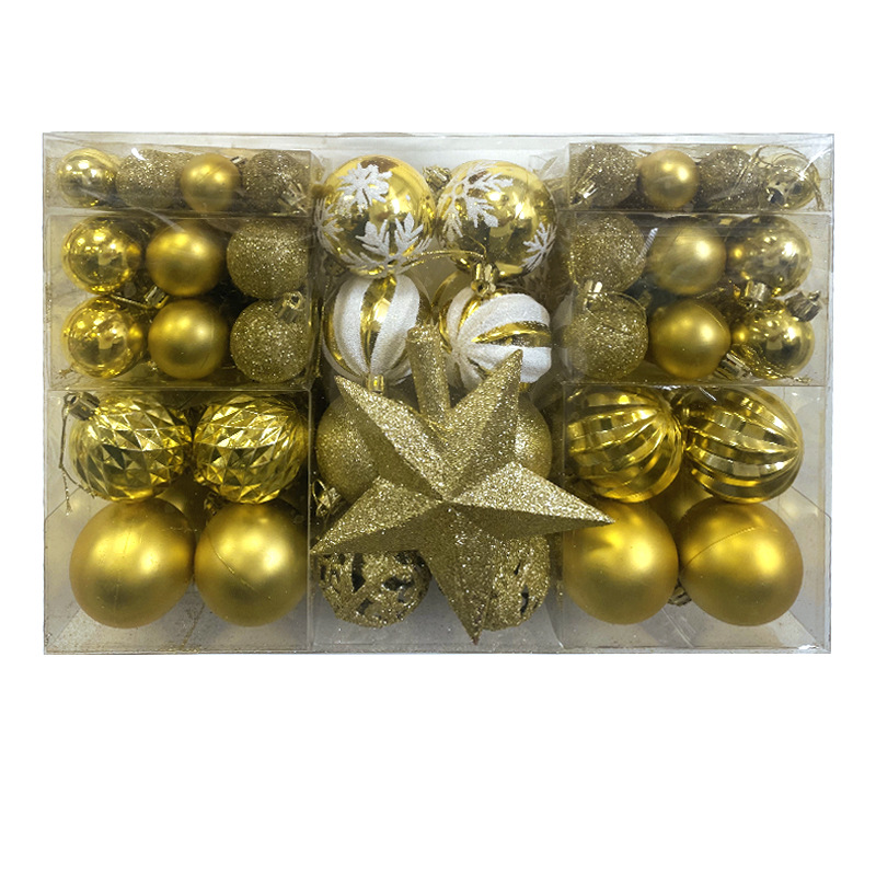 亚马逊爆款 100个多多包异形彩绘塑料圣诞球套装吊顶装饰挂件吊球