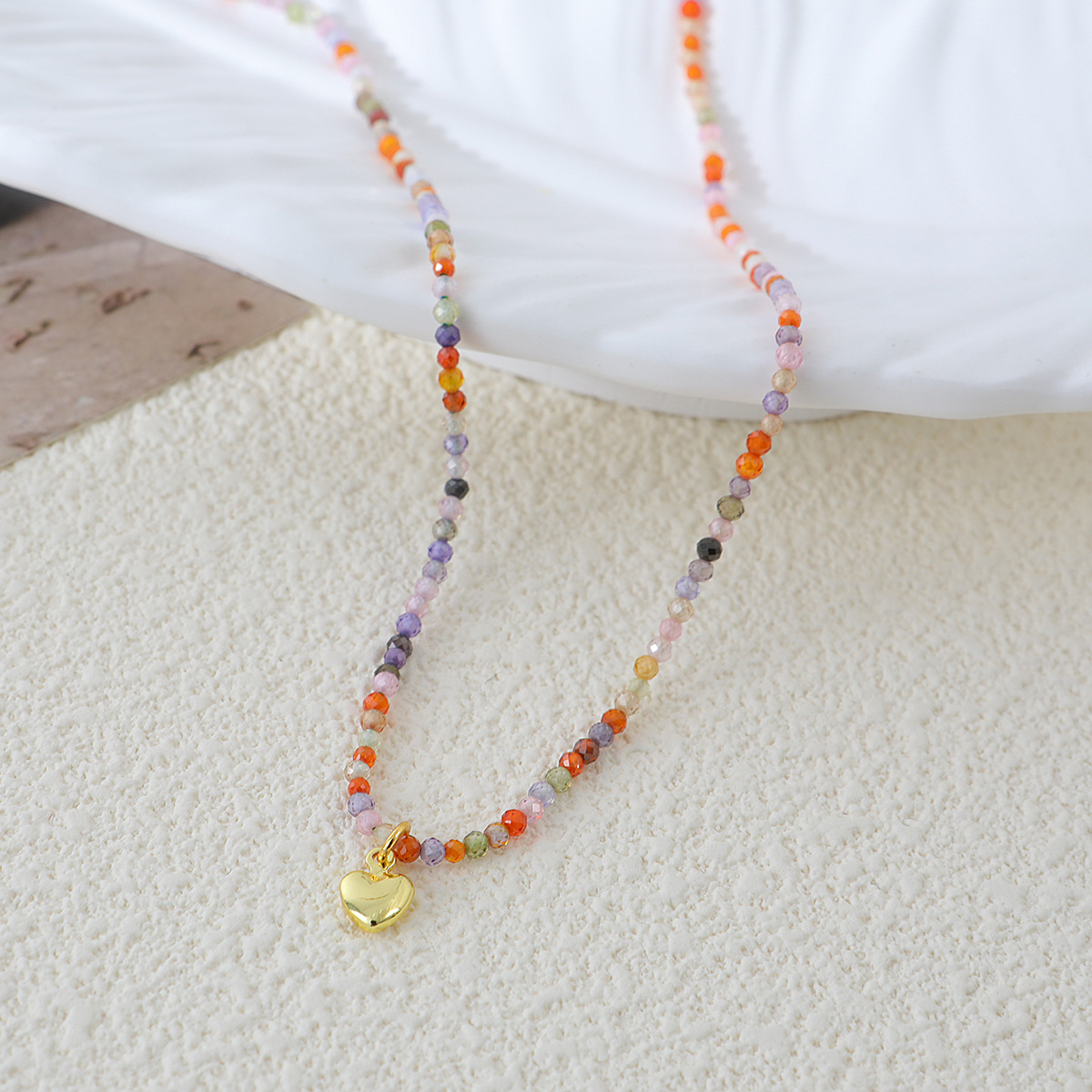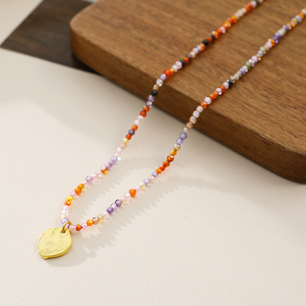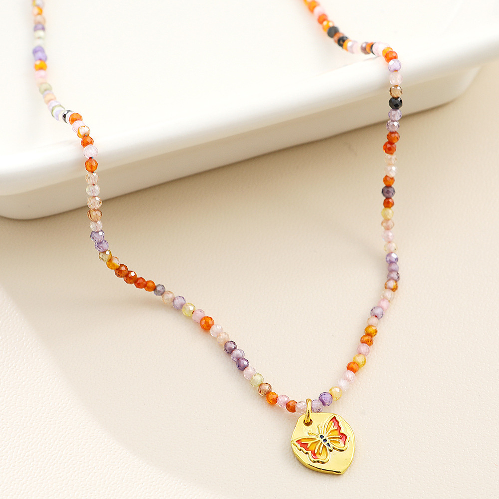 复古新中式时尚彩色天然石串珠蝴蝶项链多巴胺春夏锁骨链女百搭