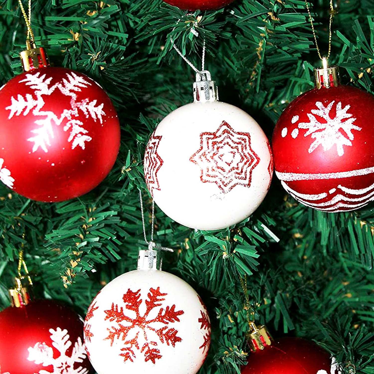 速卖通 6cm24P电镀塑料球雪花圆球彩绘圣诞球套装 圣诞节装饰挂件
