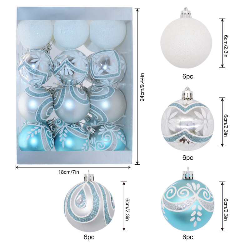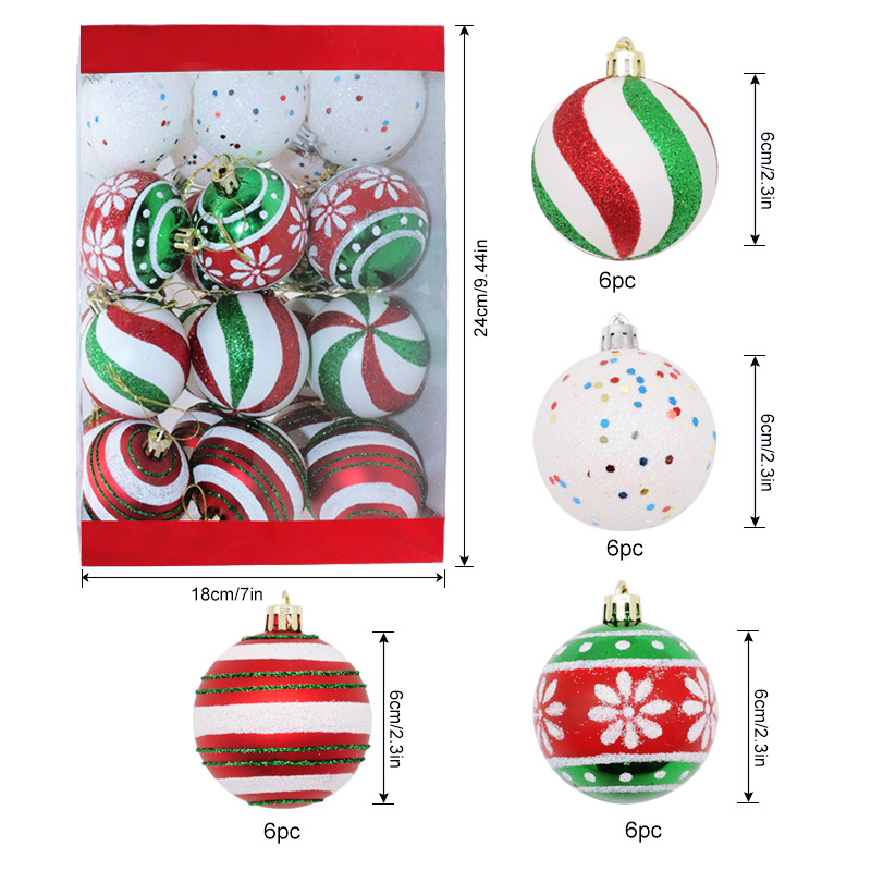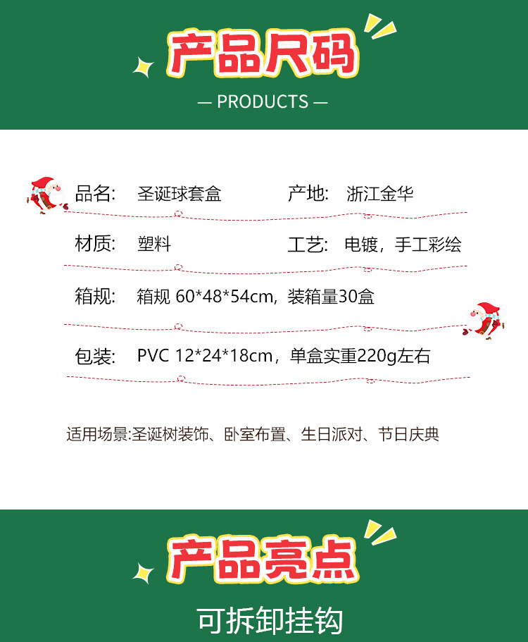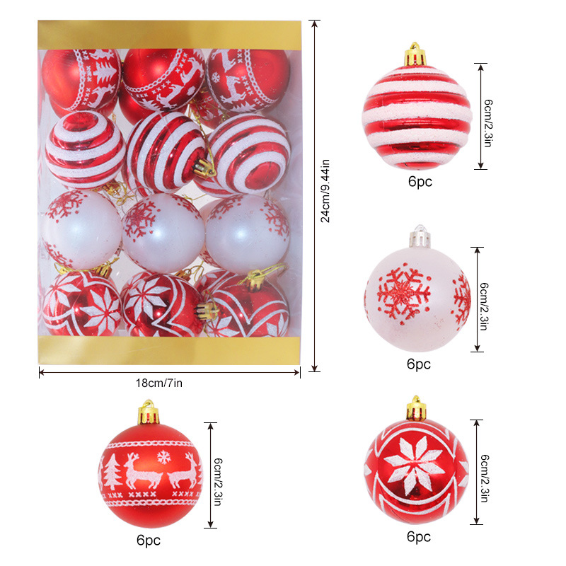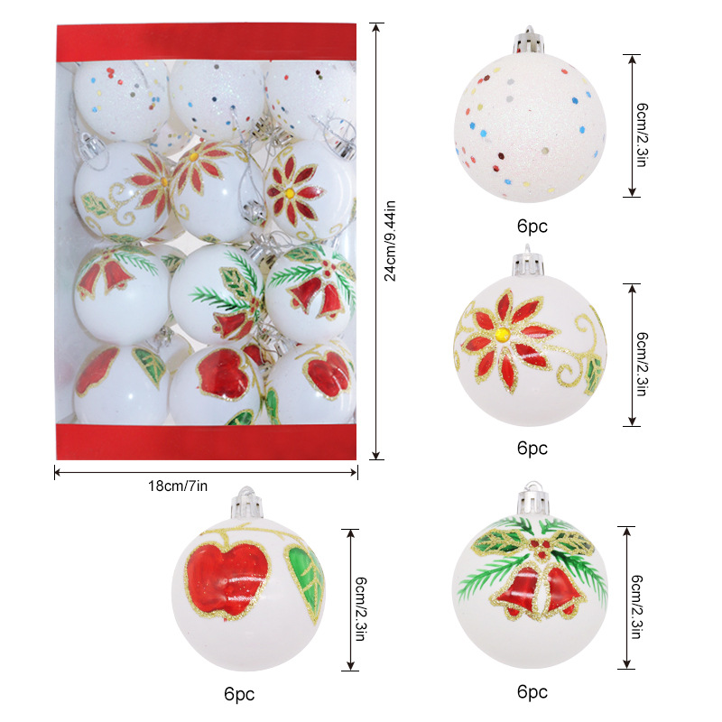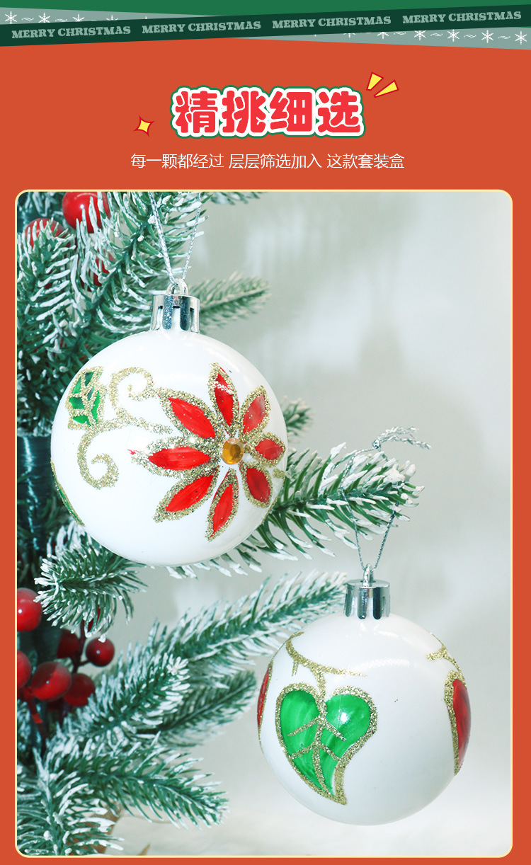 新款圣诞球6cm/24pcs圣诞节塑料球圣诞树挂件装饰品电镀球套盒