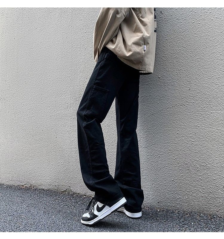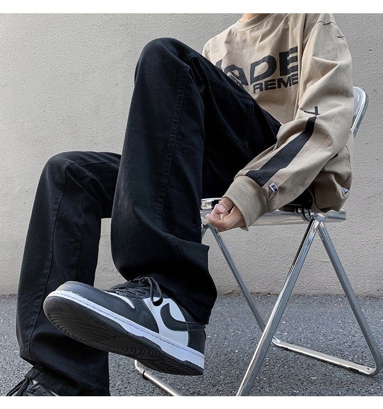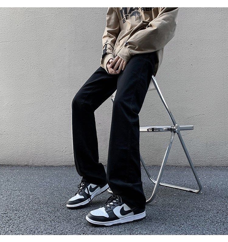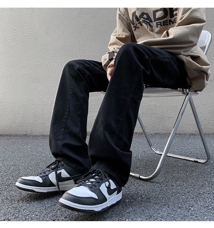 黑色微喇叭牛仔裤男宽松直筒美式高街vibe阔腿裤男潮流休闲拖地裤