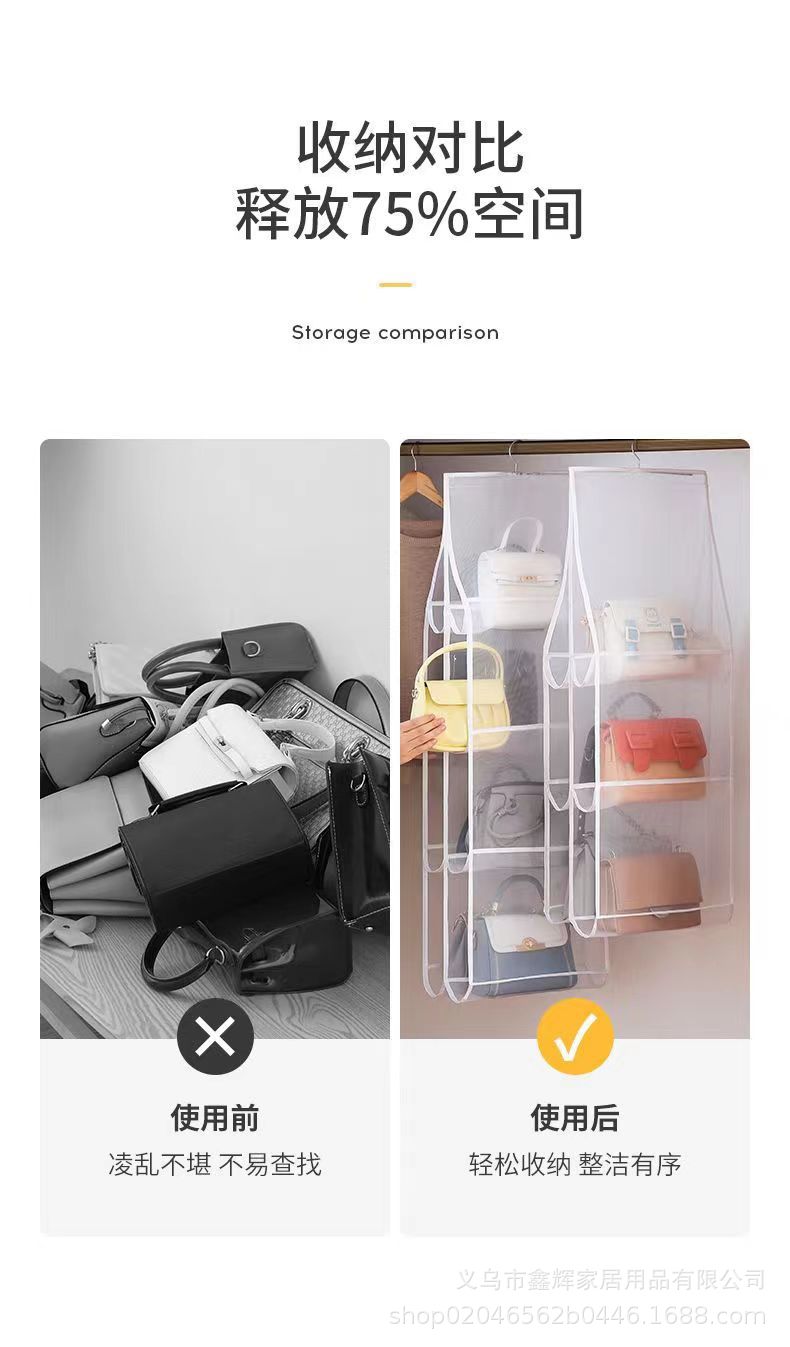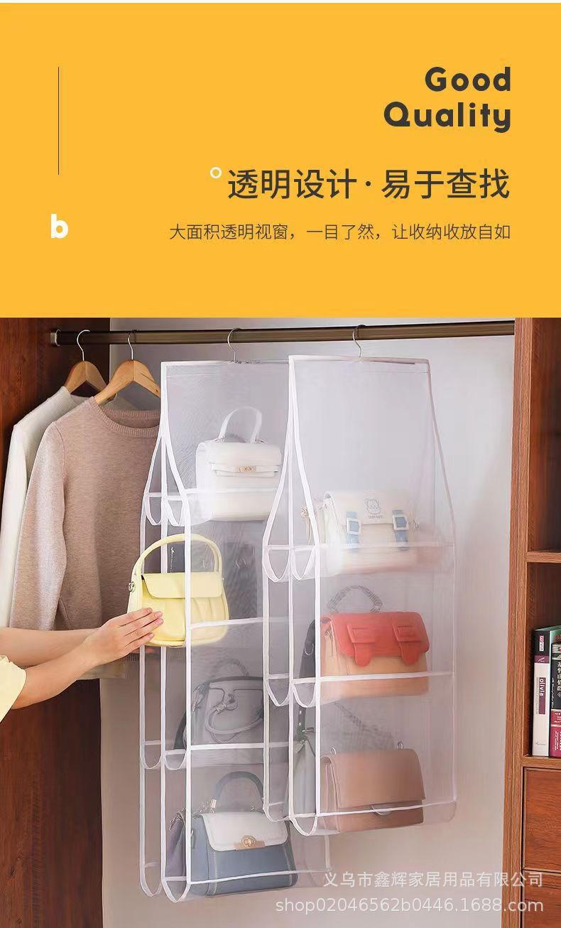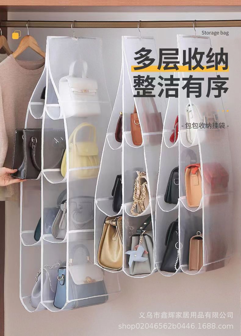 包包收纳挂袋防潮悬挂袋衣柜墙挂式布艺收纳袋双面宿舍收纳置物架