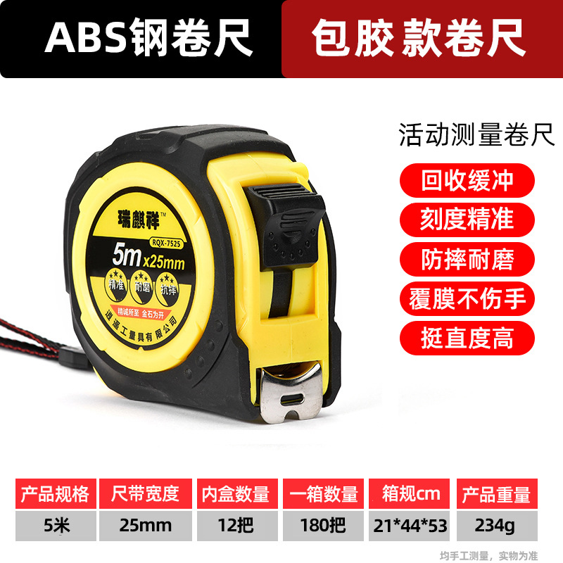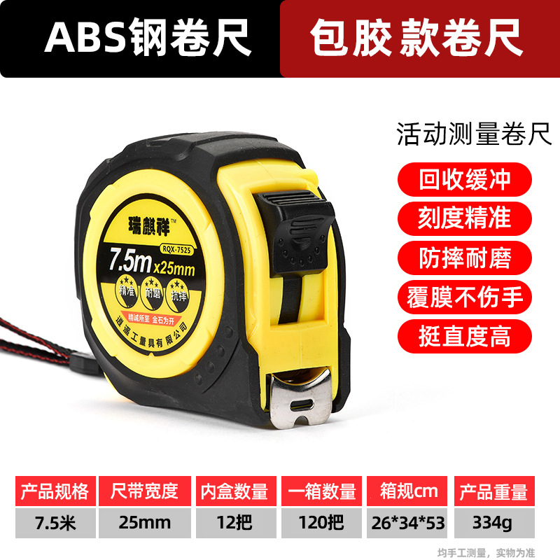 厂家批发不锈钢卷尺5米耐磨防摔卷尺7.5米10米工地米尺盒尺圈尺