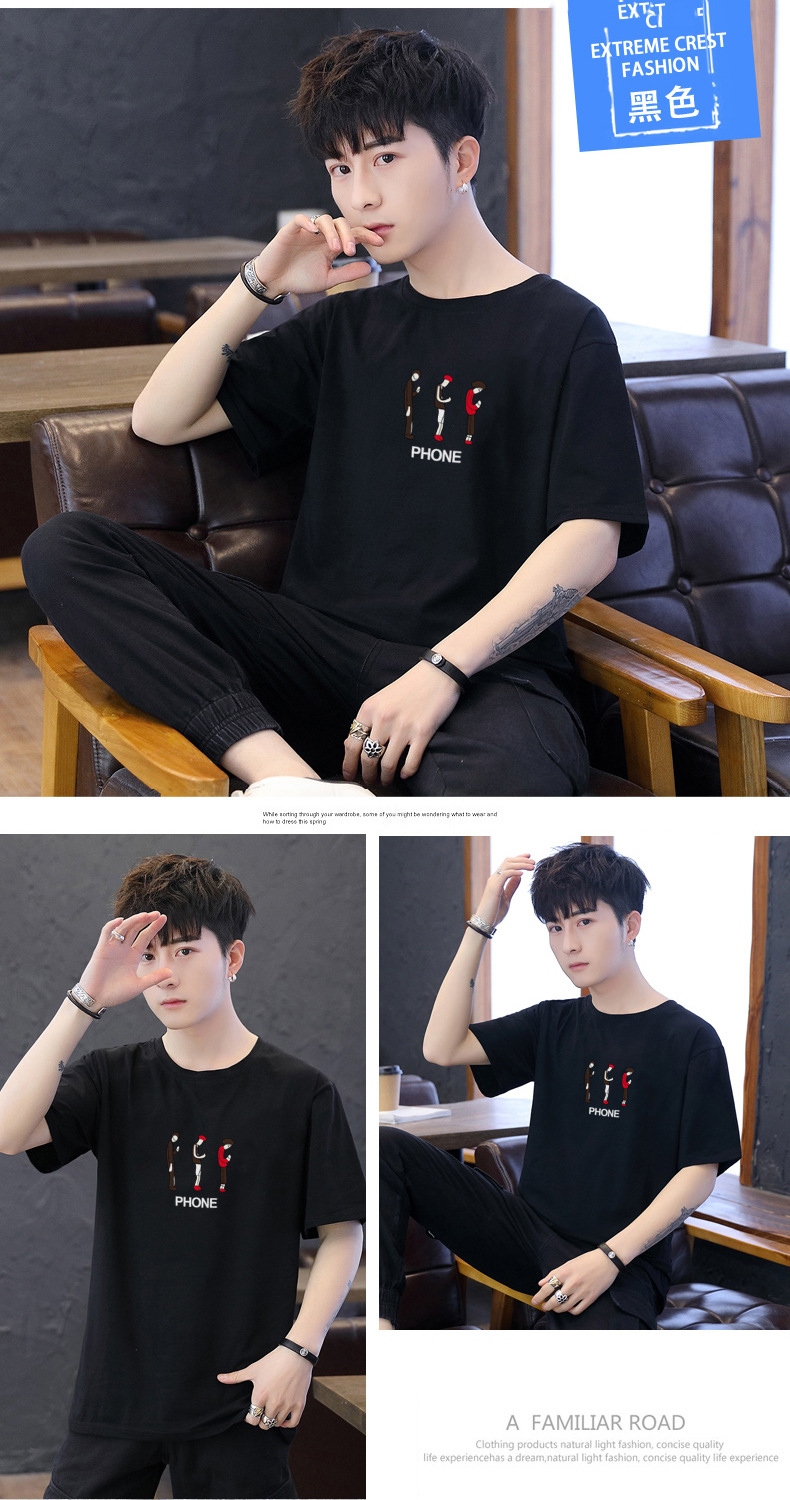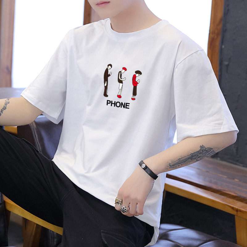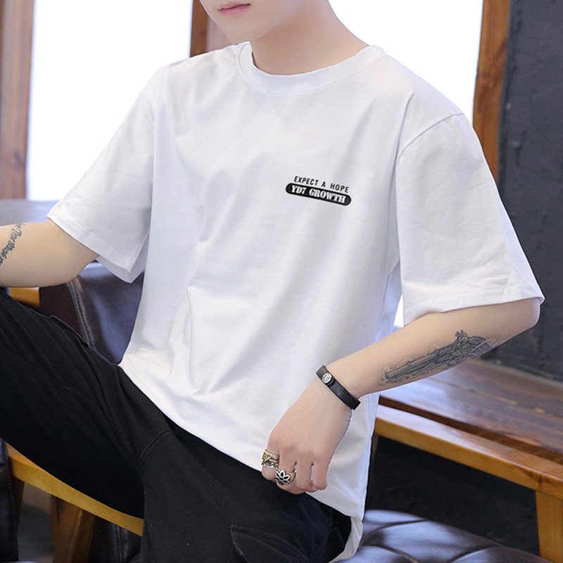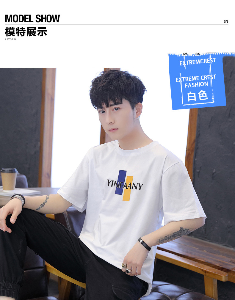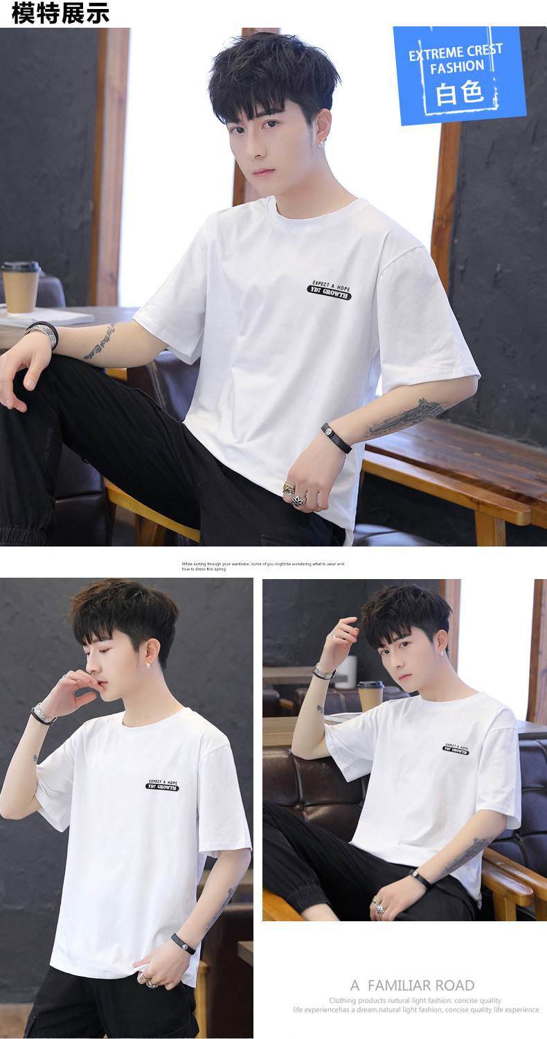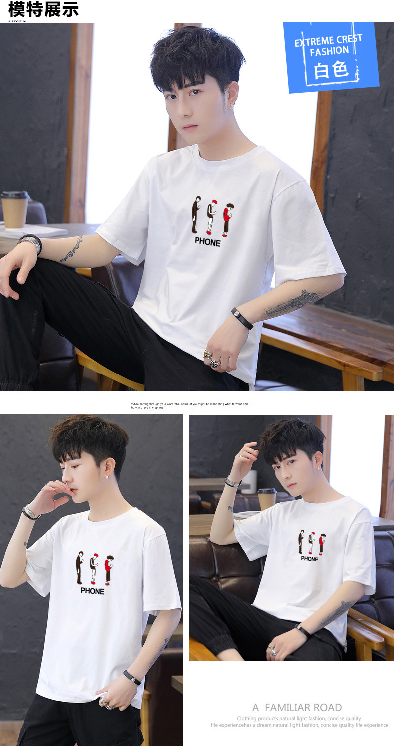 短袖男士夏季t恤圆领印花韩版潮流修身半袖上衣白色打底体 恤服装