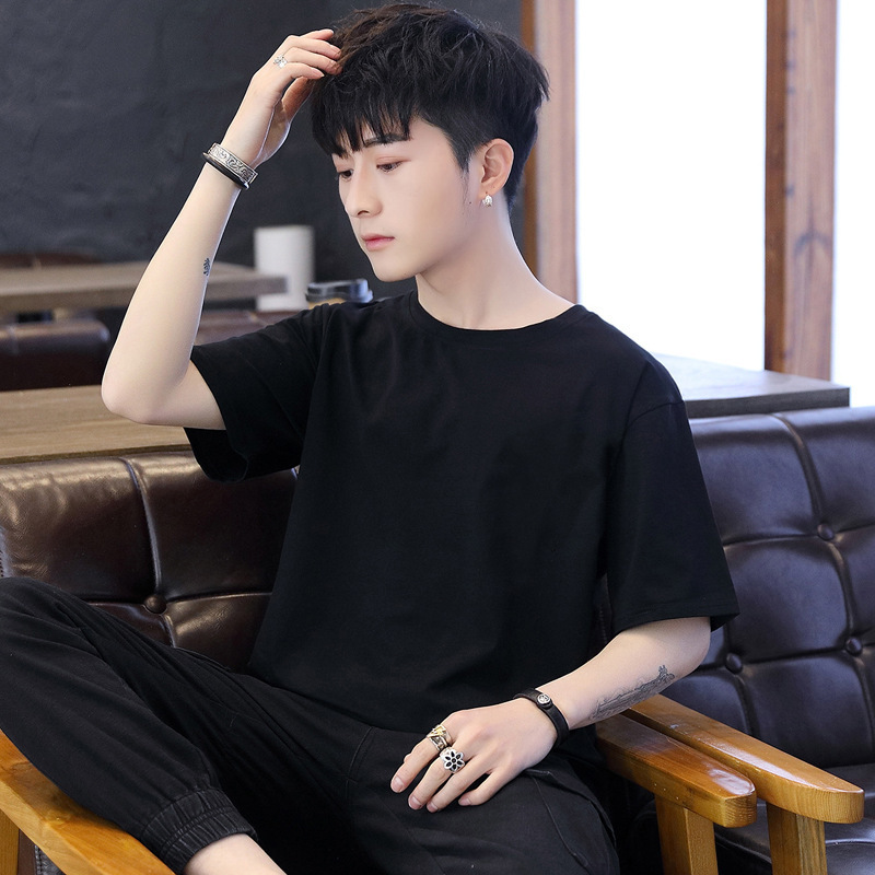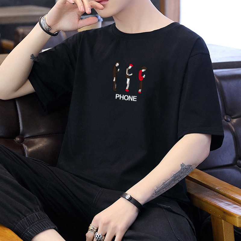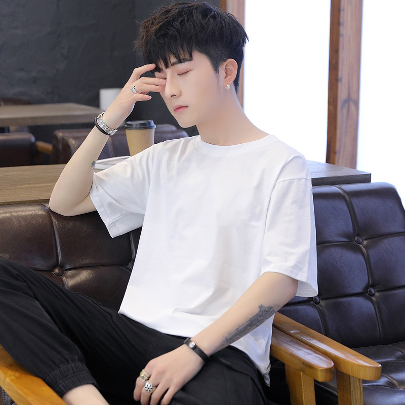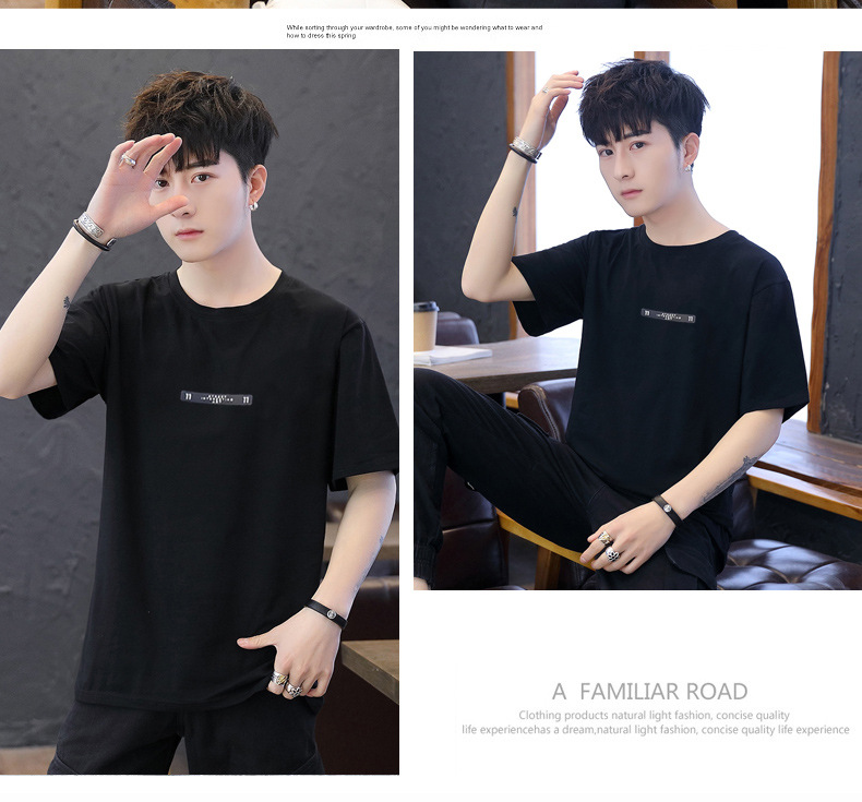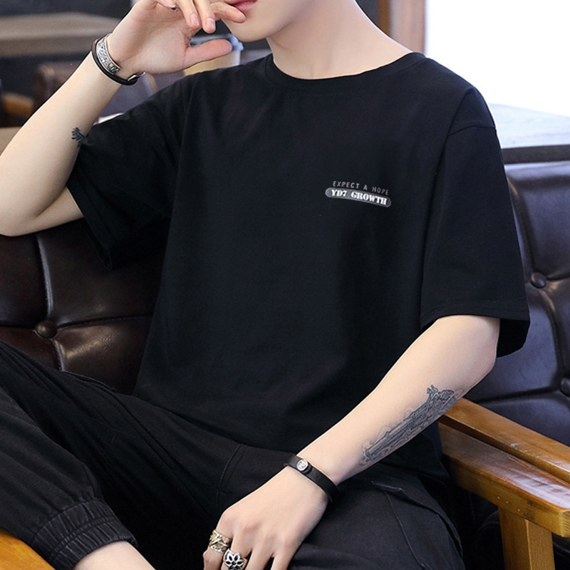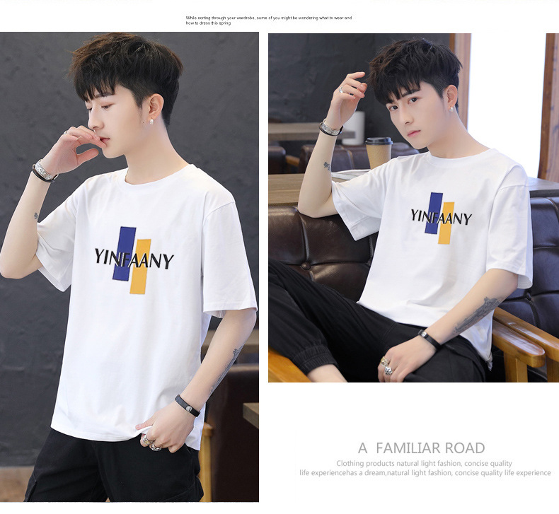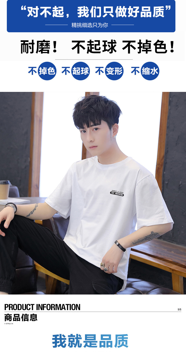 短袖男士夏季t恤圆领印花韩版潮流修身半袖上衣白色打底体 恤服装