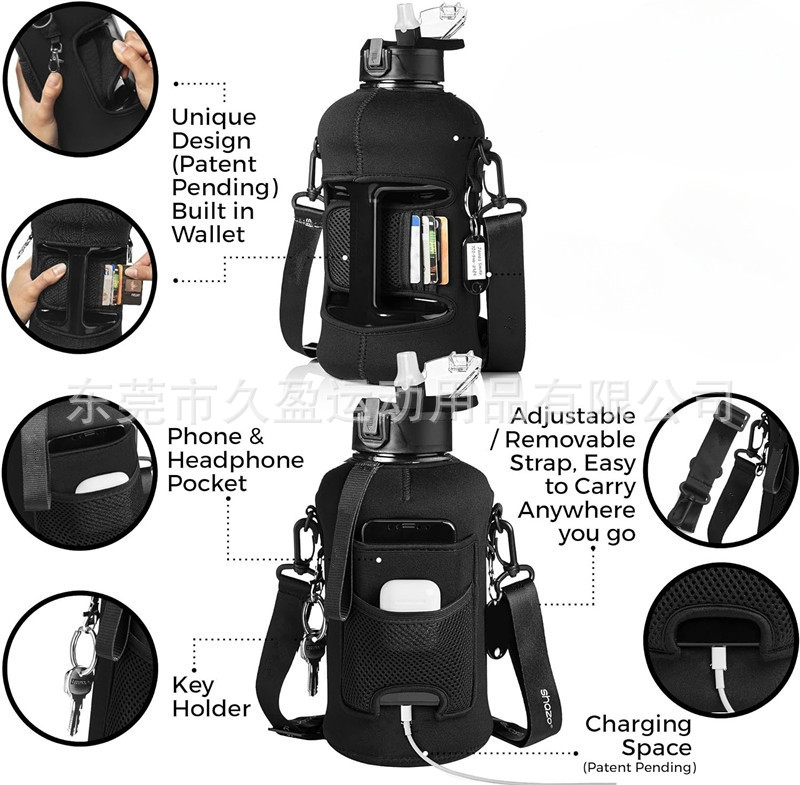 半加仑2.2 升运动水壶配件杯套内置存储套瓶刷手机袋 大水壶壶套