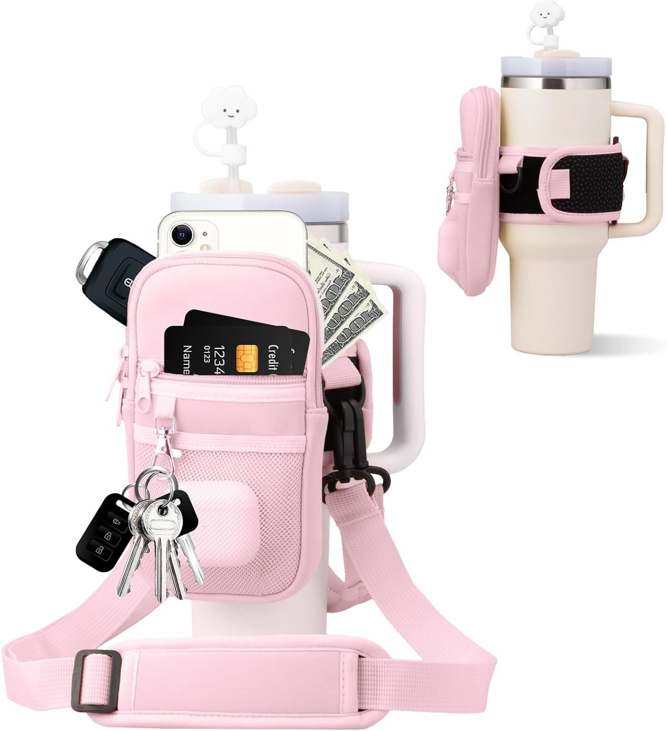 水壶袋扣 适用于40盎司/30盎司玻璃杯水壶袋水壶携带袋带有耳机口