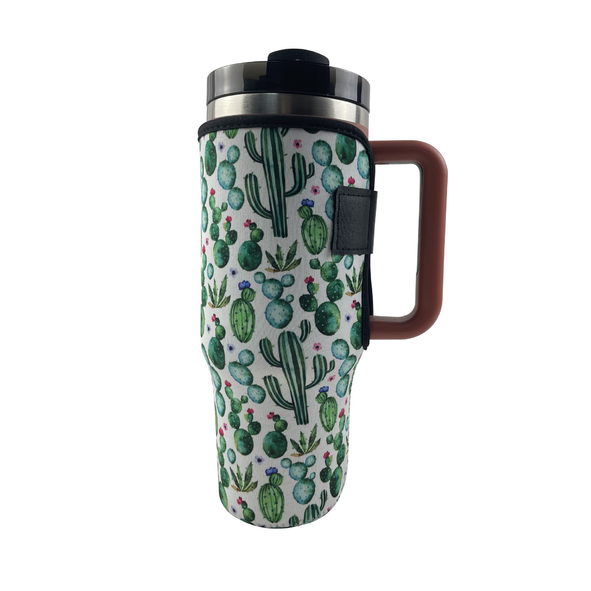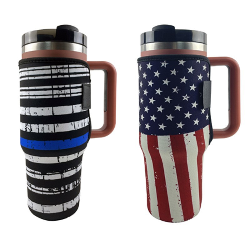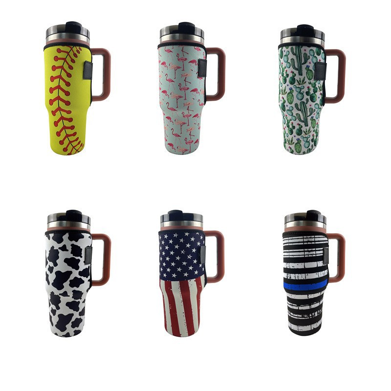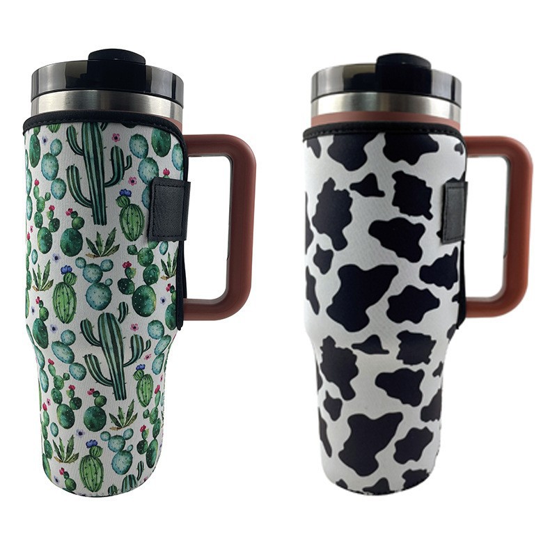 跨境新款隔热亚马逊手柄冰霸杯套渐变豹纹40OZ不锈钢杯汽车杯袋