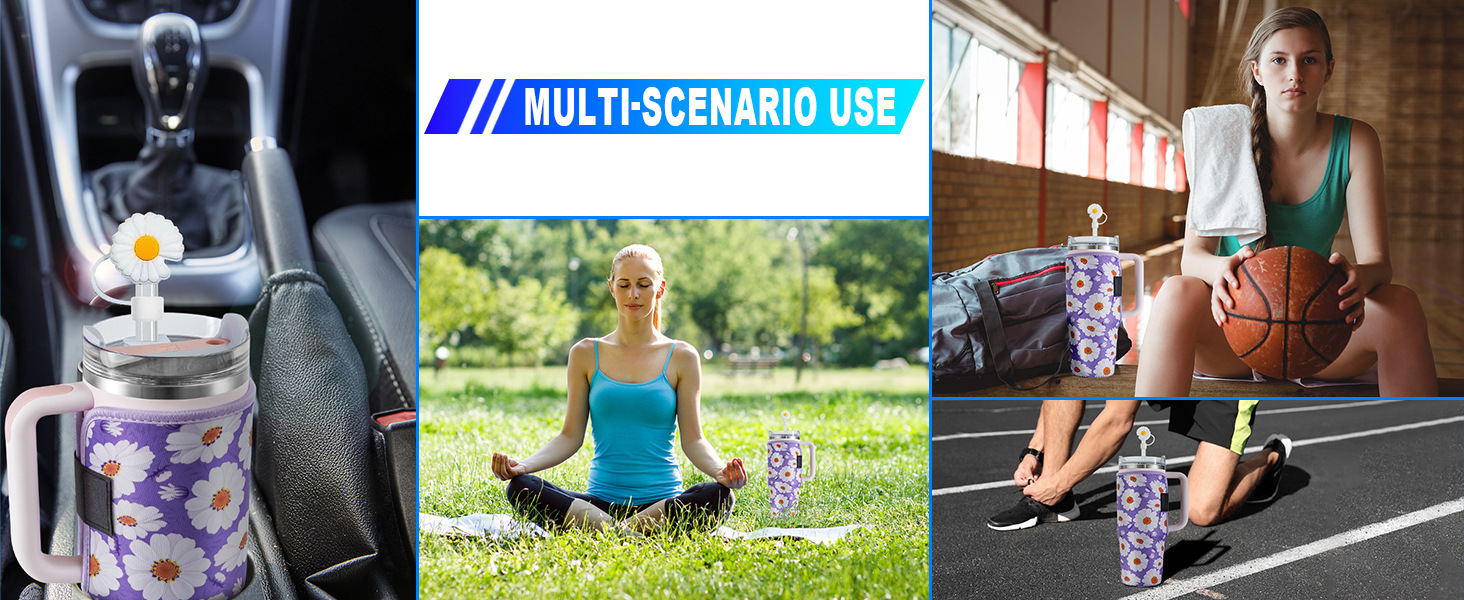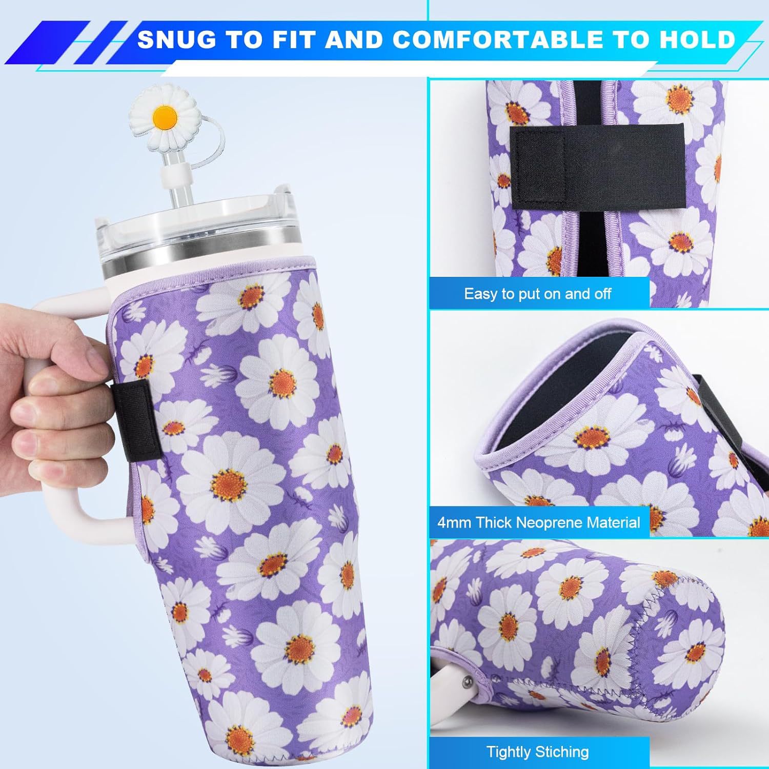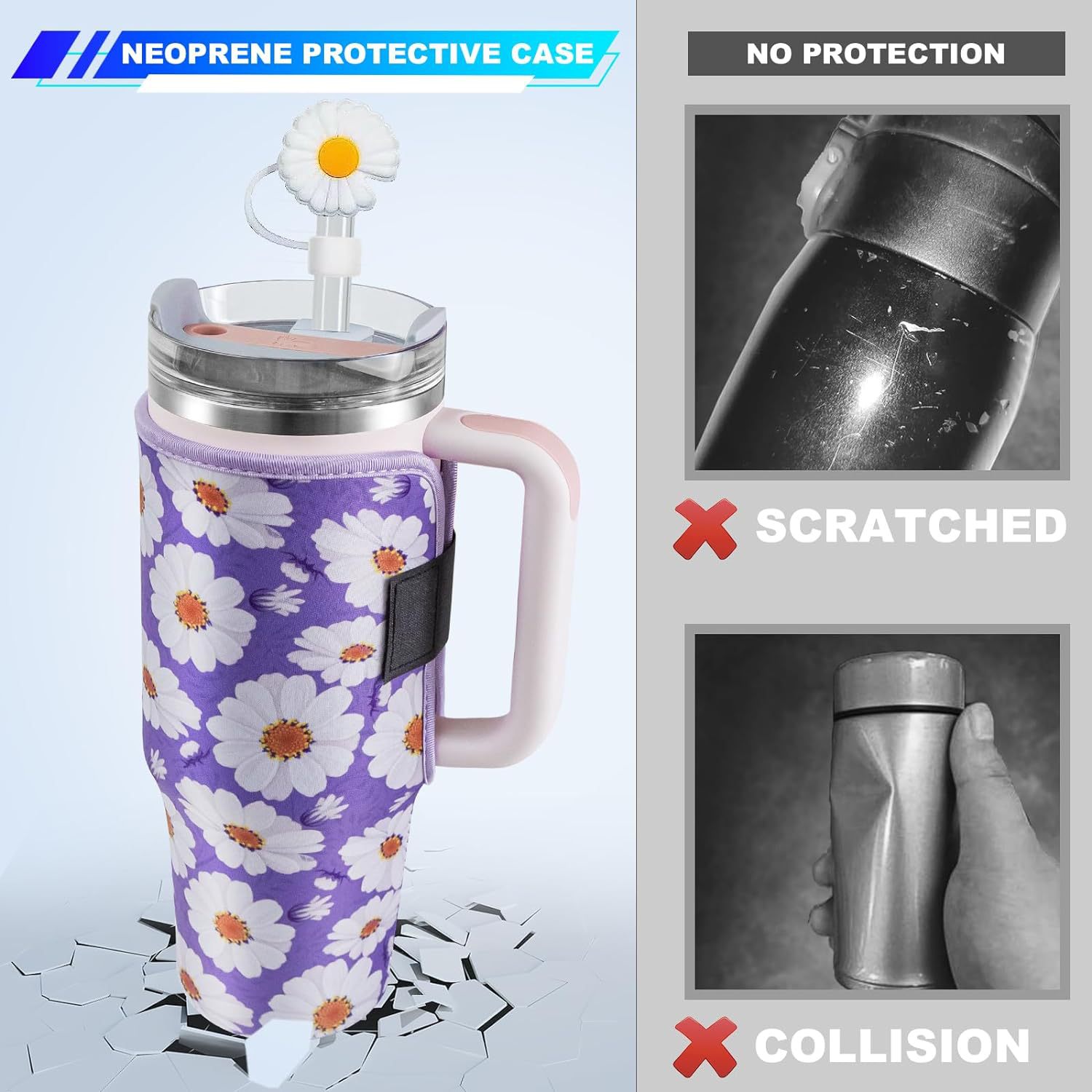 跨境新款隔热亚马逊手柄冰霸杯套渐变豹纹40OZ不锈钢杯汽车杯袋