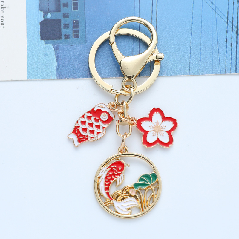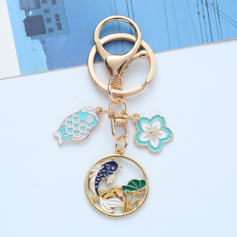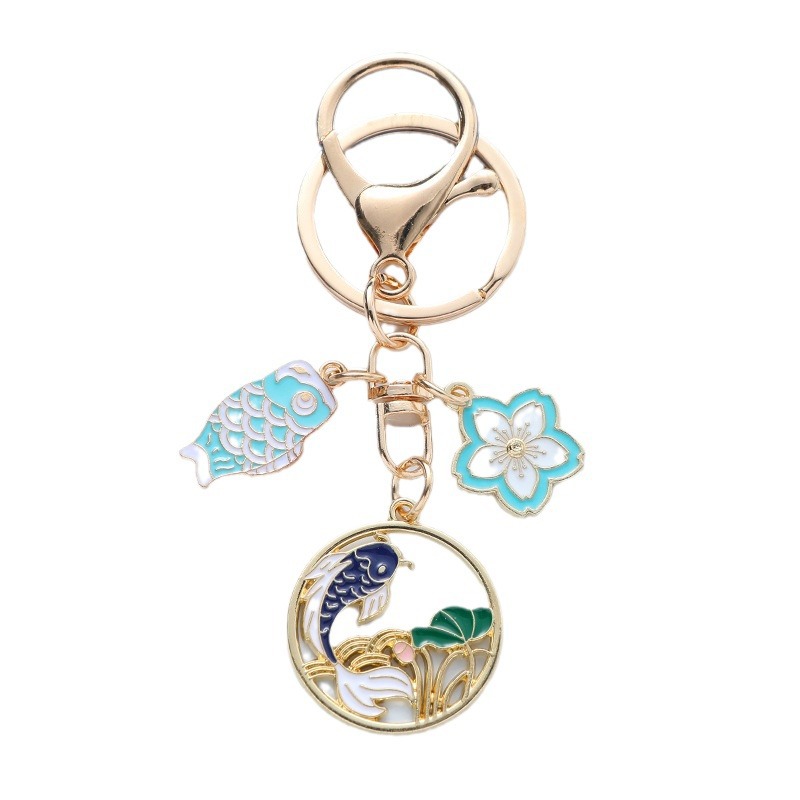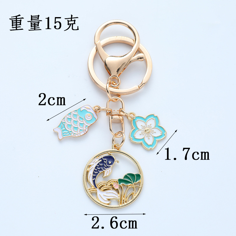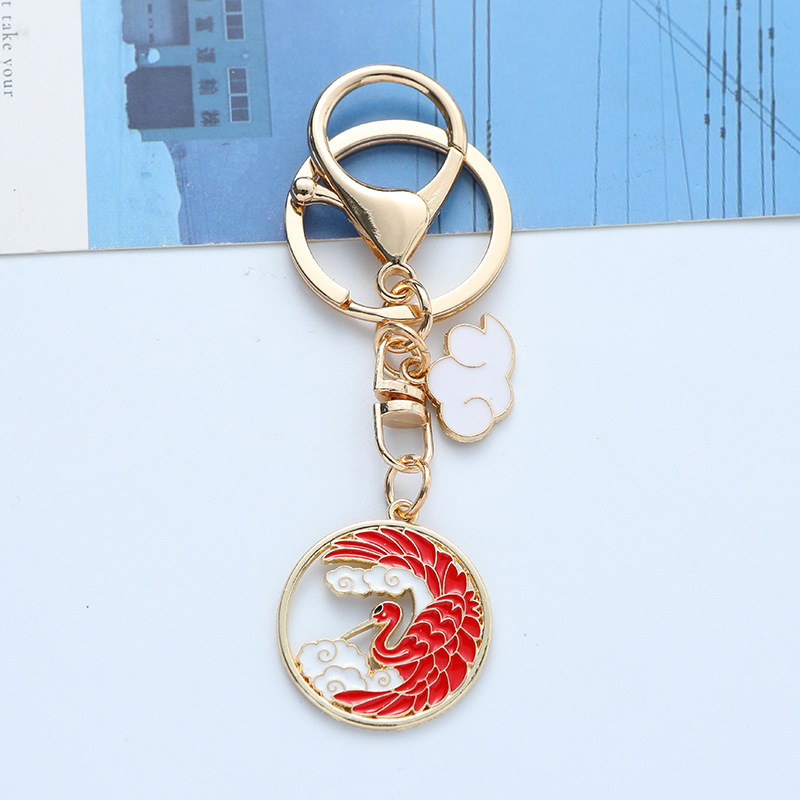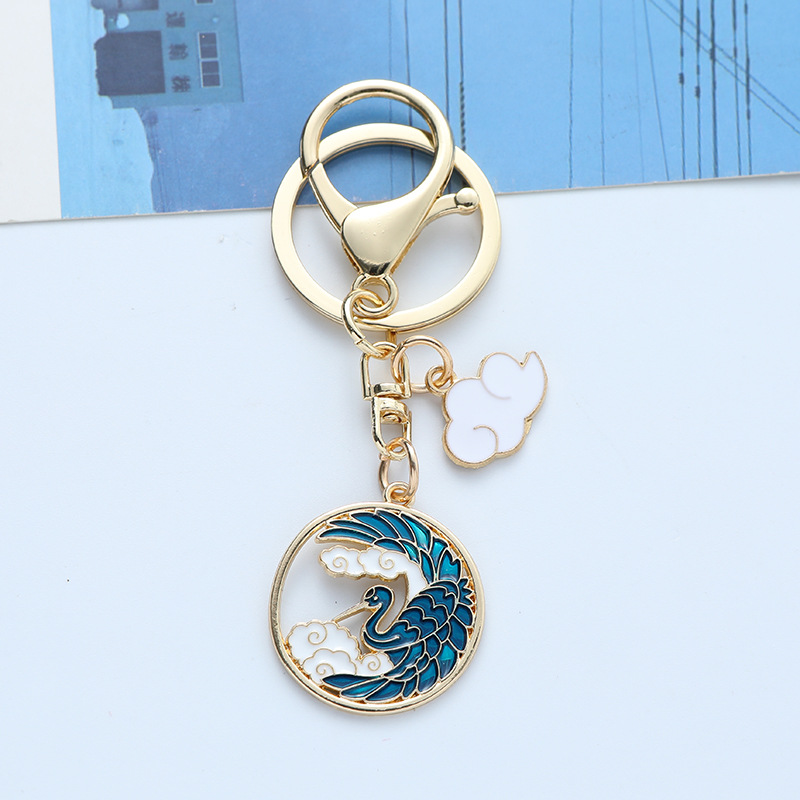 中国古风锦鲤钥匙扣挂件云朵仙鹤神鹿金属钥匙圈情侣闺蜜包包挂饰