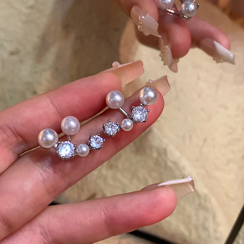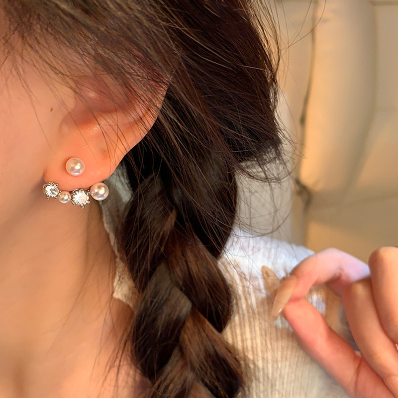 韩版仿珍珠耳钉2024年潮新款爆款后挂式耳饰女独特耳环精致小耳坠