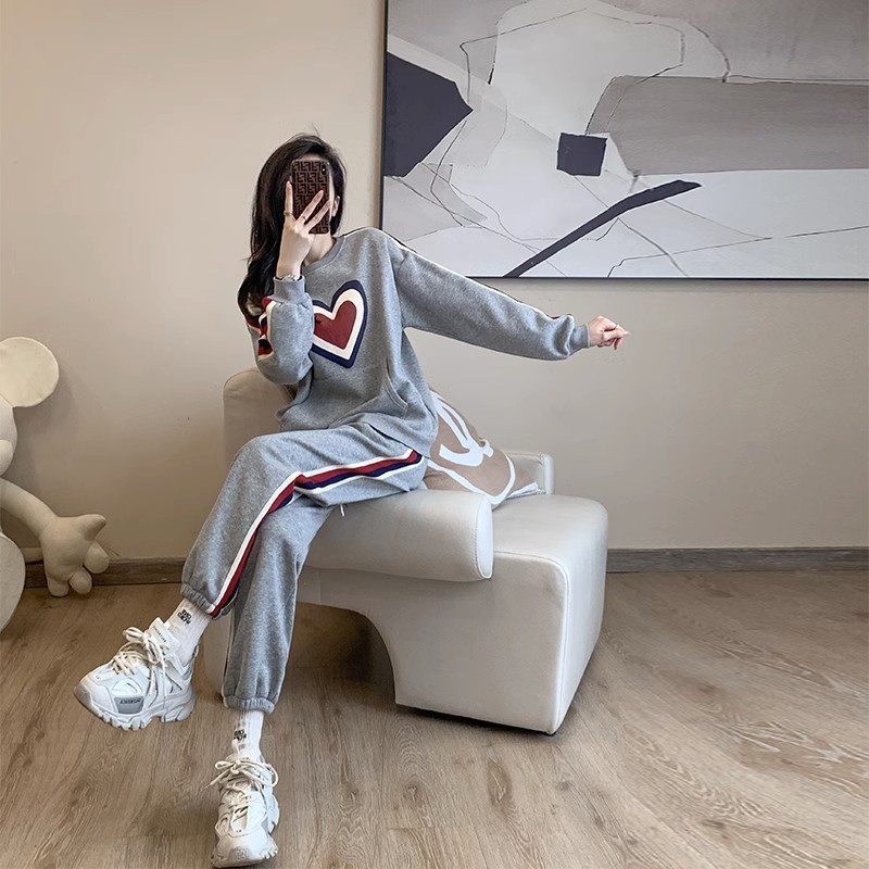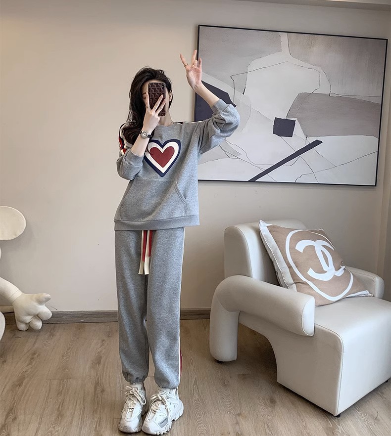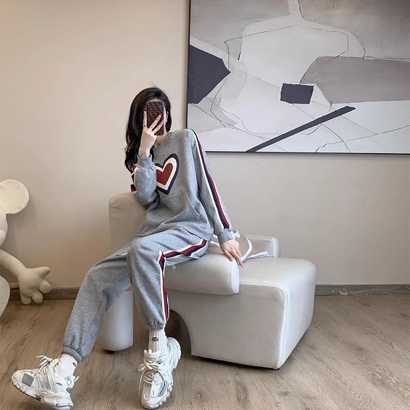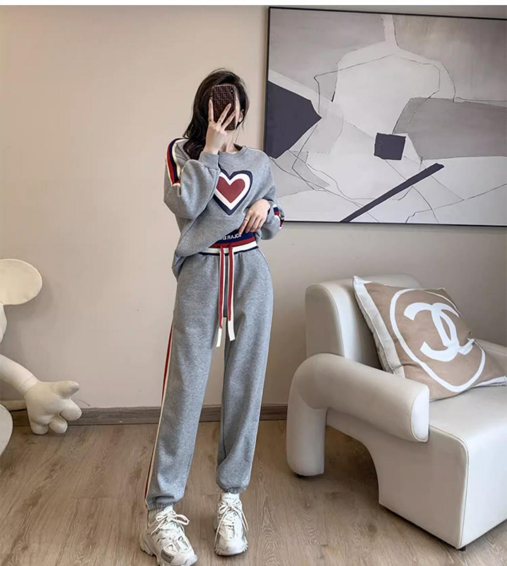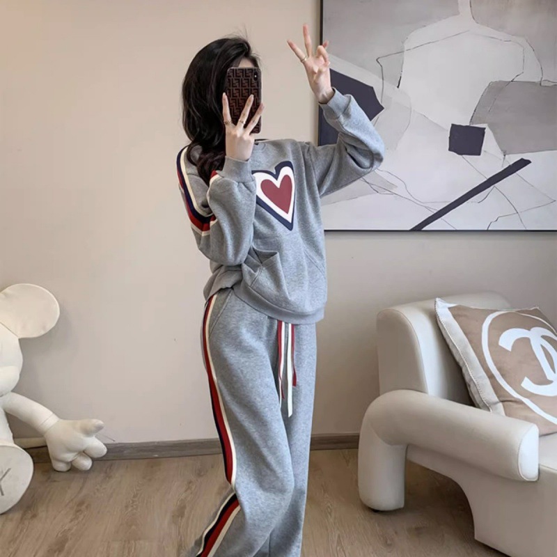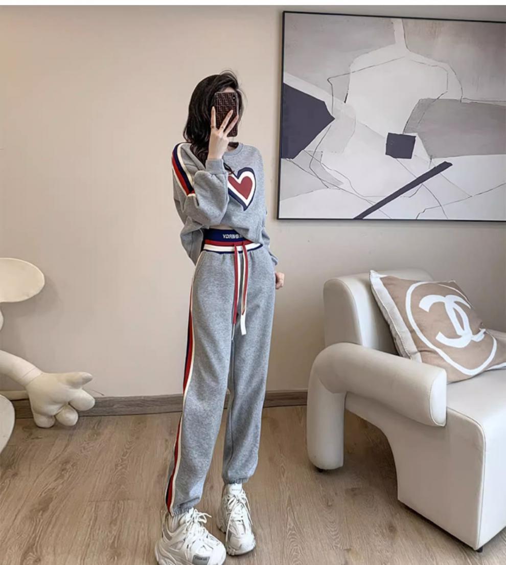 运动服套装女秋冬加绒休闲时尚新款时尚减龄炸街卫衣两件套洋气棉