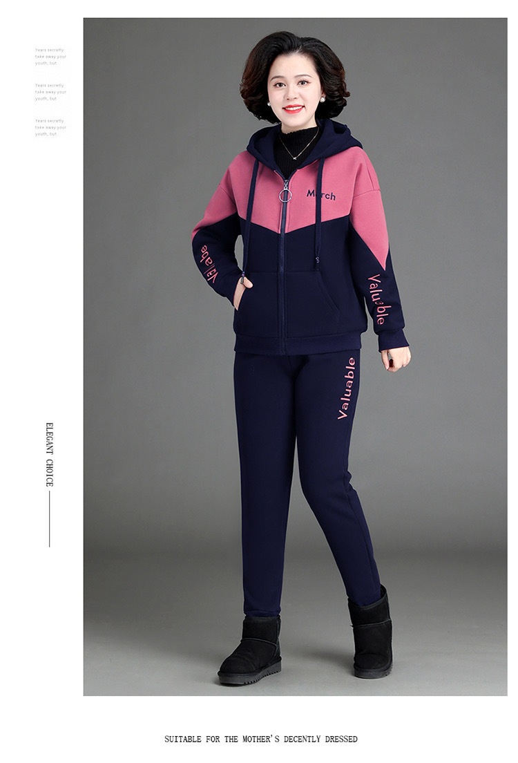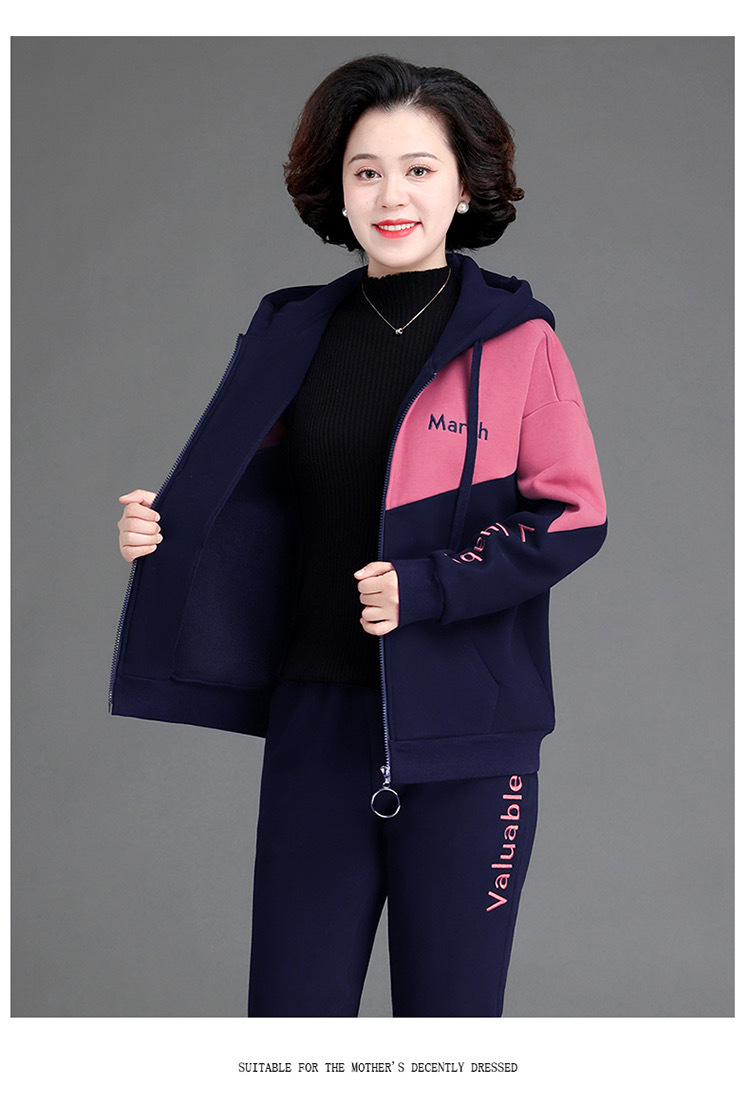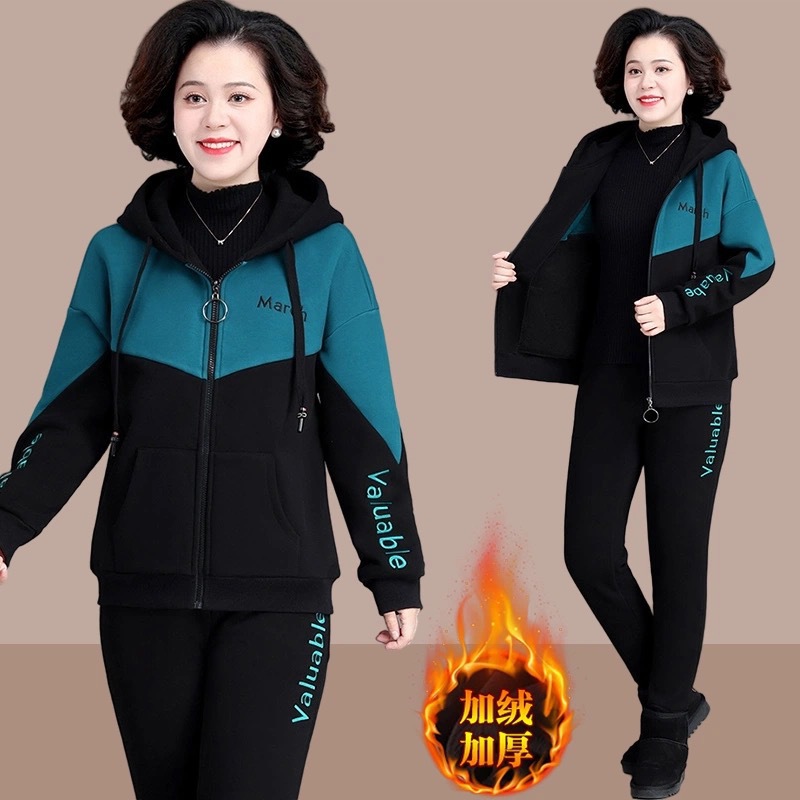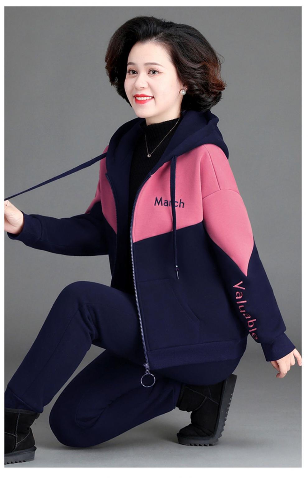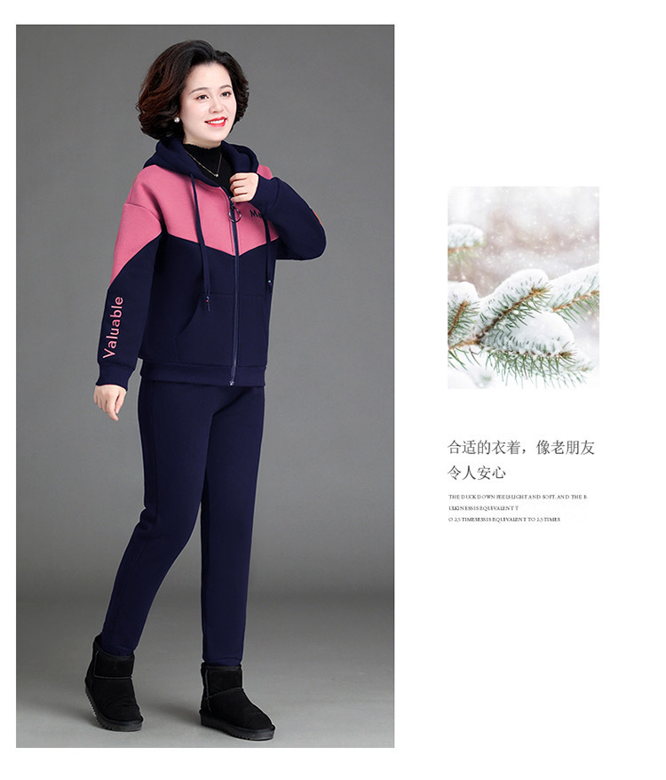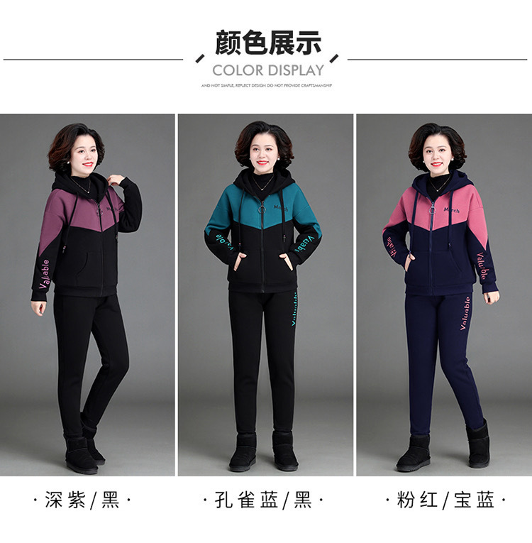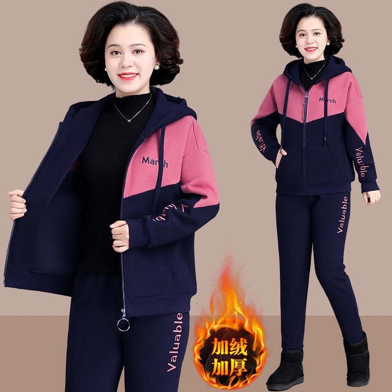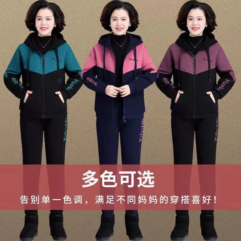 中老年加绒加厚运动套装女秋冬中年妈妈装洋气外套冬装休闲两件套