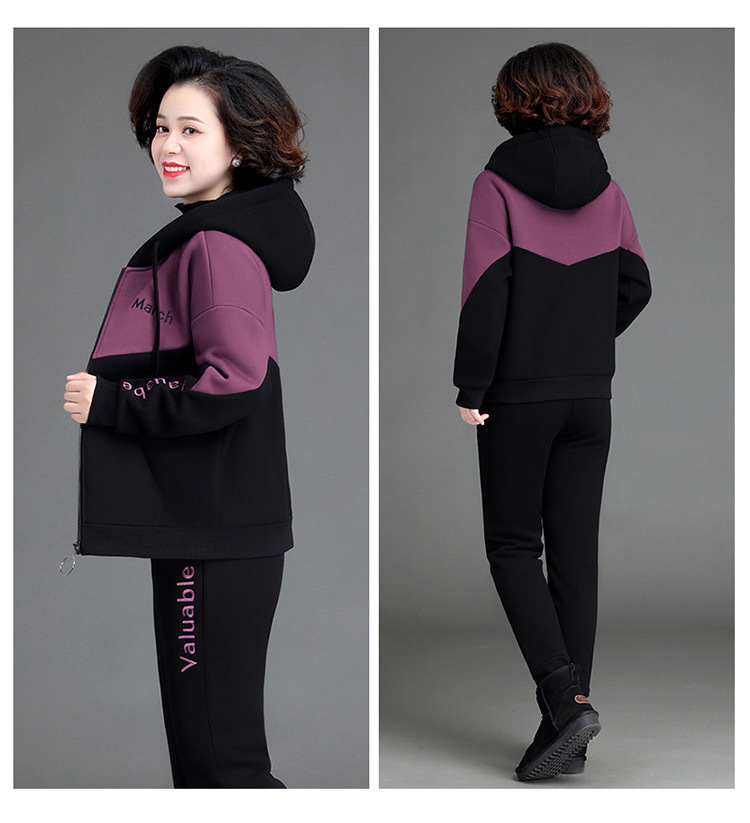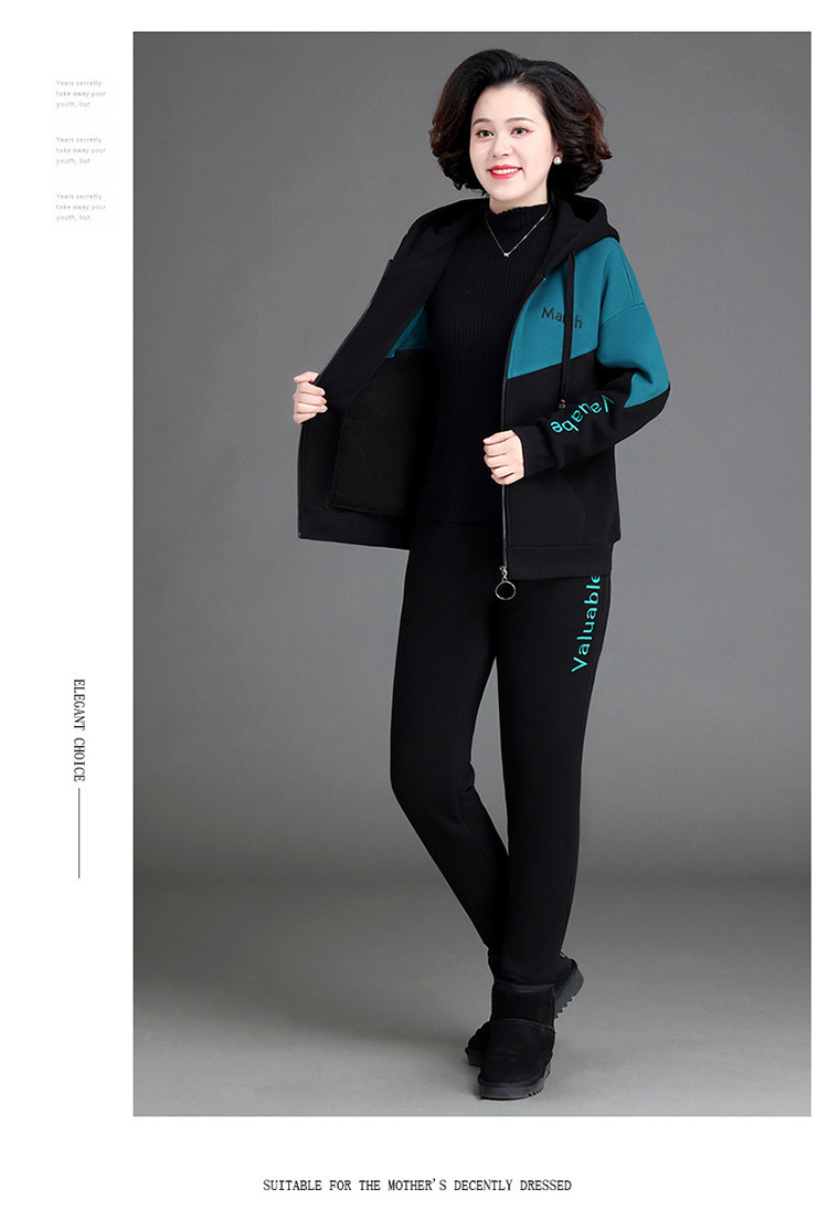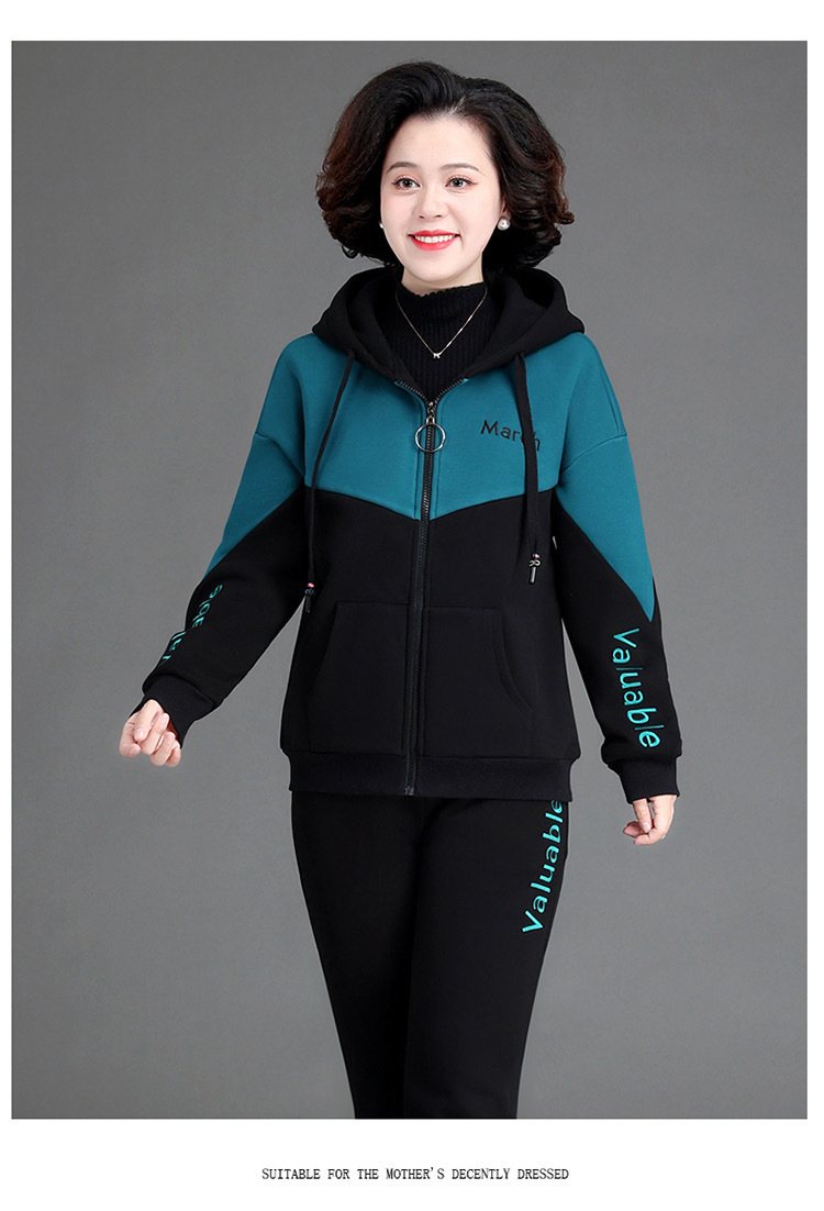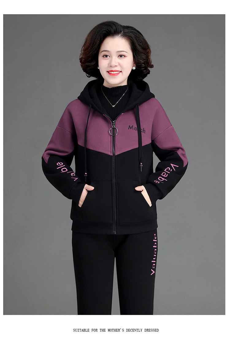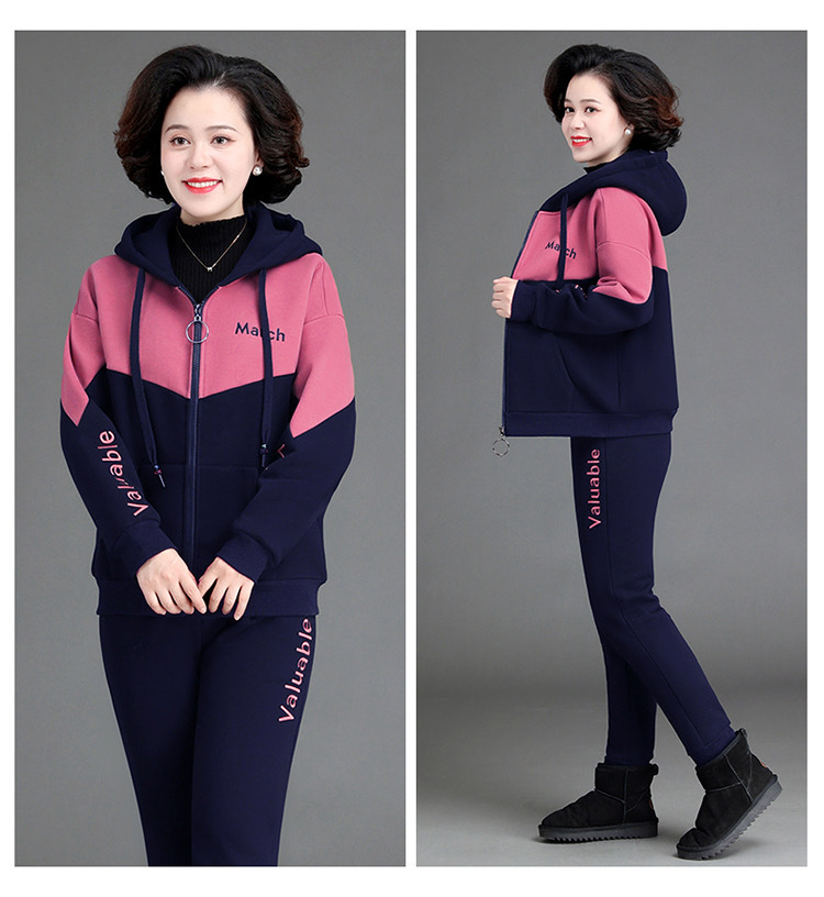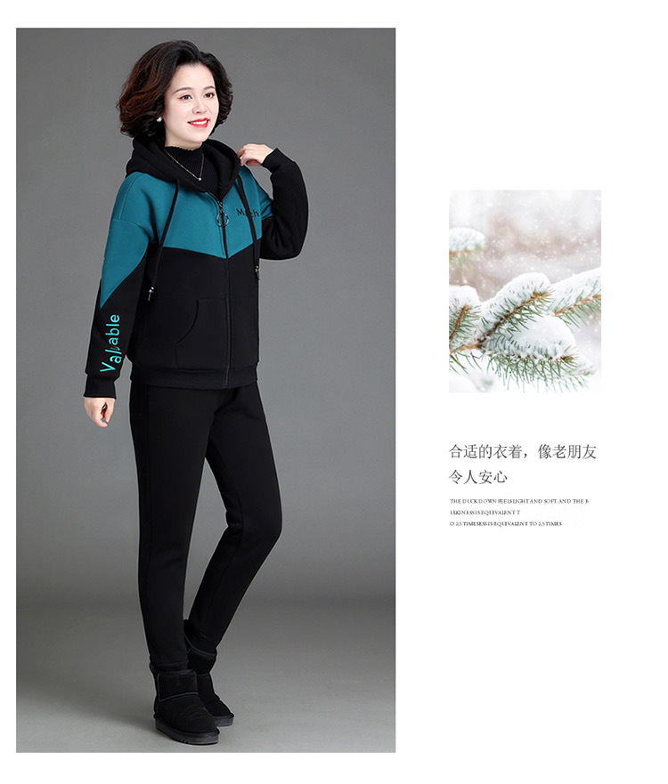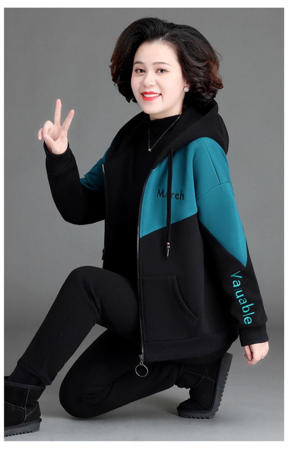 中老年加绒加厚运动套装女秋冬中年妈妈装洋气外套冬装休闲两件套