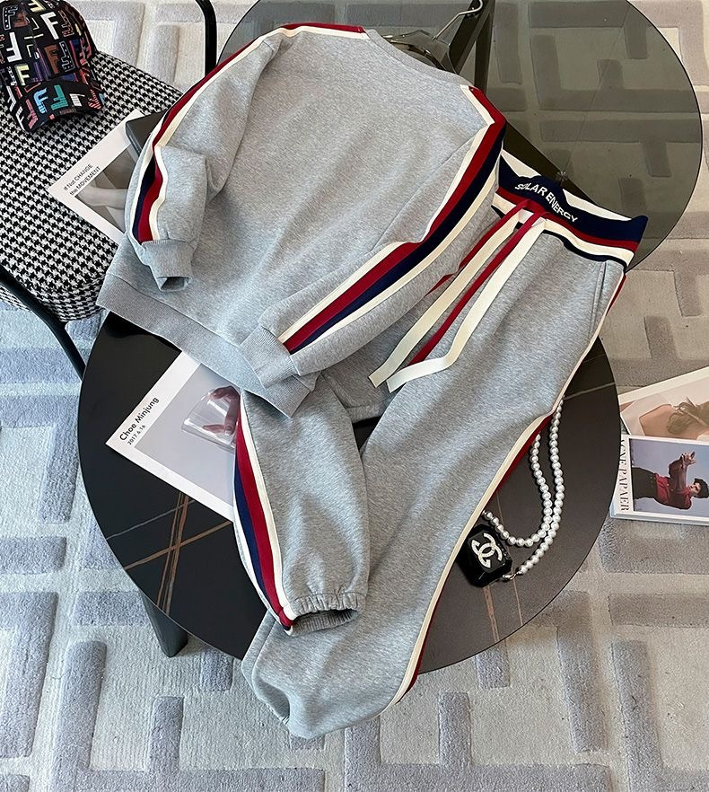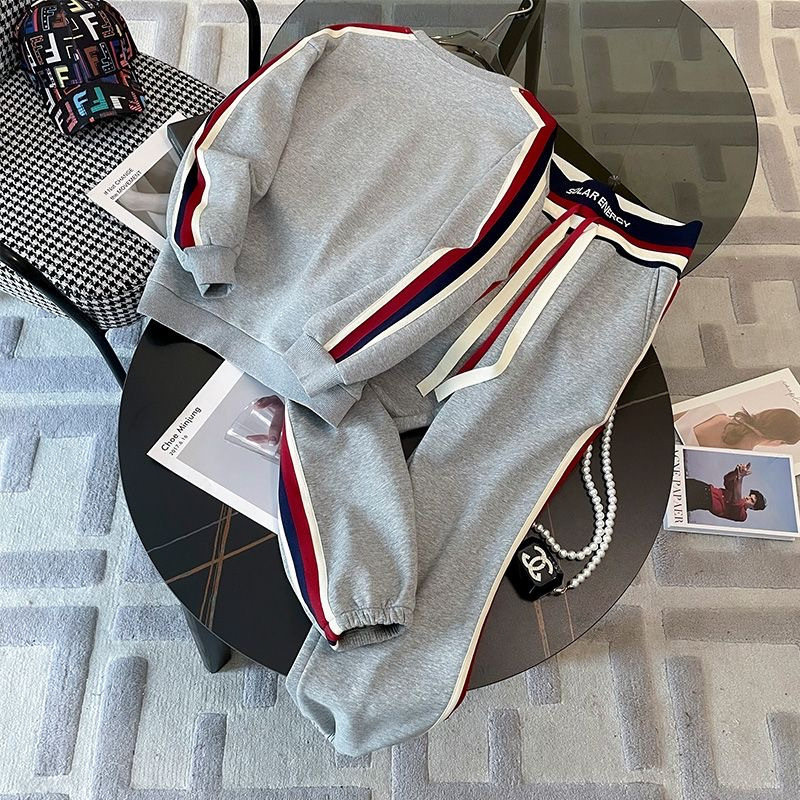 欧货运动服套装女秋冬加绒休闲时尚新款时尚减龄炸街卫衣两件套潮