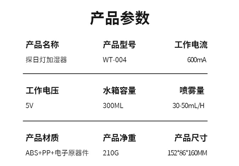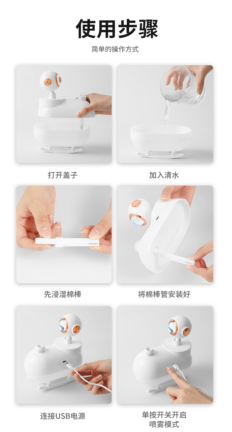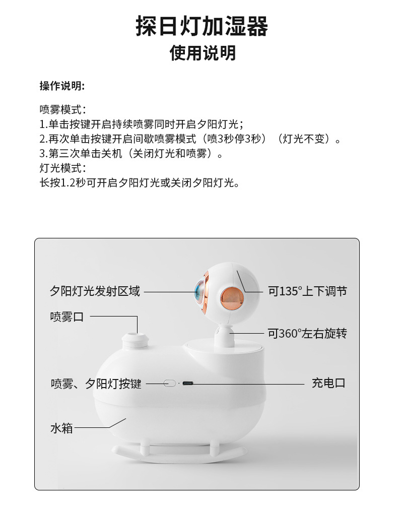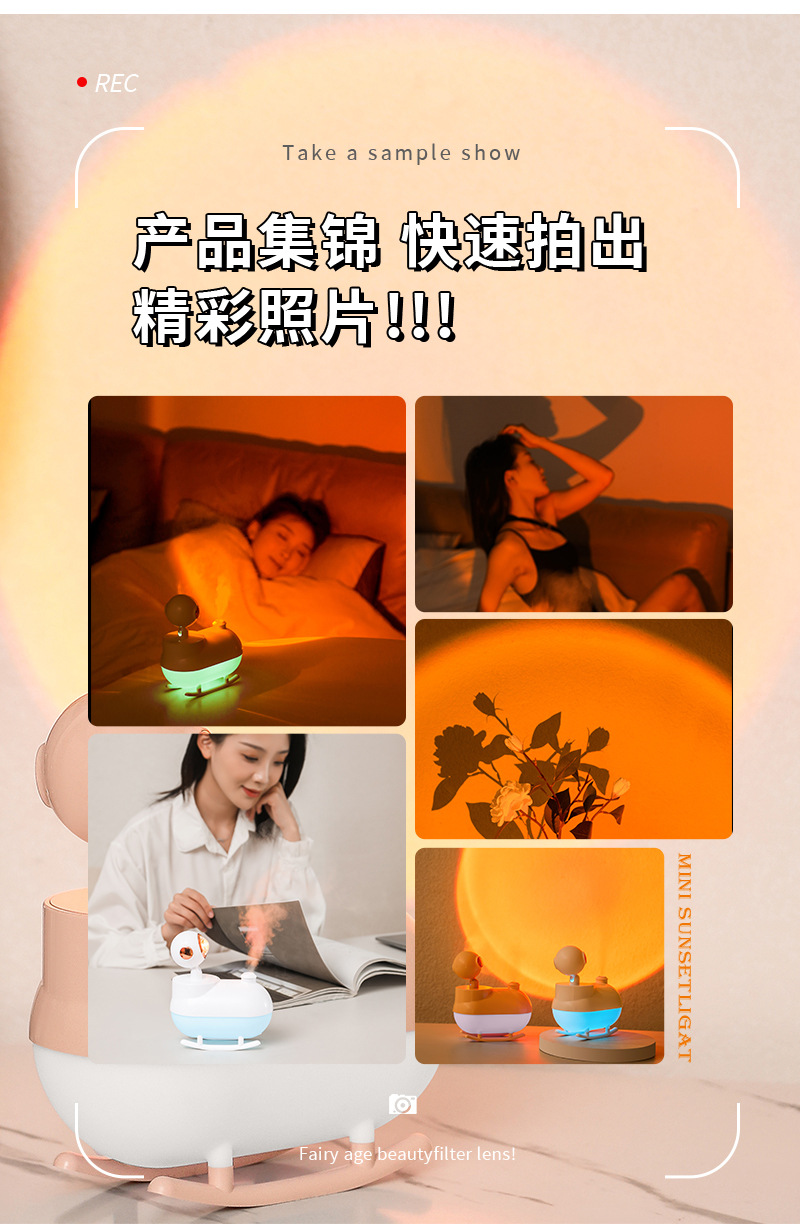 新款探日灯加湿器桌面氛围灯空气加湿器礼物家用型喷雾补水加湿器