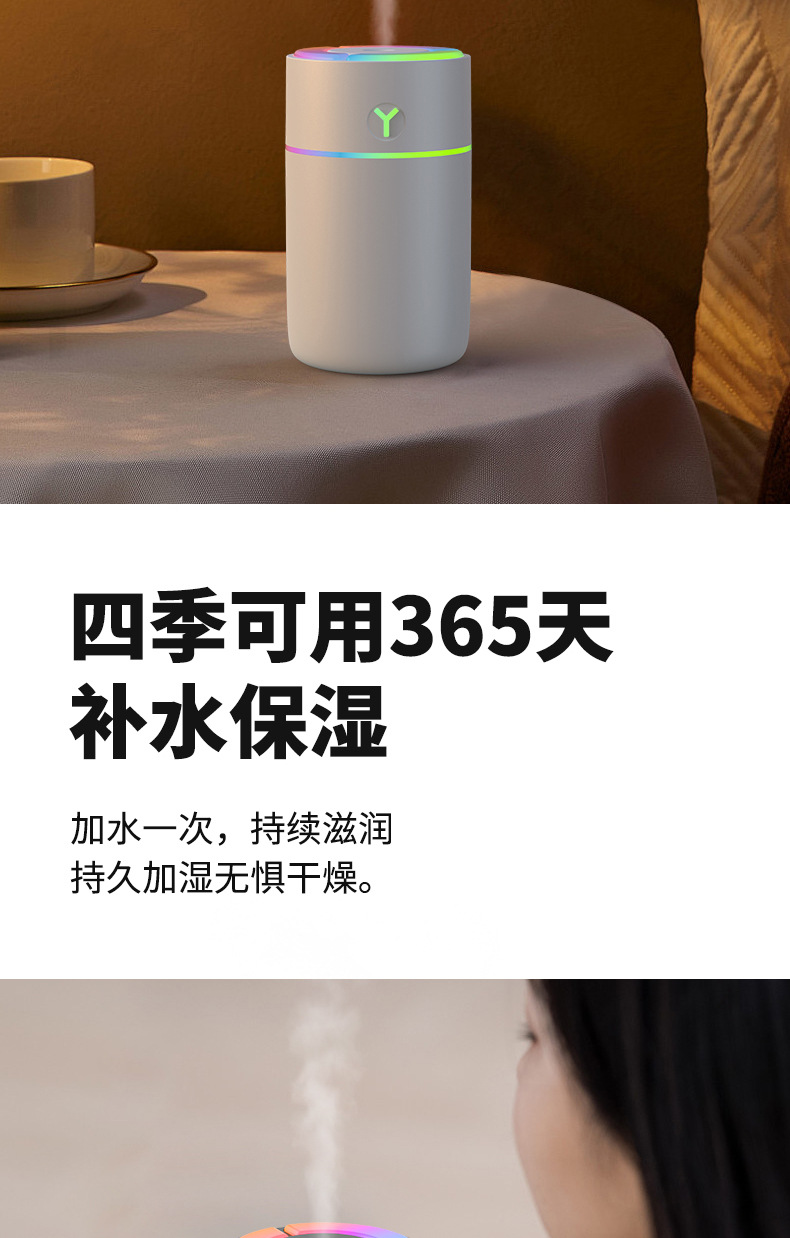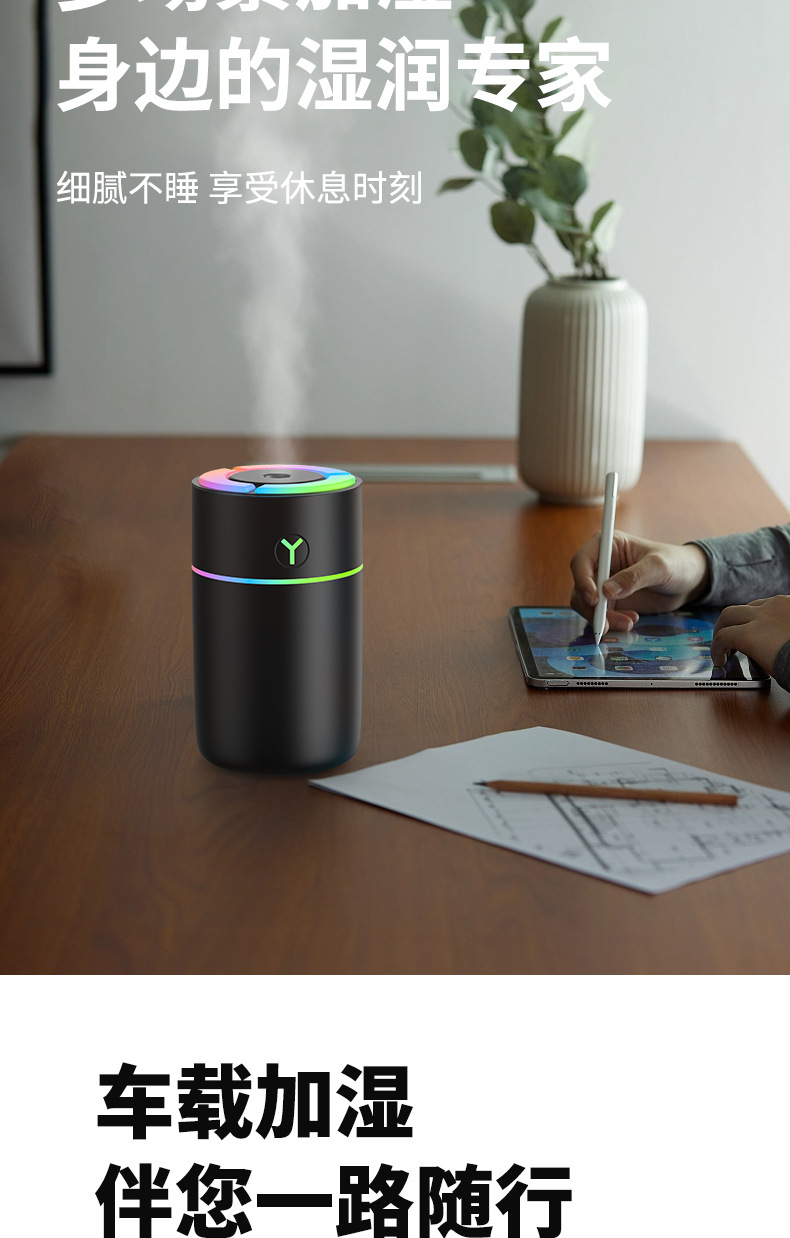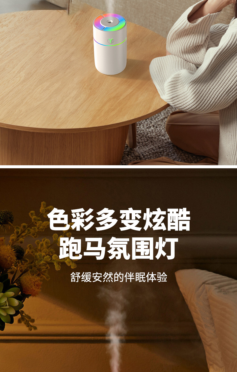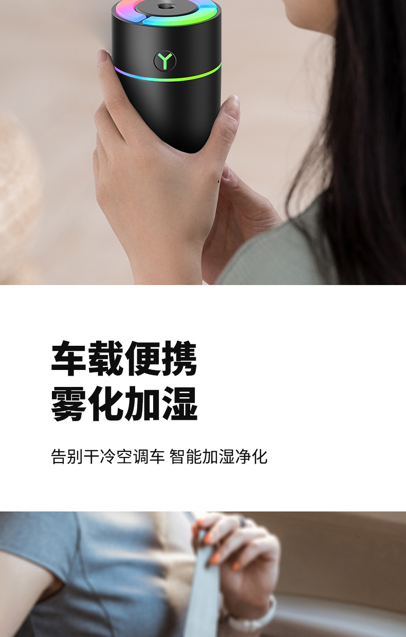 新款CL25炫彩加湿器迷你车载桌面加湿器七彩静音香薰家用氛围灯