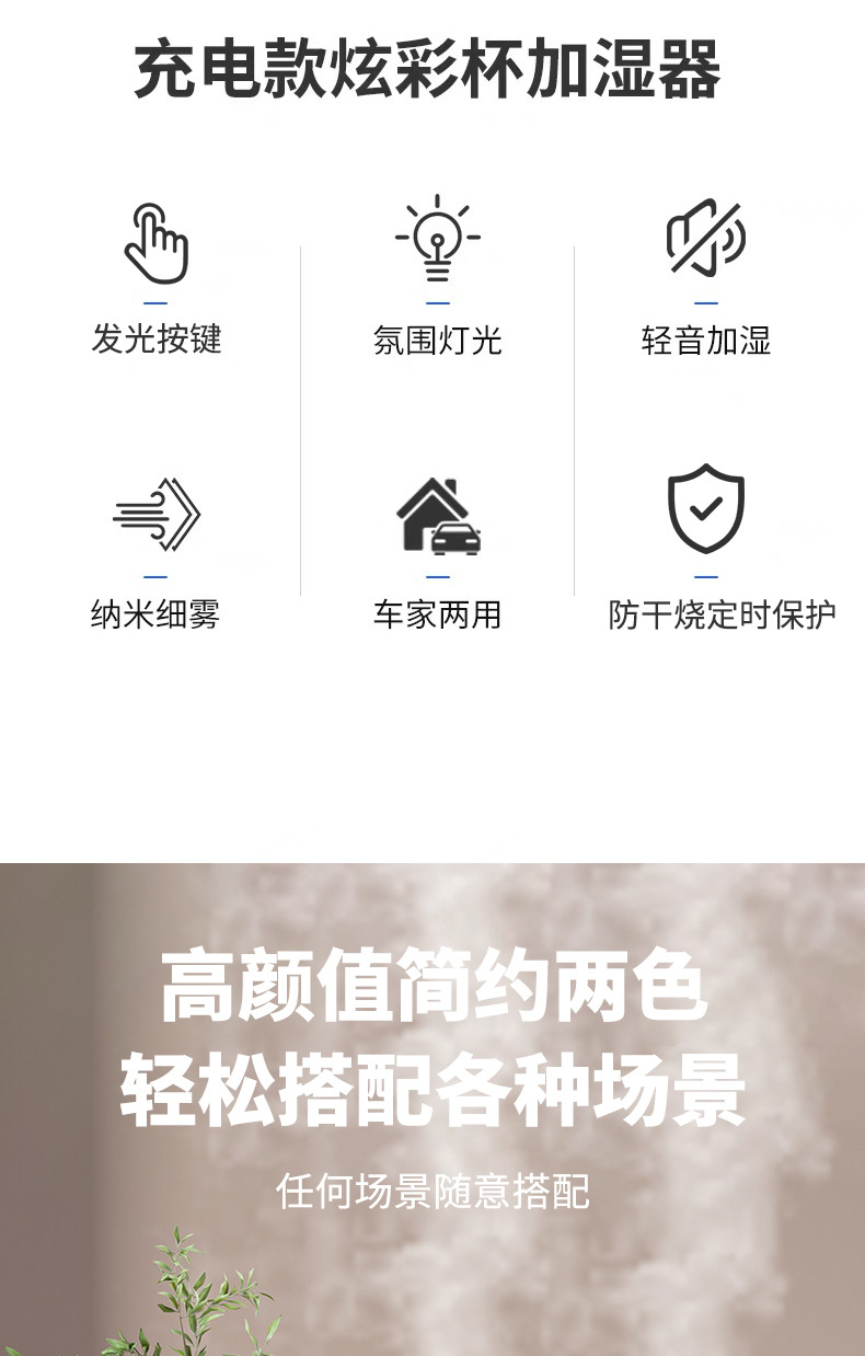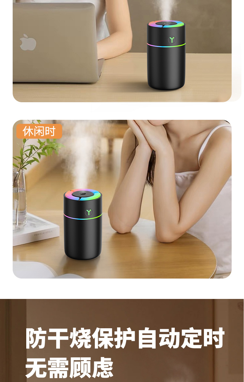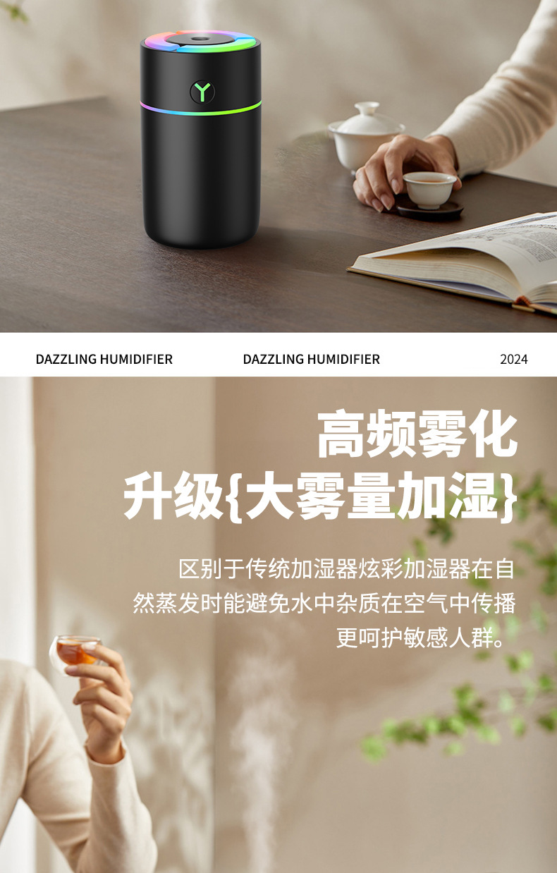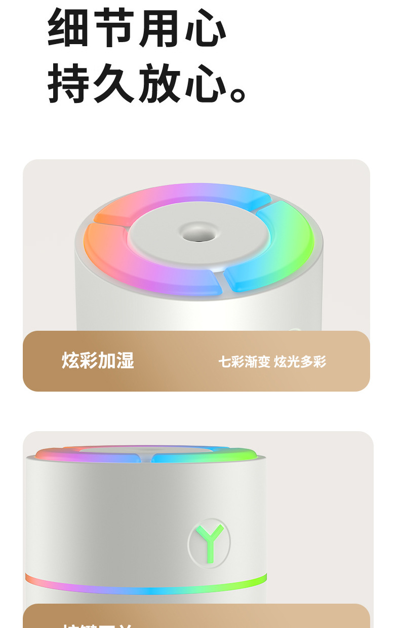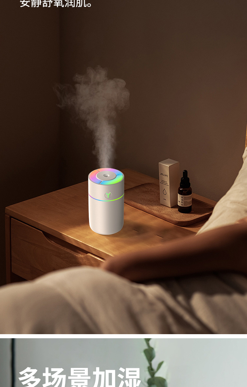 新款CL25炫彩加湿器迷你车载桌面加湿器七彩静音香薰家用氛围灯