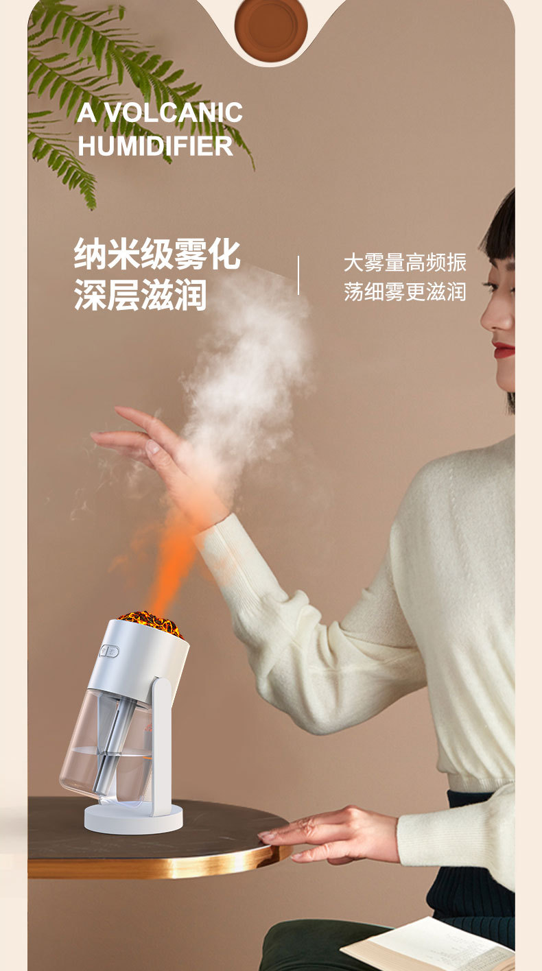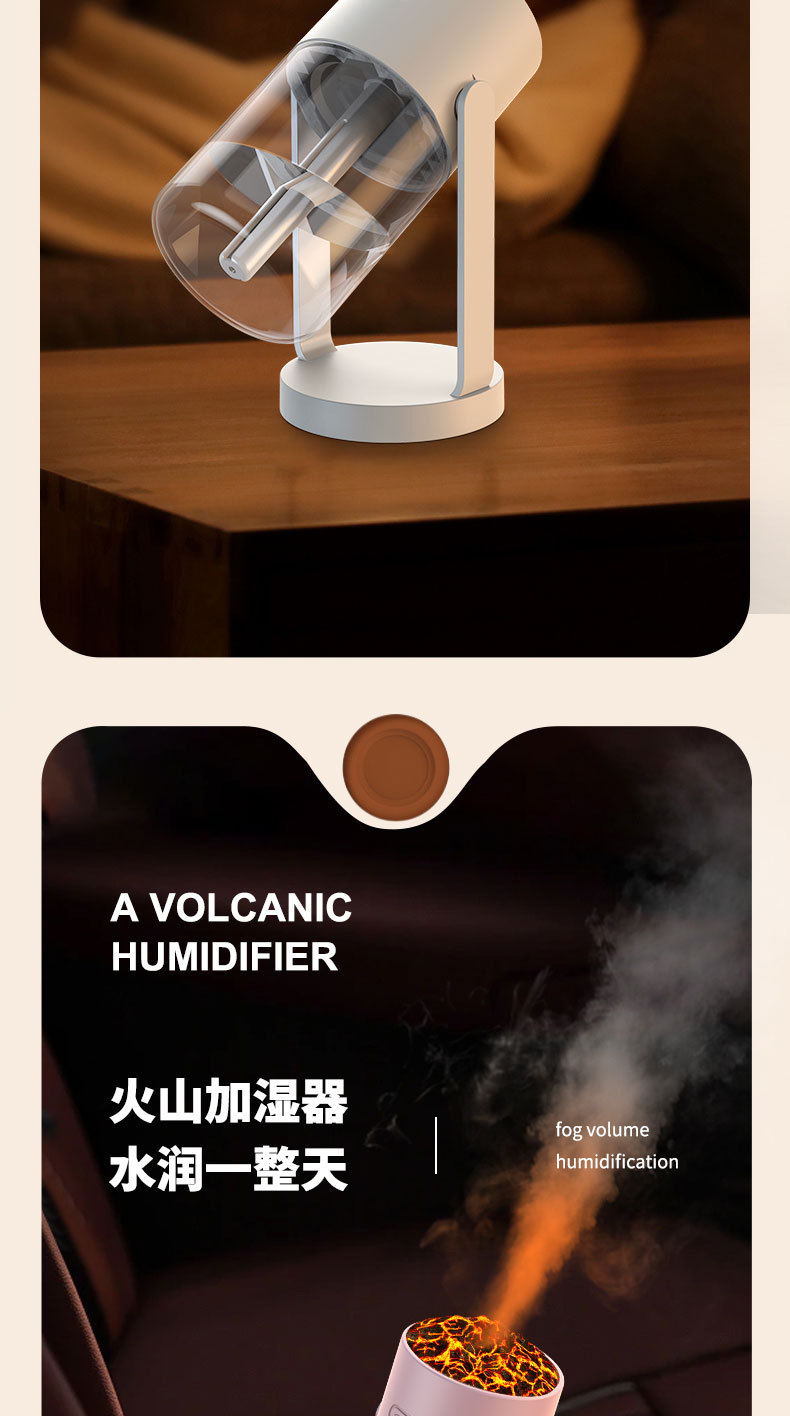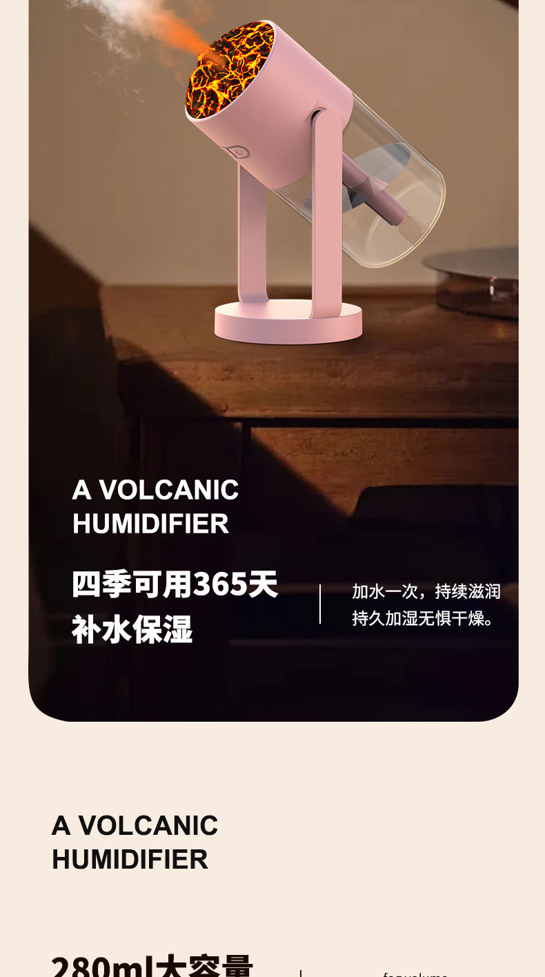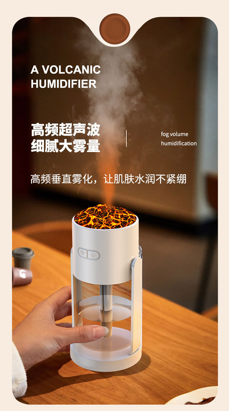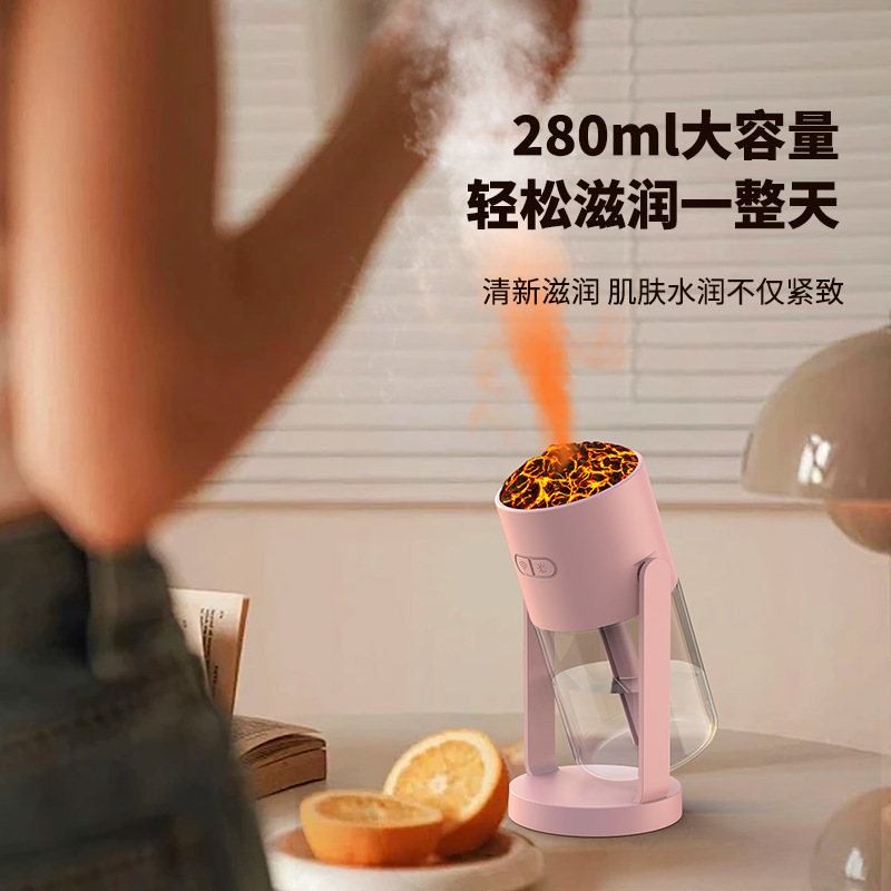 新款CL29火山加湿器家用卧室七彩香薰机桌面喷雾静音火焰加湿器