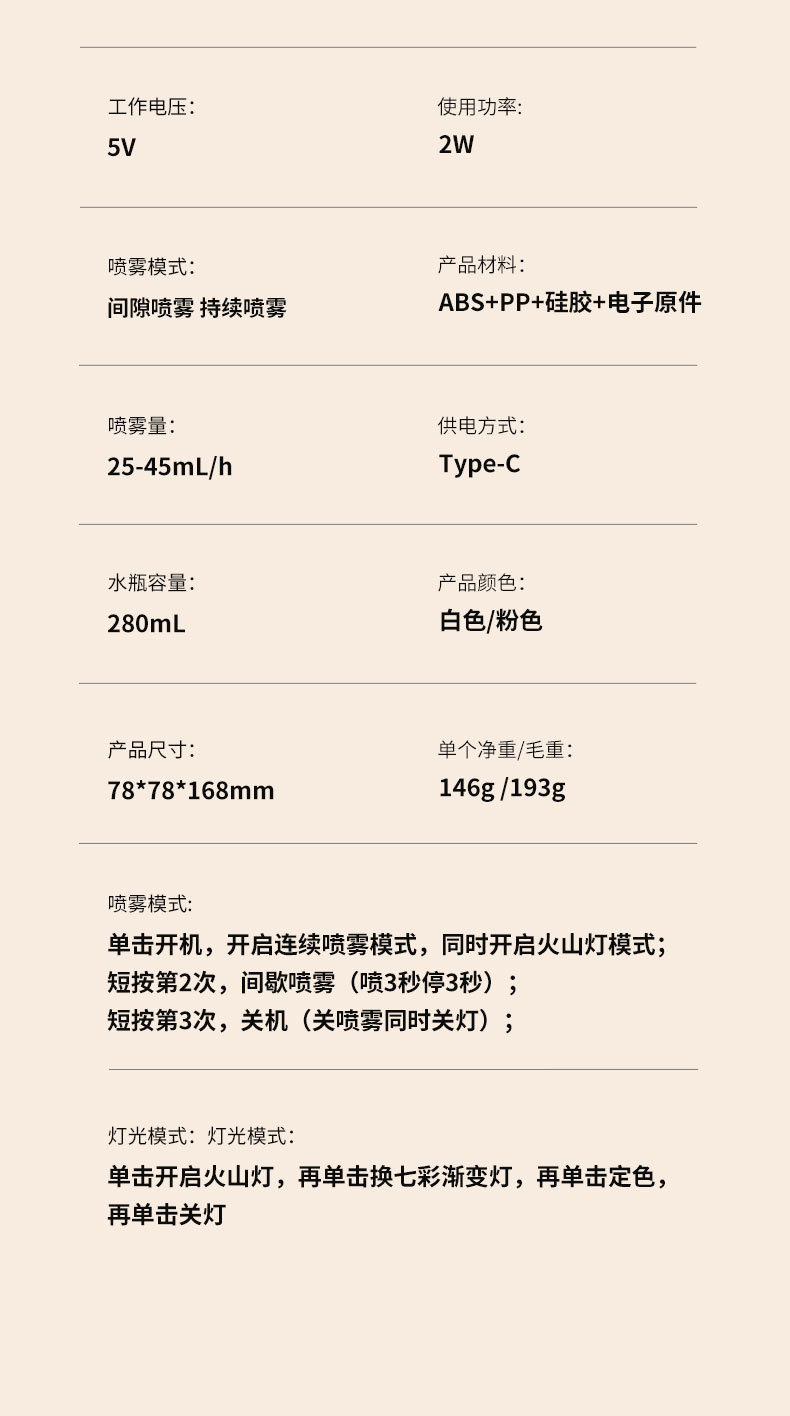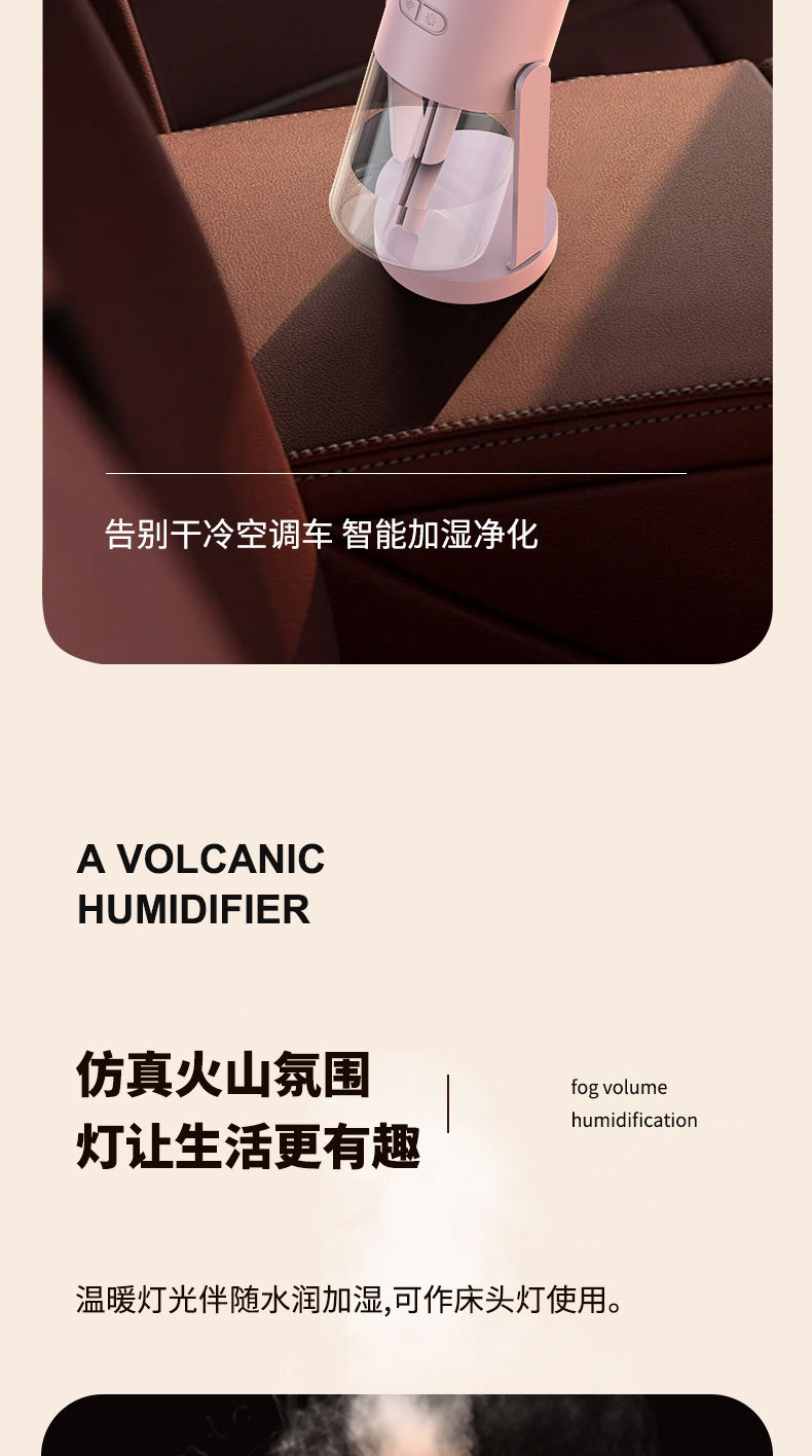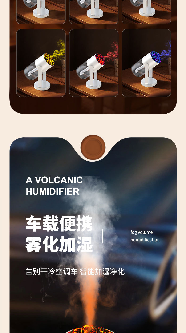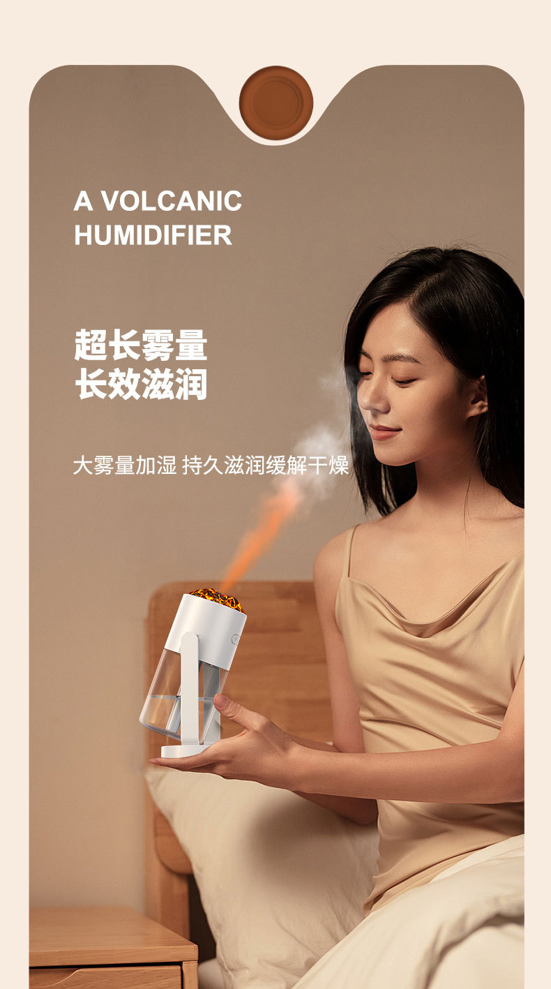 新款CL29火山加湿器家用卧室七彩香薰机桌面喷雾静音火焰加湿器
