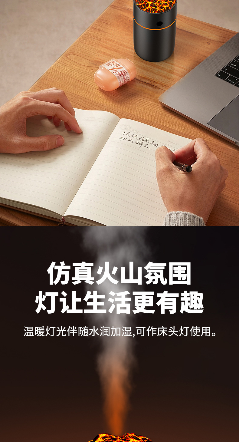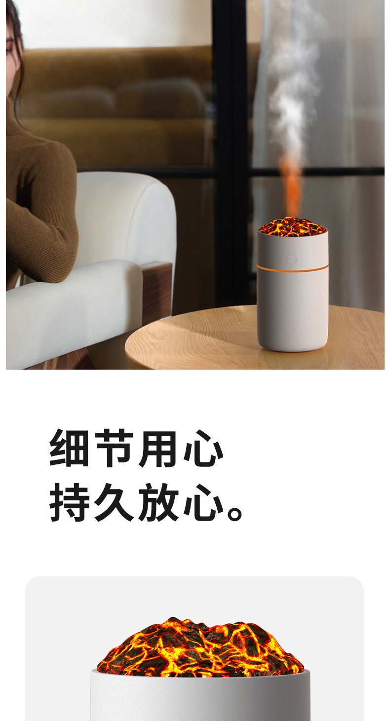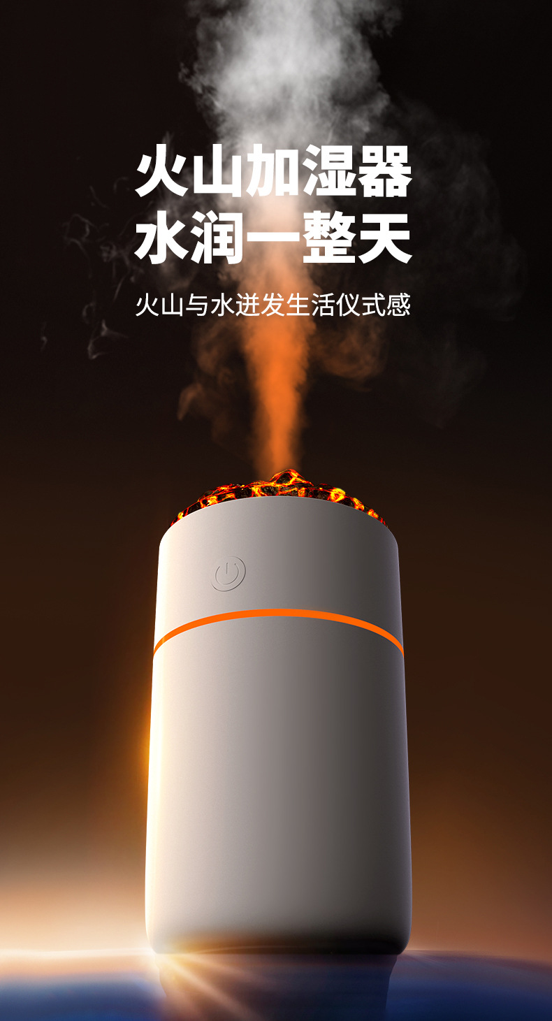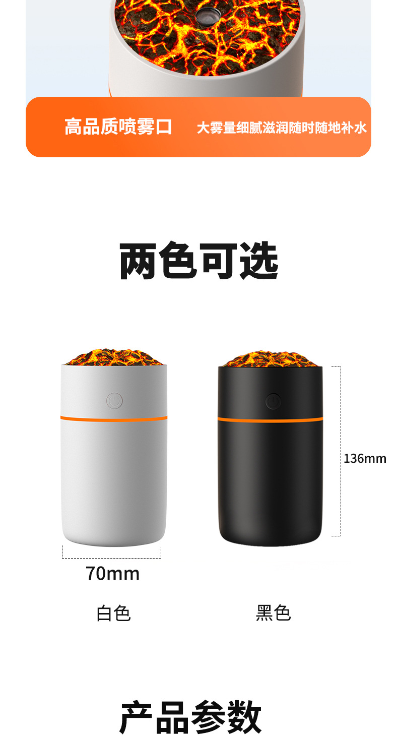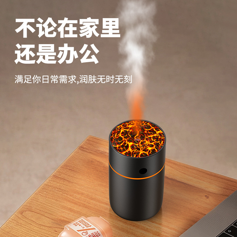 新款HS01火山加湿器家用卧室静音空气加湿器氛围灯火焰车载加湿器