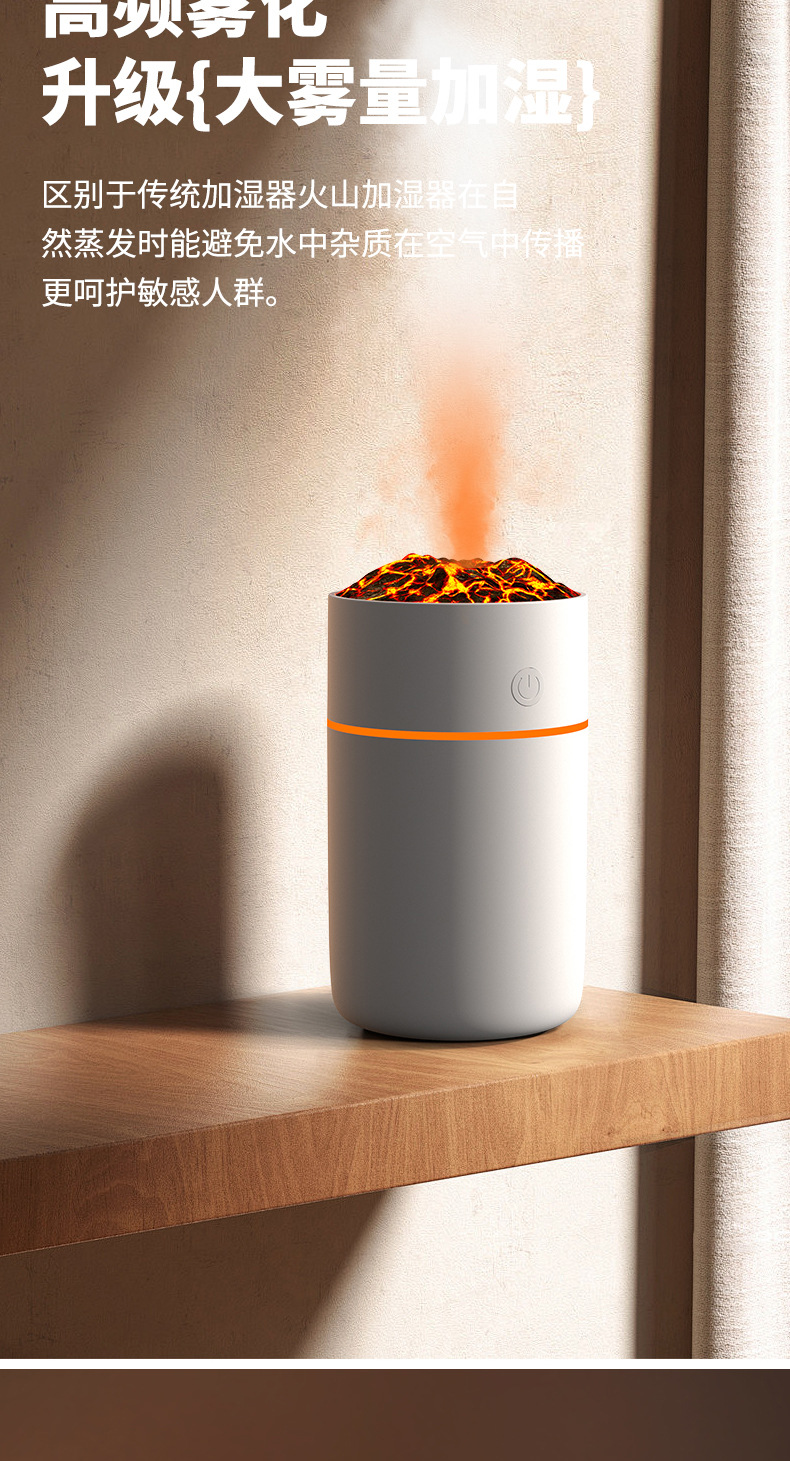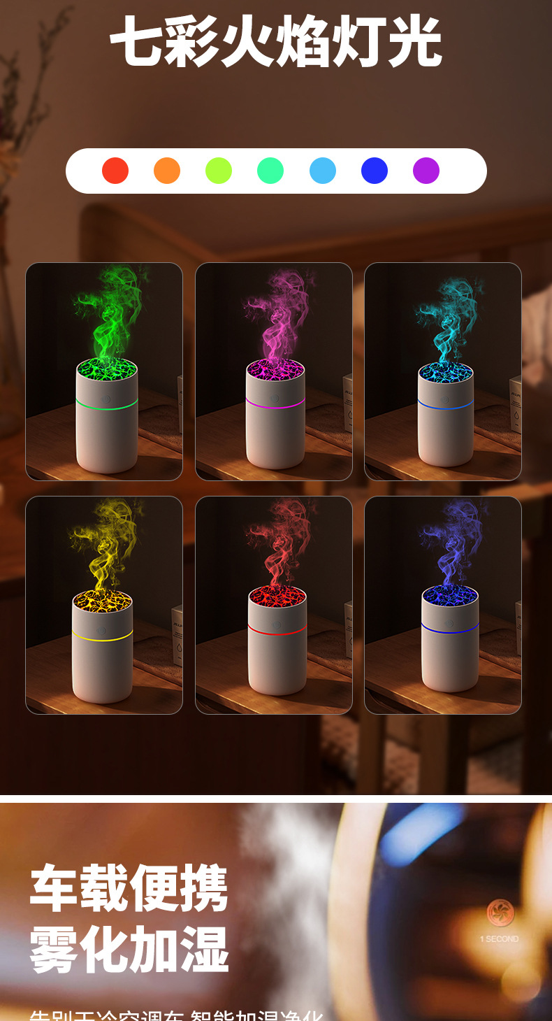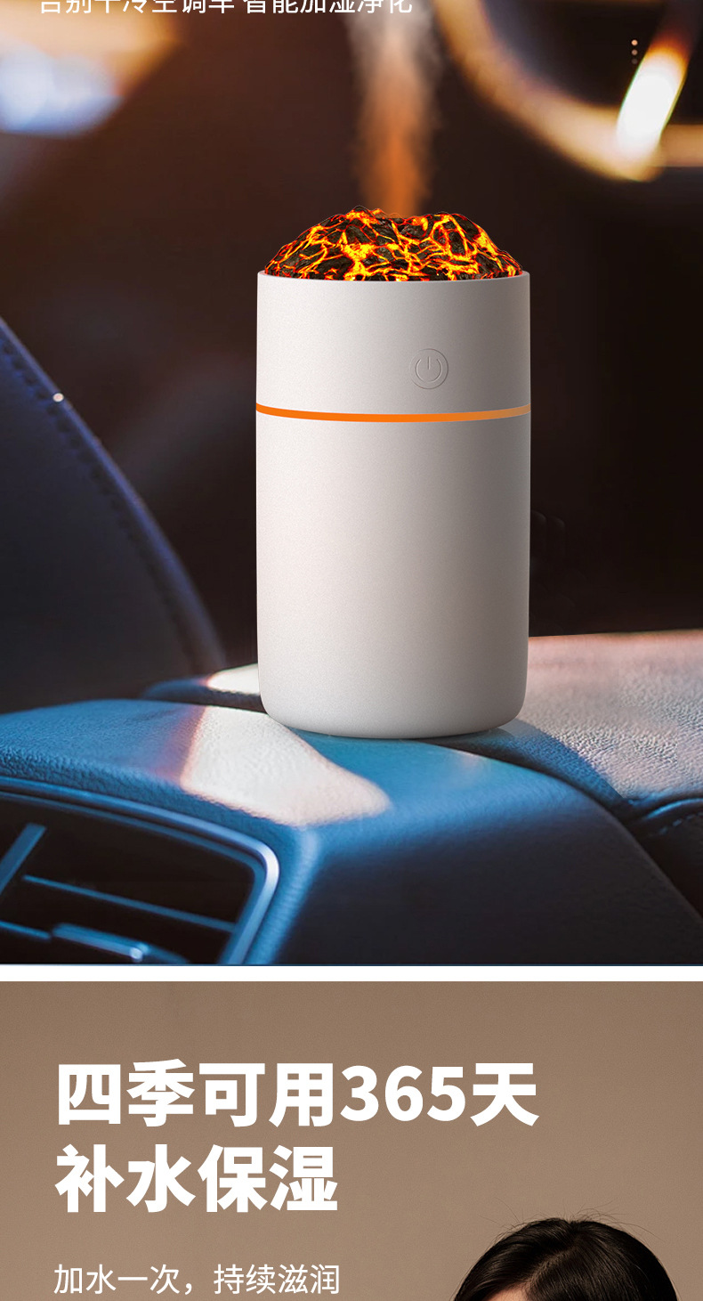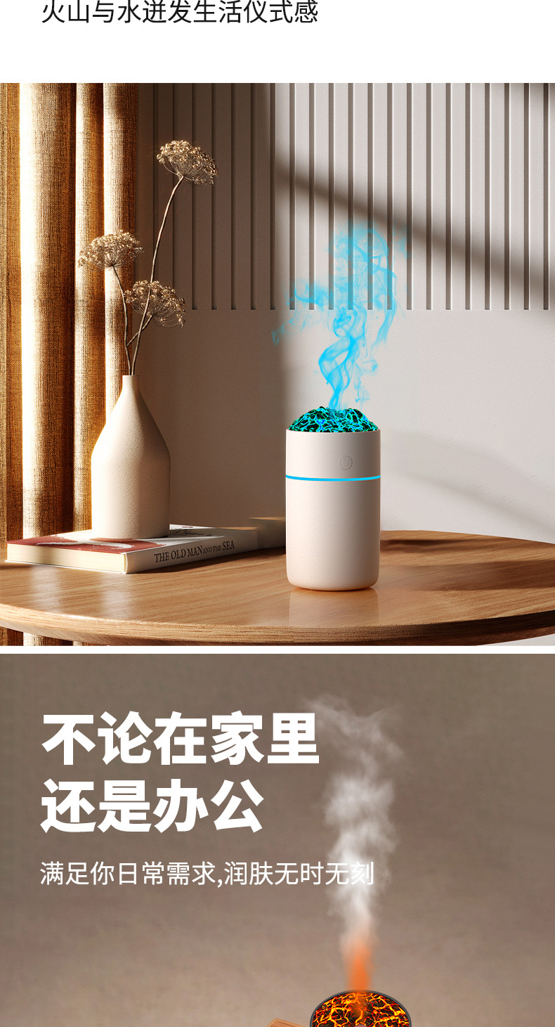 新款HS01火山加湿器家用卧室静音空气加湿器氛围灯火焰车载加湿器