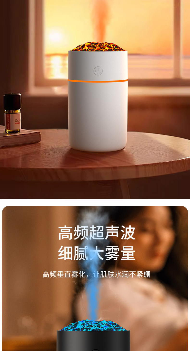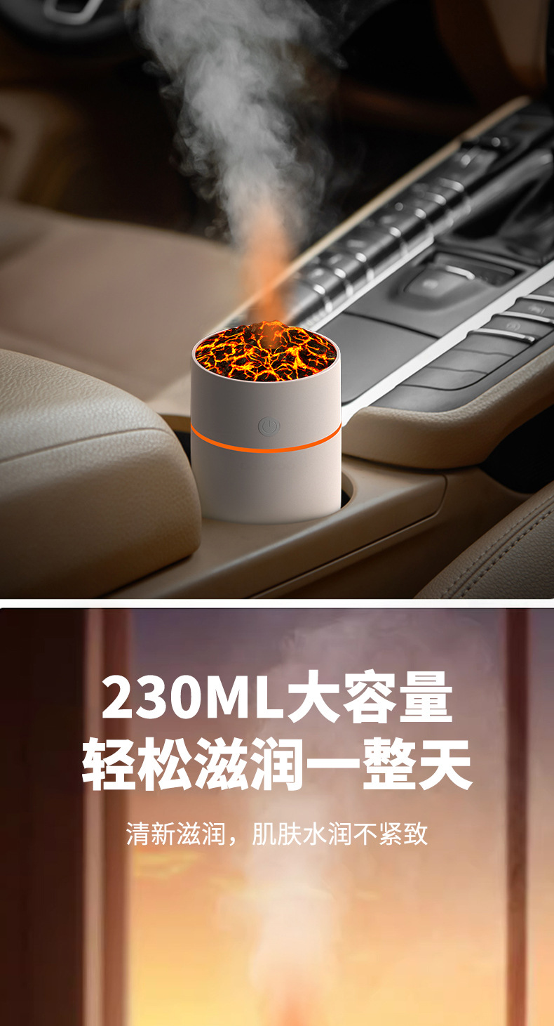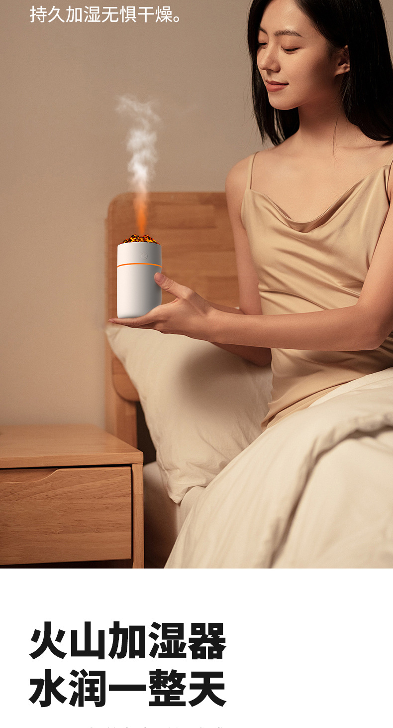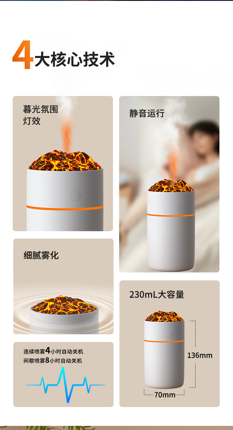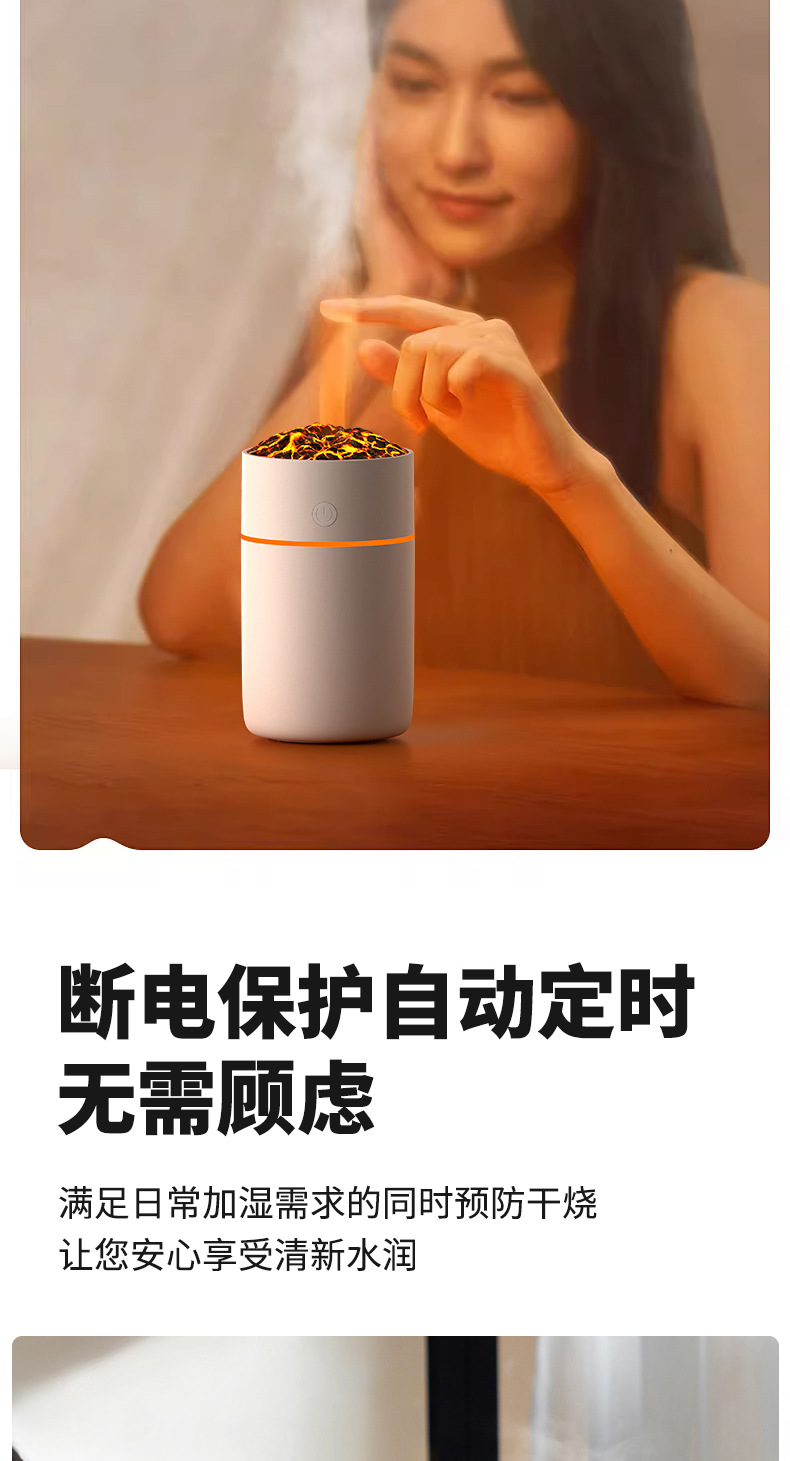 新款HS01火山加湿器家用卧室静音空气加湿器氛围灯火焰车载加湿器